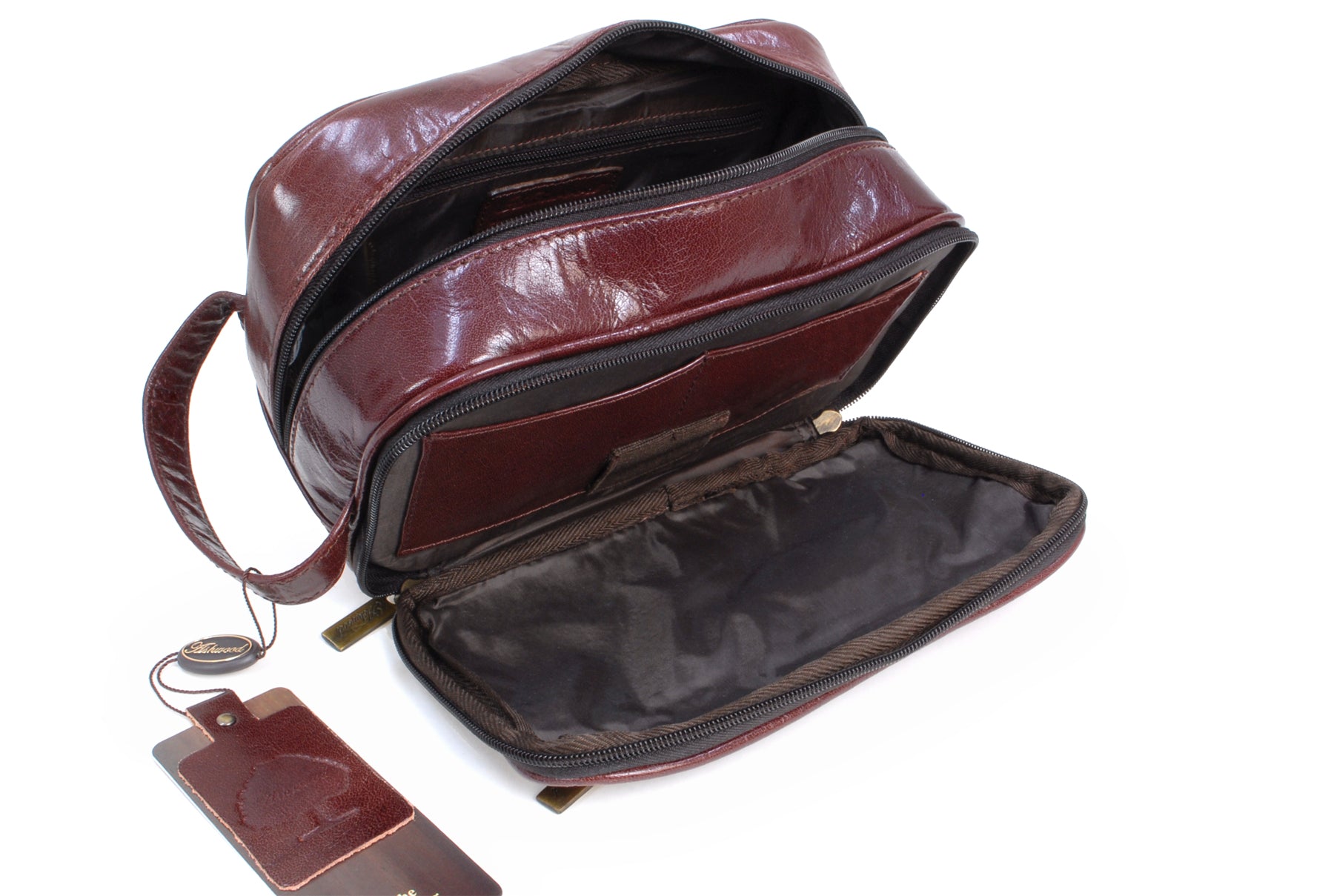 The interior is fully lined and padded to cushion contents which makes this shaving and wash bag the ideal travelling companion.