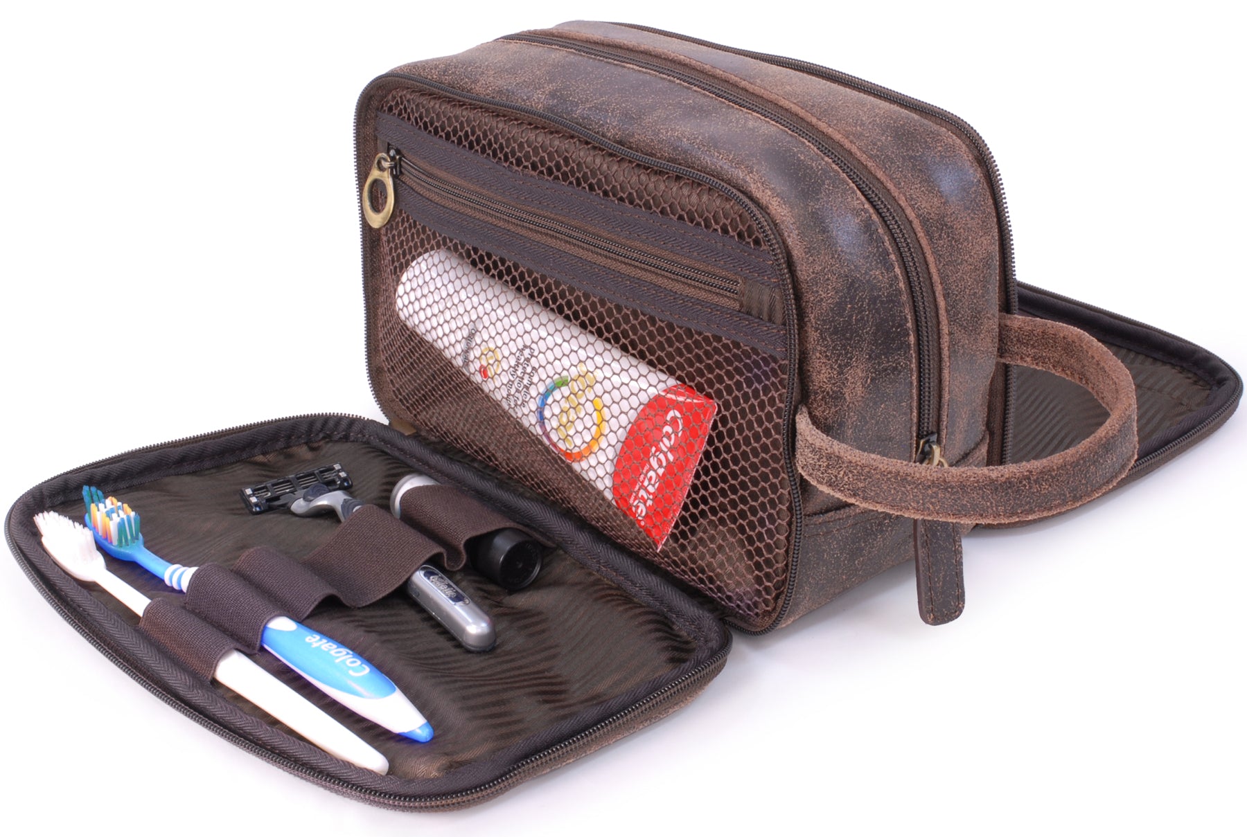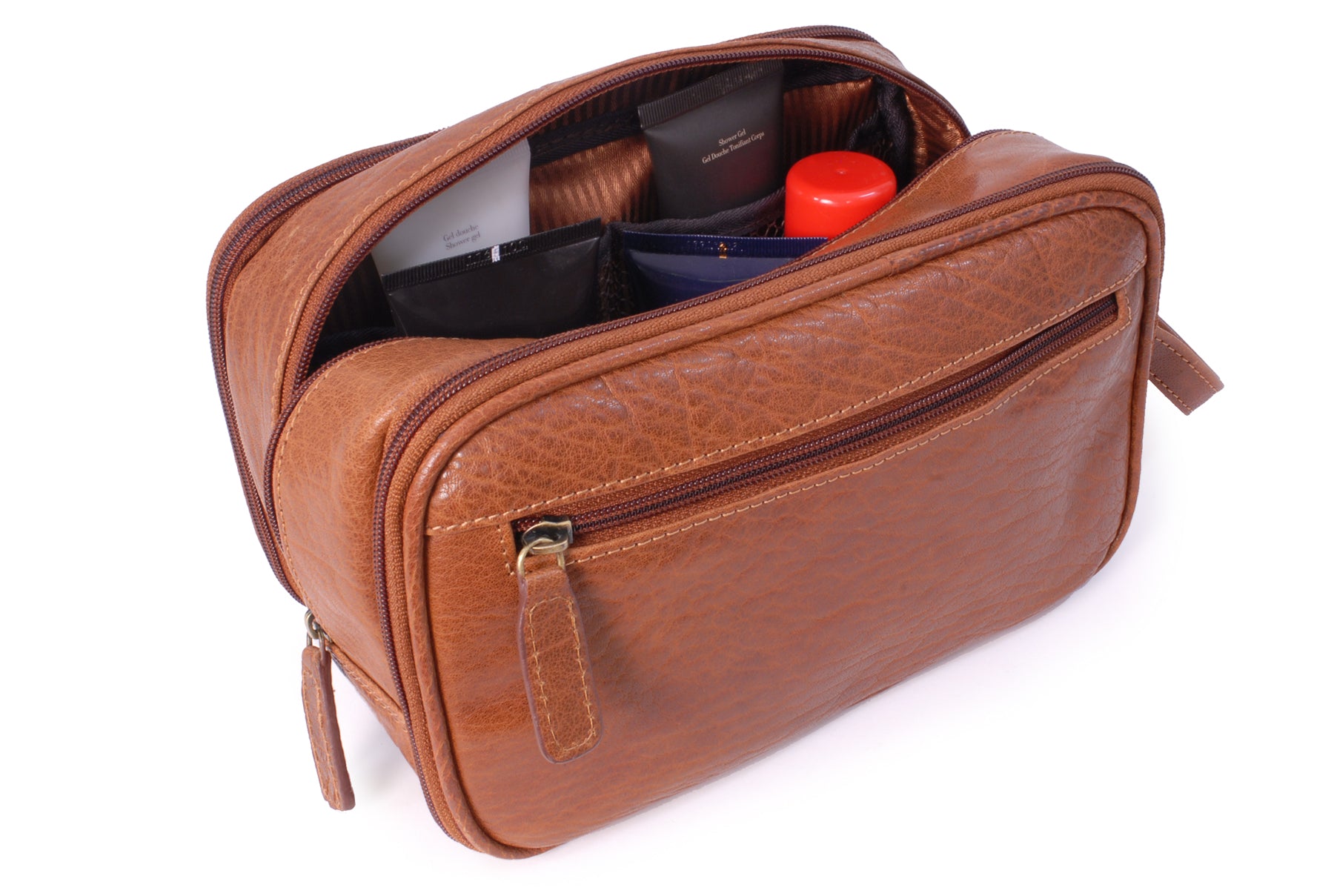 LUXURY WASH BAG HANDCRAFTED FROM HIGH QUALITY COWHIDE LEATHER FOR TRAVEL, GYM OR HOME