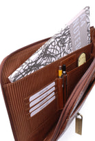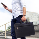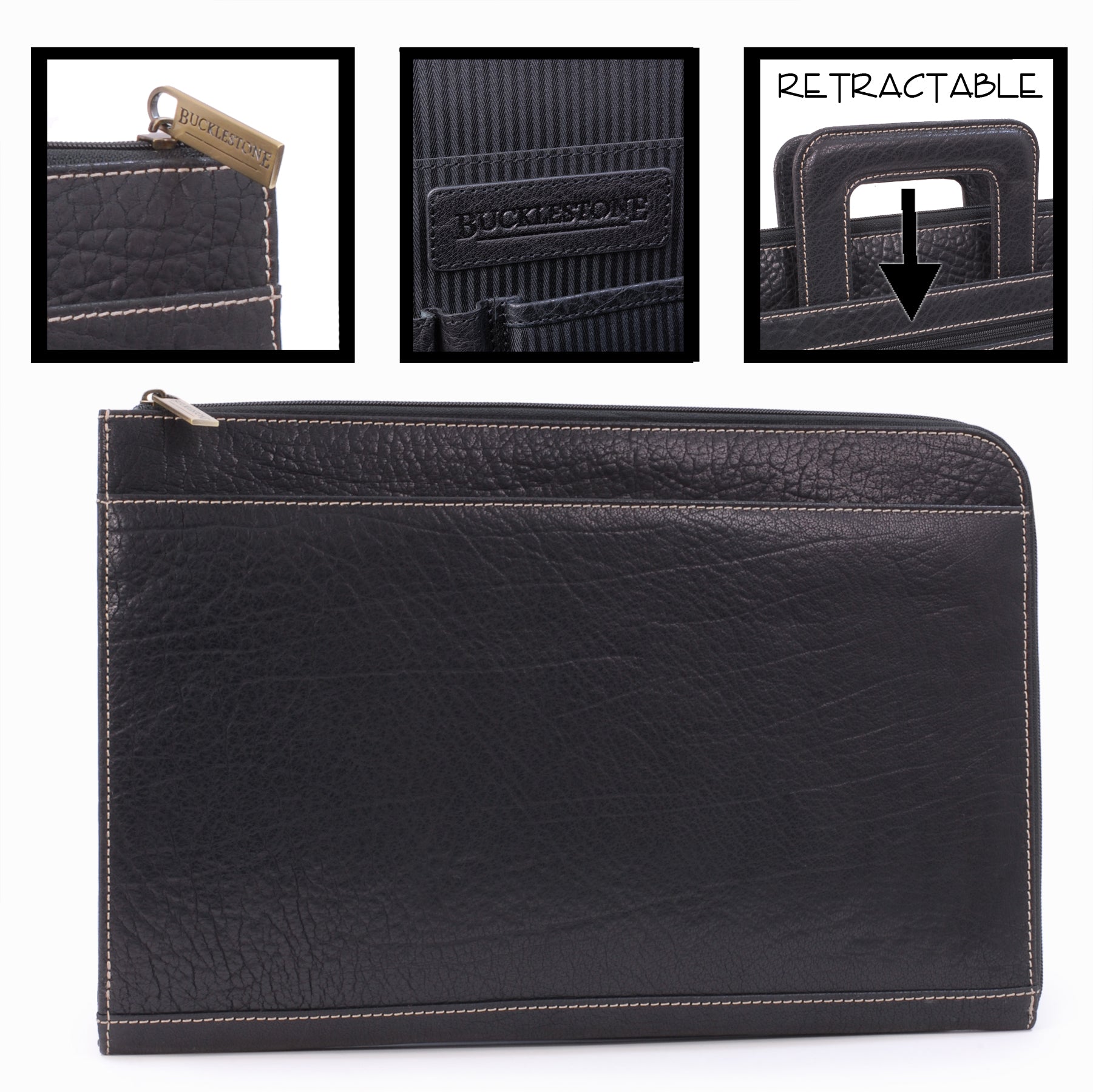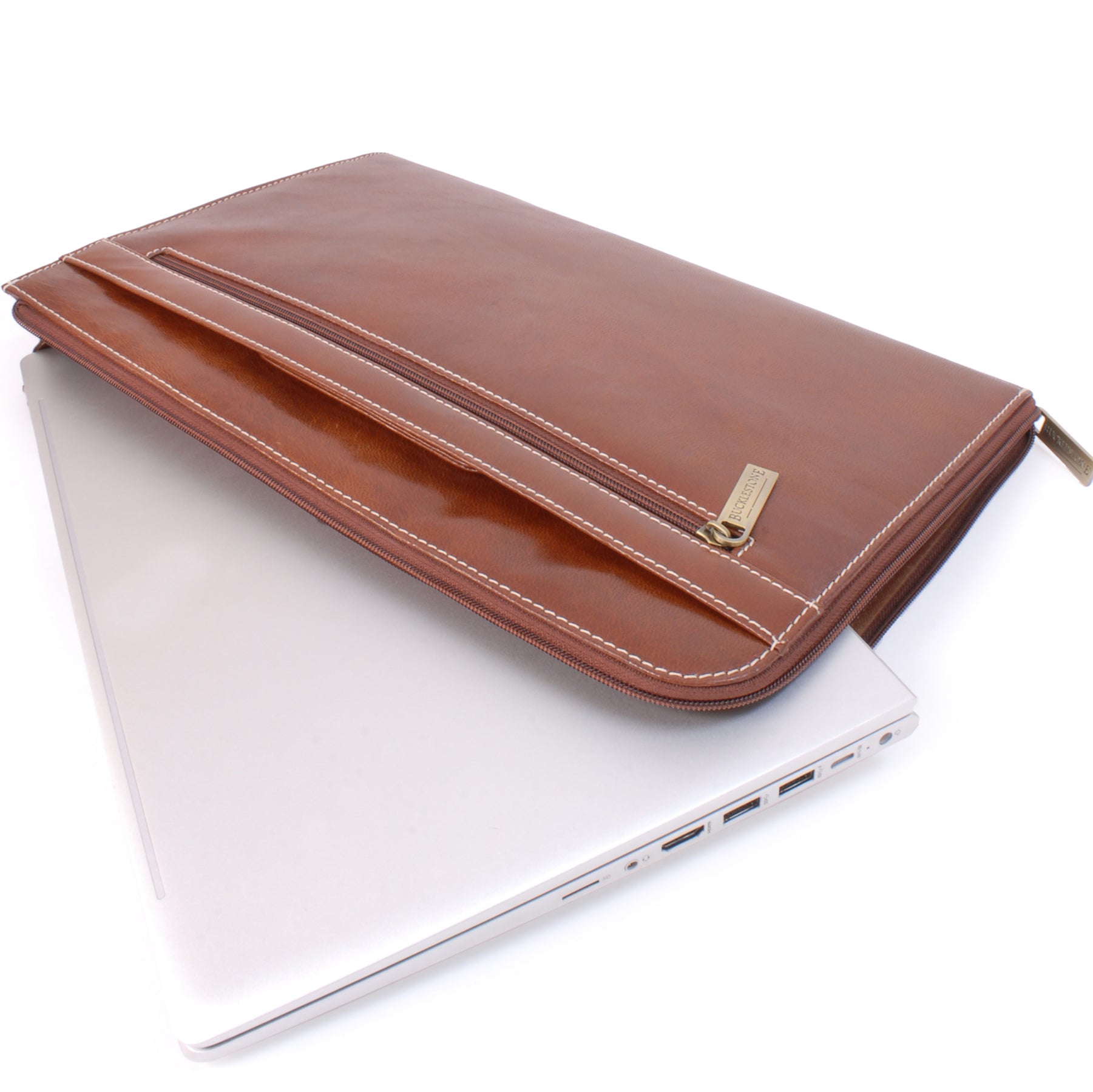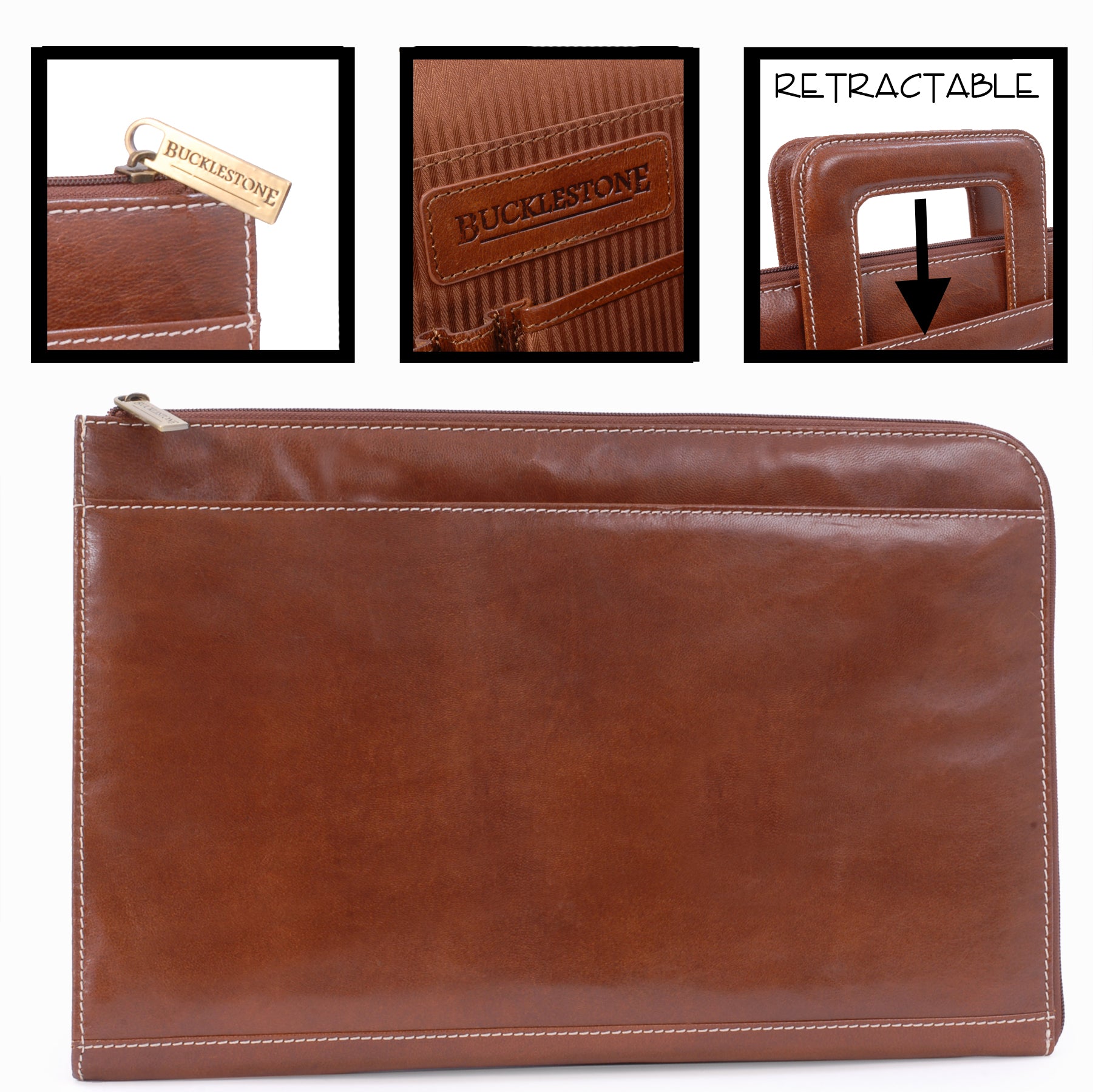 This A4 leather document folder is designed for use in business, travel, or other professional environments.This practical and versatile zip folder is designed to be the ideal blend of document folio and briefcase. Clever, retractable handles mean that this conference folder can be carried under the arm or in the hand.It can be used as a conference folder, travel document holder, or portfolio.The main compartment opens wide for access to contents. The interior includes dedicated pockets for organising items such as a mobile phone, pens, and business cards.Designed with capacity to hold tablets, slim laptops, and A4-size notebooks or documents. Interior dimensions: 35 x 24.5 x 1.5 cm.The interior is lined with a combination of leather and striped fabric. The folder includes contrast stitching and structured edges.Suitable for use as a professional A4 folder, travel portfolio, or work document holder.Distressed leather is designed to look aged or worn without weakening the overall integrity of the leather.Size: Height 25.5 cm, Width 39.5 cm, Depth 3.25 cm.Pockets: 1 Main Compartment + 1 Interior Open Pocket + 1 Leather topped Mobile Phone Holder + 2 Leather topped Pen Holders + 3 Credit Card Holders + 1 Outer Front Open Pocket + 1 Outer Front Zipped Compartment + 1 Outer Rear Open PocketMaterial: Distressed.Closure: Zip.Hardware: Antique Brass.Included: Each comes with a branded cloth dust cover.