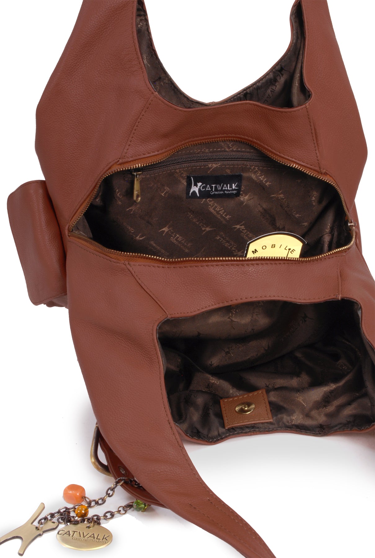 Pockets: 1 Main Compartment + 1 Interior Side Zipped Pocket + 1 Leather topped Mobile Phone Holder + 1 Leather topped Extra Open Pocket + 1 Outer Front Pocket + 1 Outer Rear Pocket + 2 Outer End Pockets