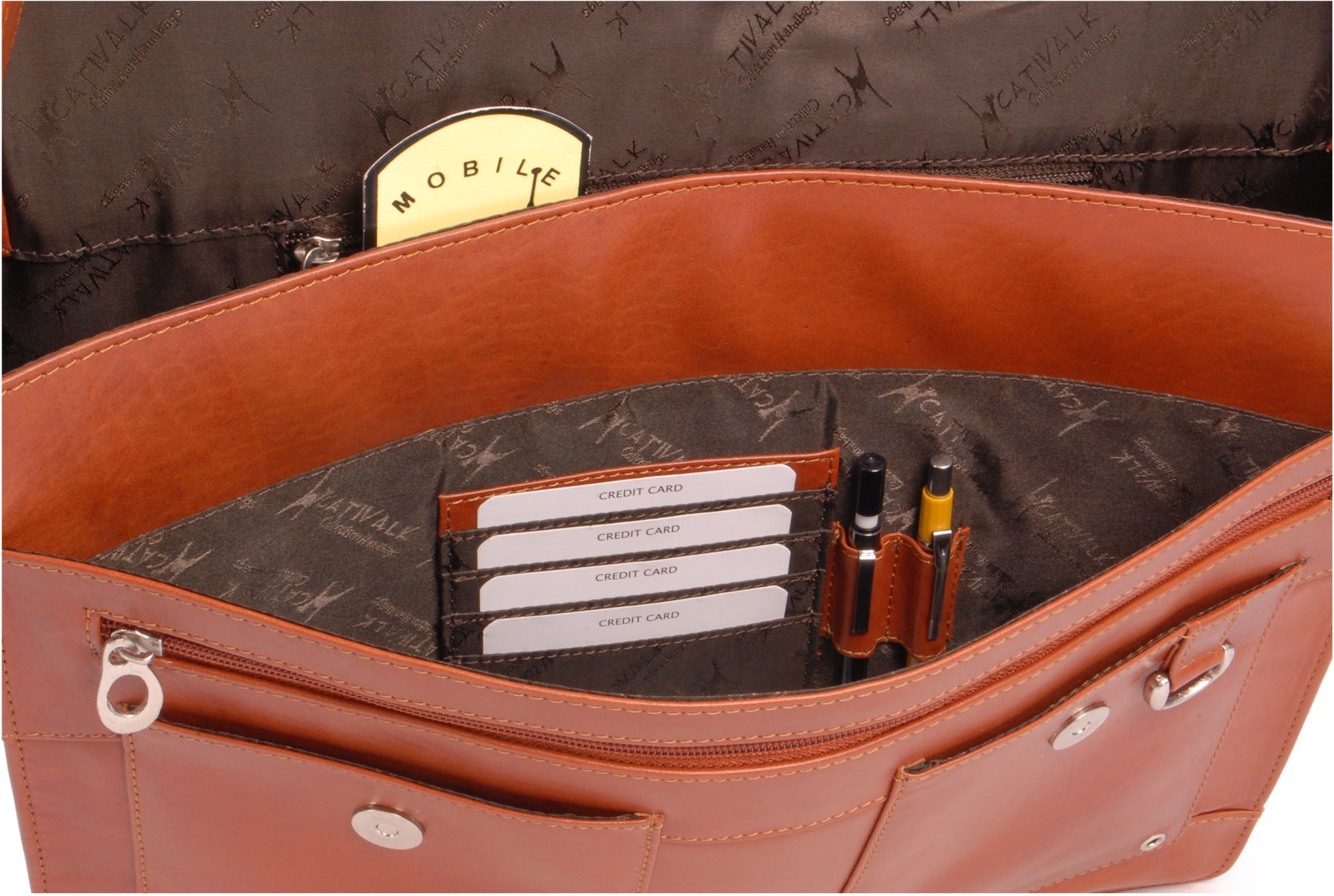 Pockets: 1 Main Compartment + 1 Interior Side Zipped Pocket + 1 Mobile Phone Holder + 1 Open Pocket the width of the bag + 2 Pen Holders + 4 Credit Card Holders + 1 Front Zipped Pocket + 2 Small Open Front Pockets + 1 Key Fob + 1 Outer Rear Zipped Pocket