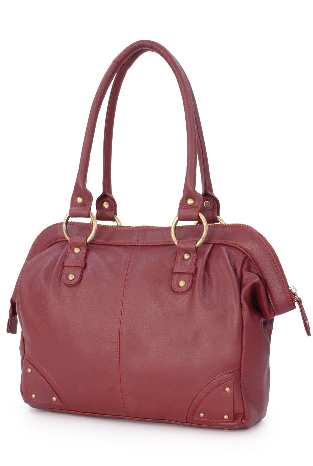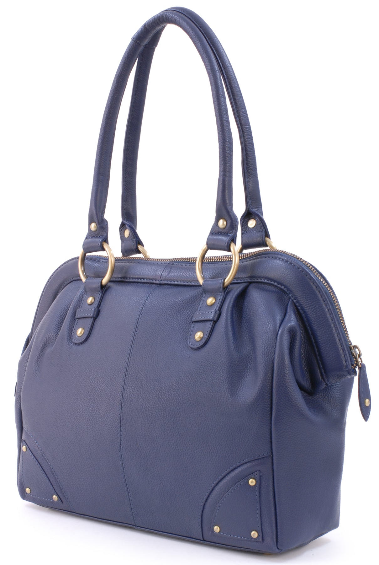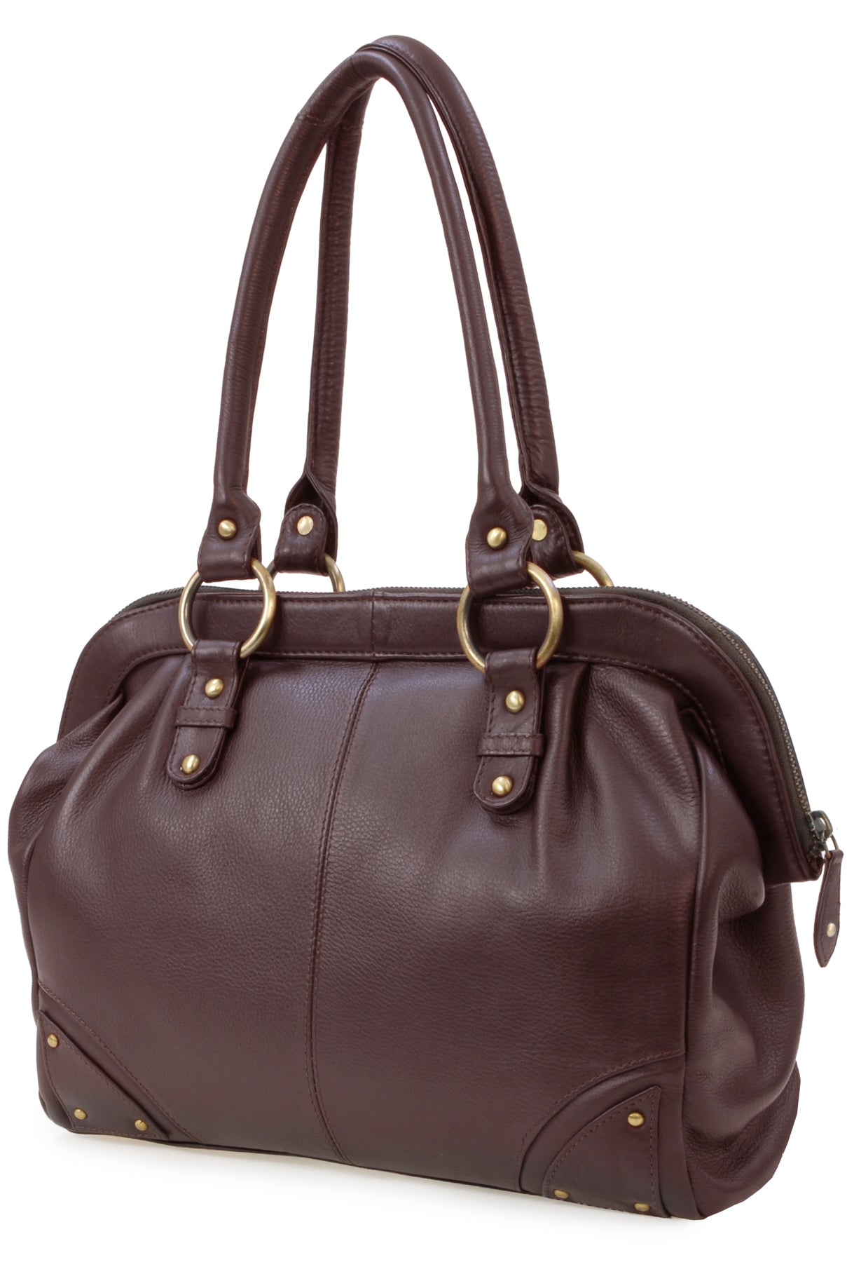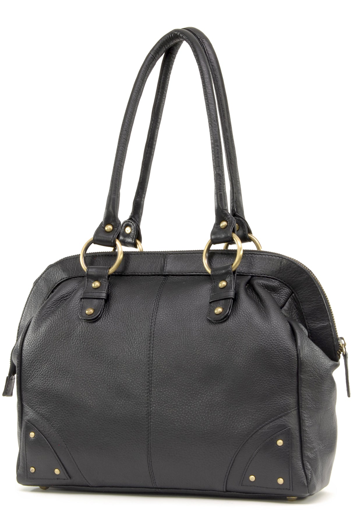 Step back in time with the “Doctor” bag, a modern interpretation of the iconic Victorian-era "Gladstone" bag, known for its practical structure and historical significance. Originally used by doctors for its functional design, the bag’s wide, structured opening and spacious interior make it a suitable choice for carrying work items, travel necessities, or everyday belongings. This updated version combines vintage-inspired design with current-day utility. No stethoscope required—take it to the office, use it while traveling, or carry it as your everyday handbag.Double handles are rolled for comfort. Designed to be worn on the shoulder and hugged into the body and with a secure antique-brass metal zip fastening, this bag ensures both style and security.This is a large-capacity bag with multiple compartments and pockets to organise contents. There is sufficient capacity for a tablet or small laptop and notebooks up to A4 size. Interior Capacity: 25.5 x 31 x 8cm. The base of the bag is flat with studded feet.