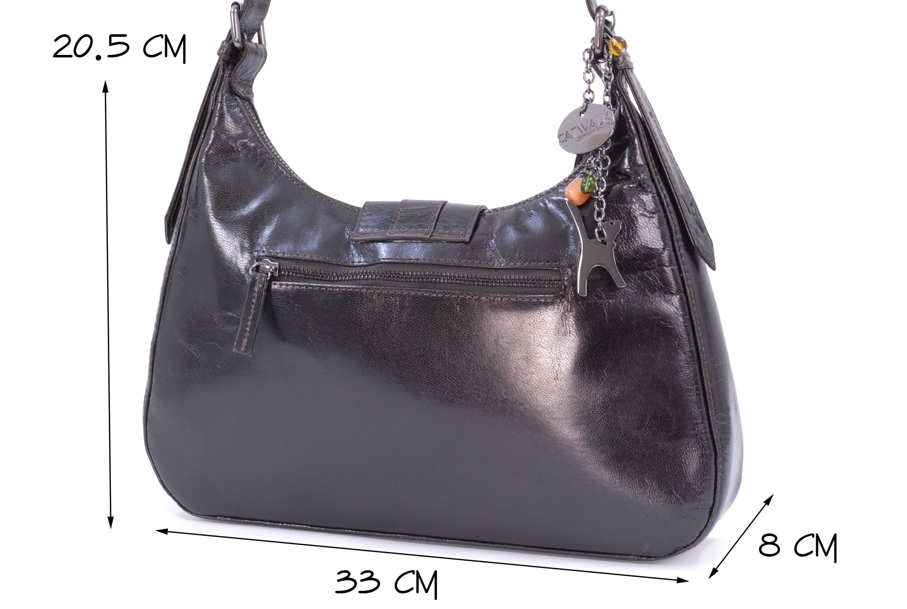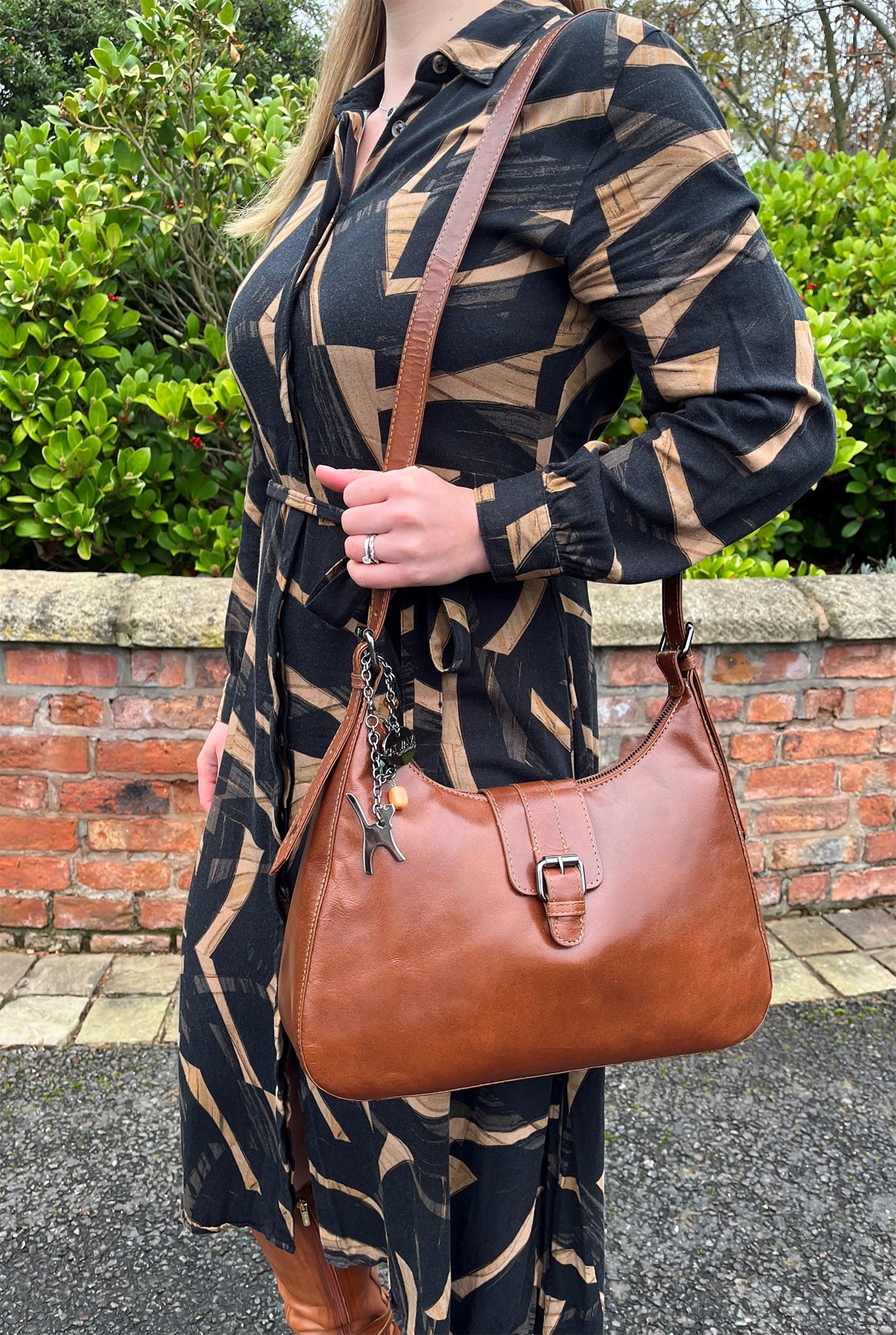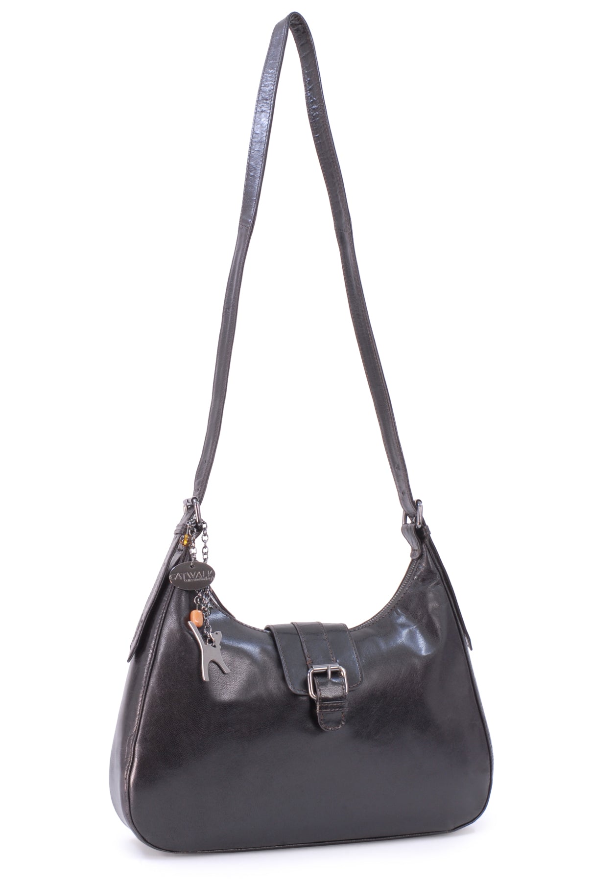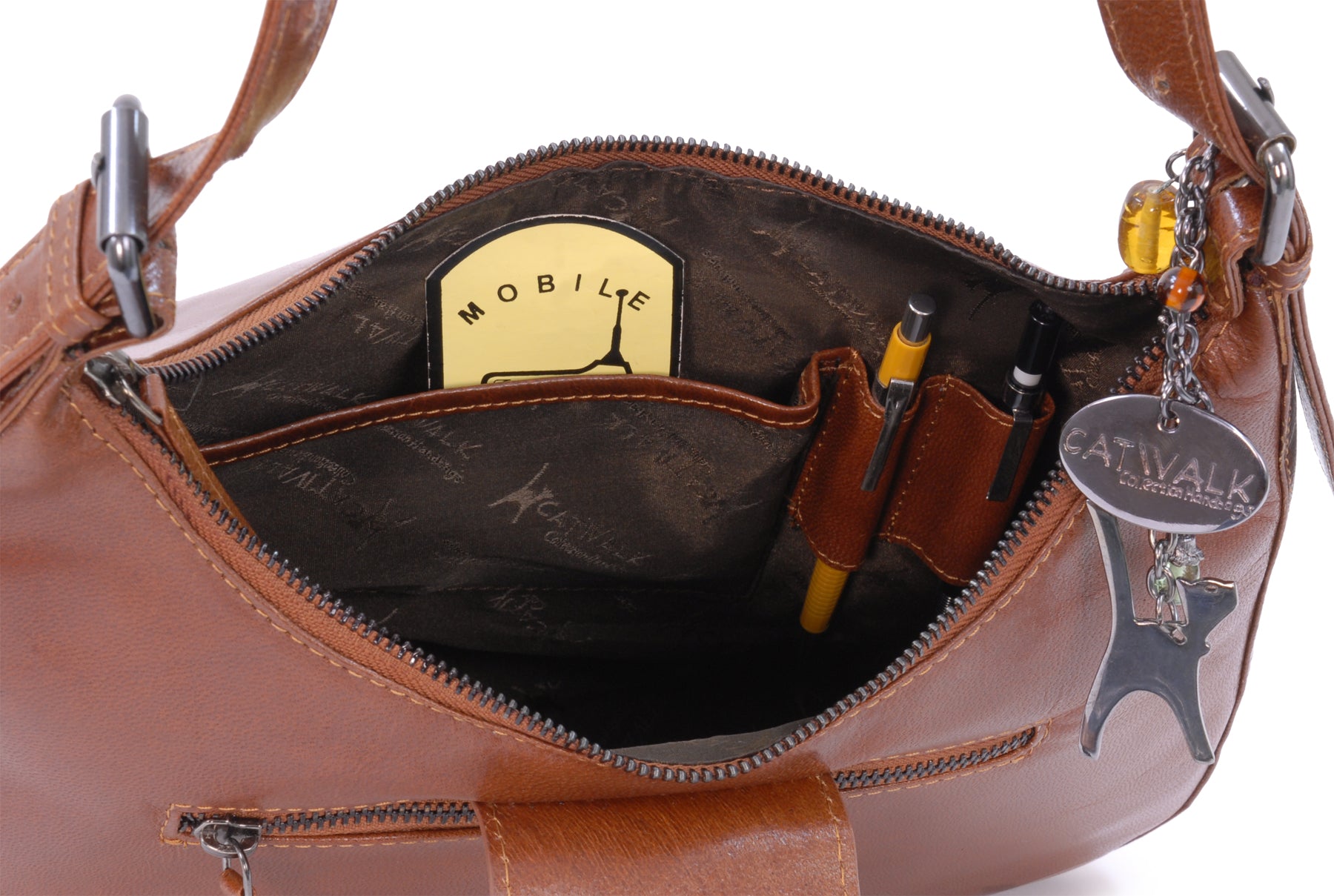A long, adjustable leather strap allows it to be worn comfortably on the shoulder or across the body, providing hands-free convenience. The strap is embossed with the Catwalk Collection Cat Logo, adding subtle brand detailing. Inside, the signature fabric lining and leather-trimmed pockets give a tailored finish. Gun metal fittings complete the look, making this a functional option for carrying a purse, make-up case and daily necessities while keeping contents secure and accessible.