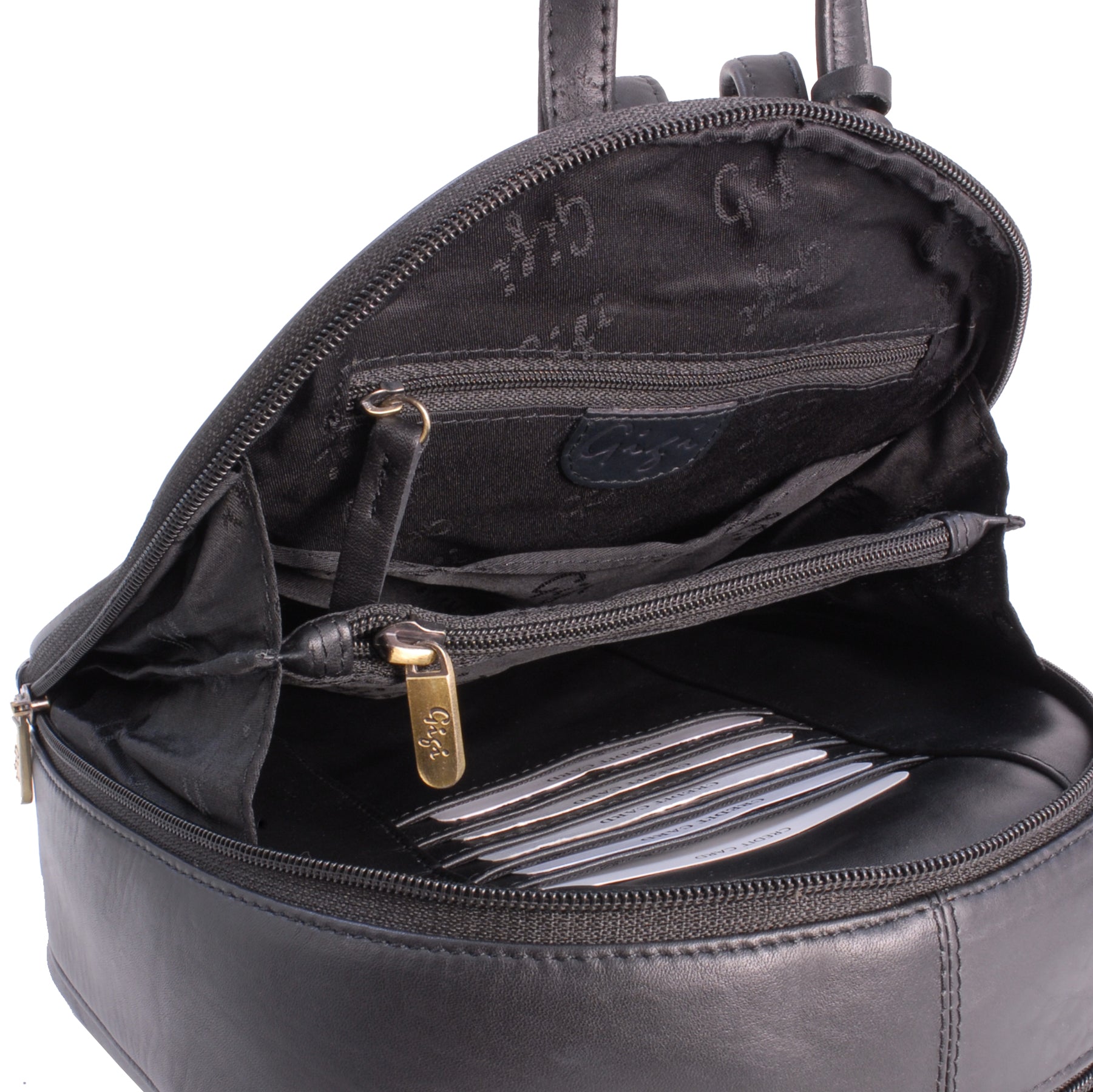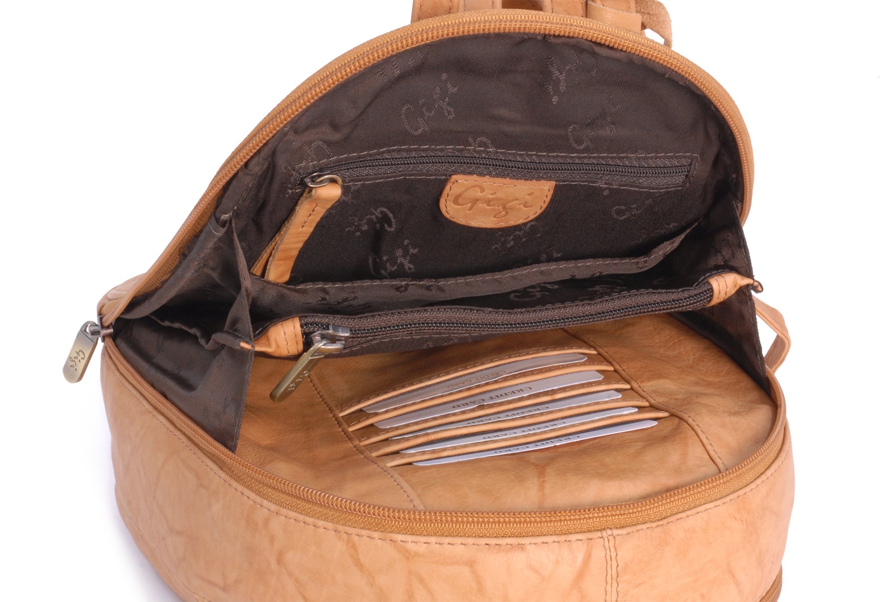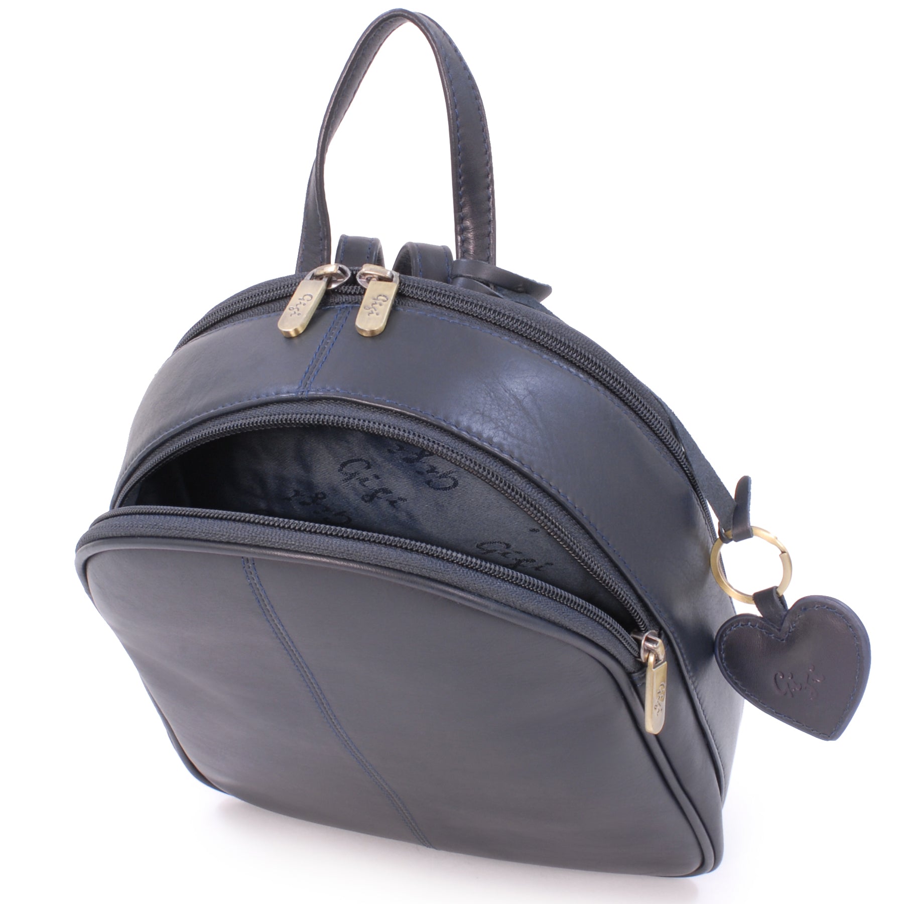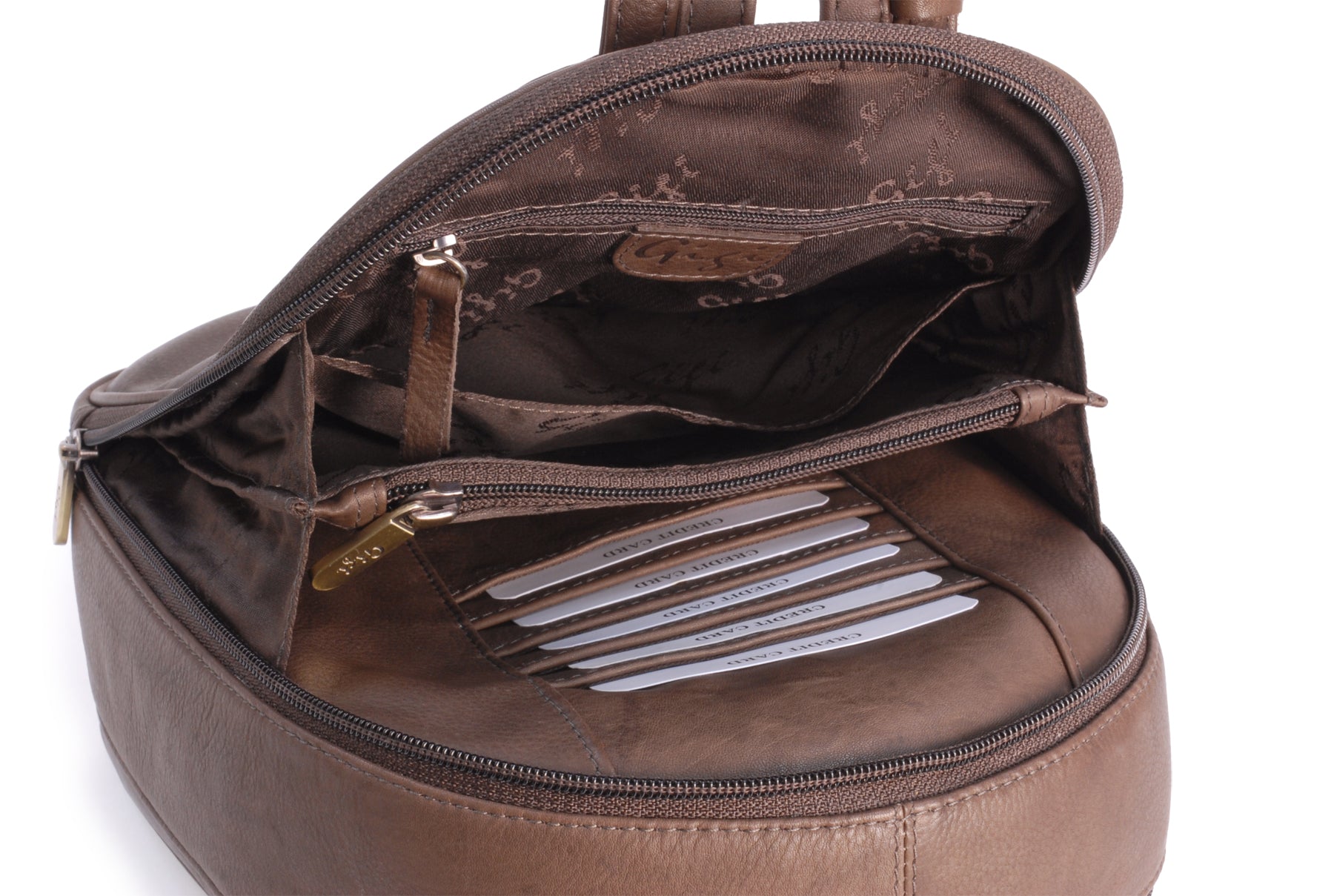 A SUPERB LEATHER BACKPACK WITH SECURE ZIP FASTENING