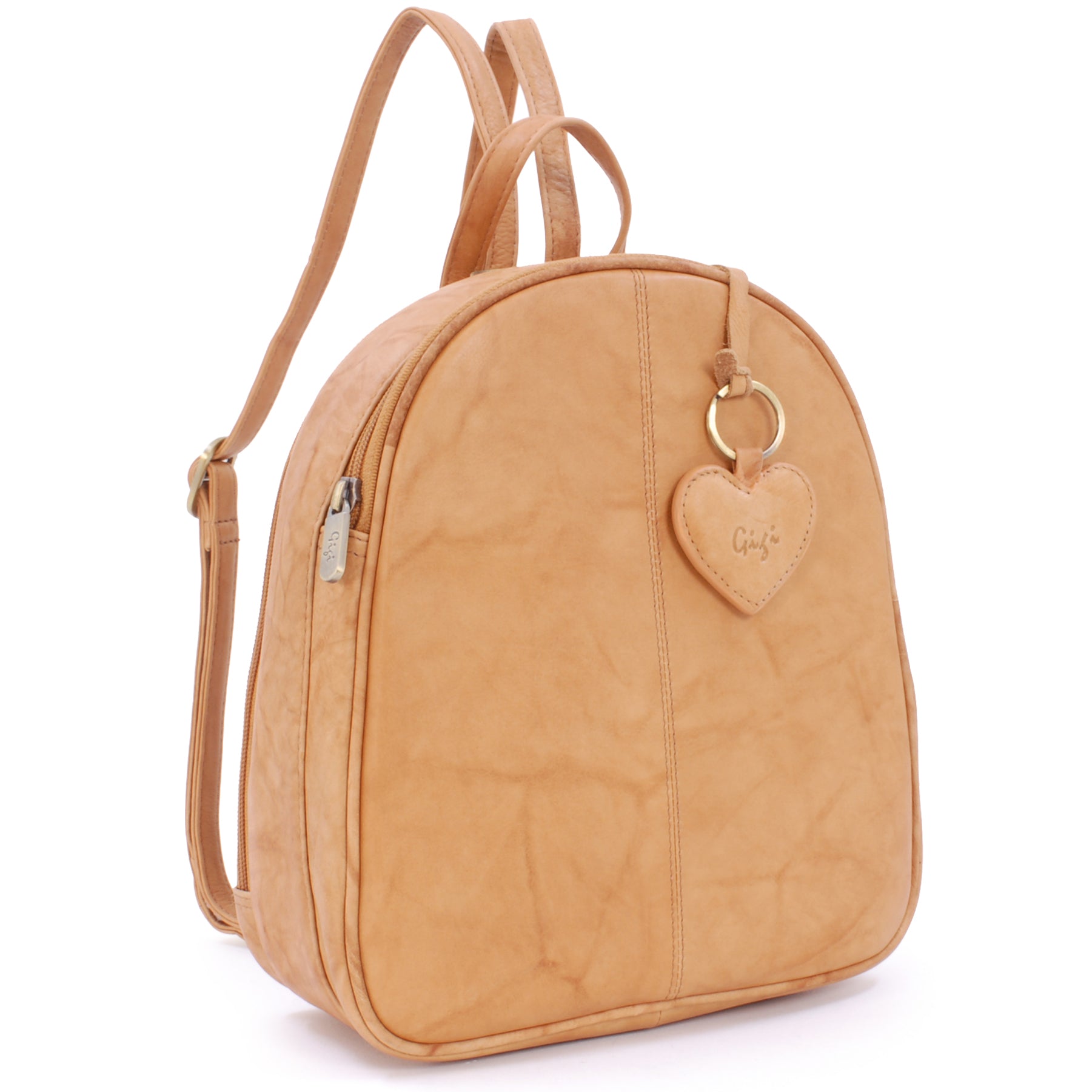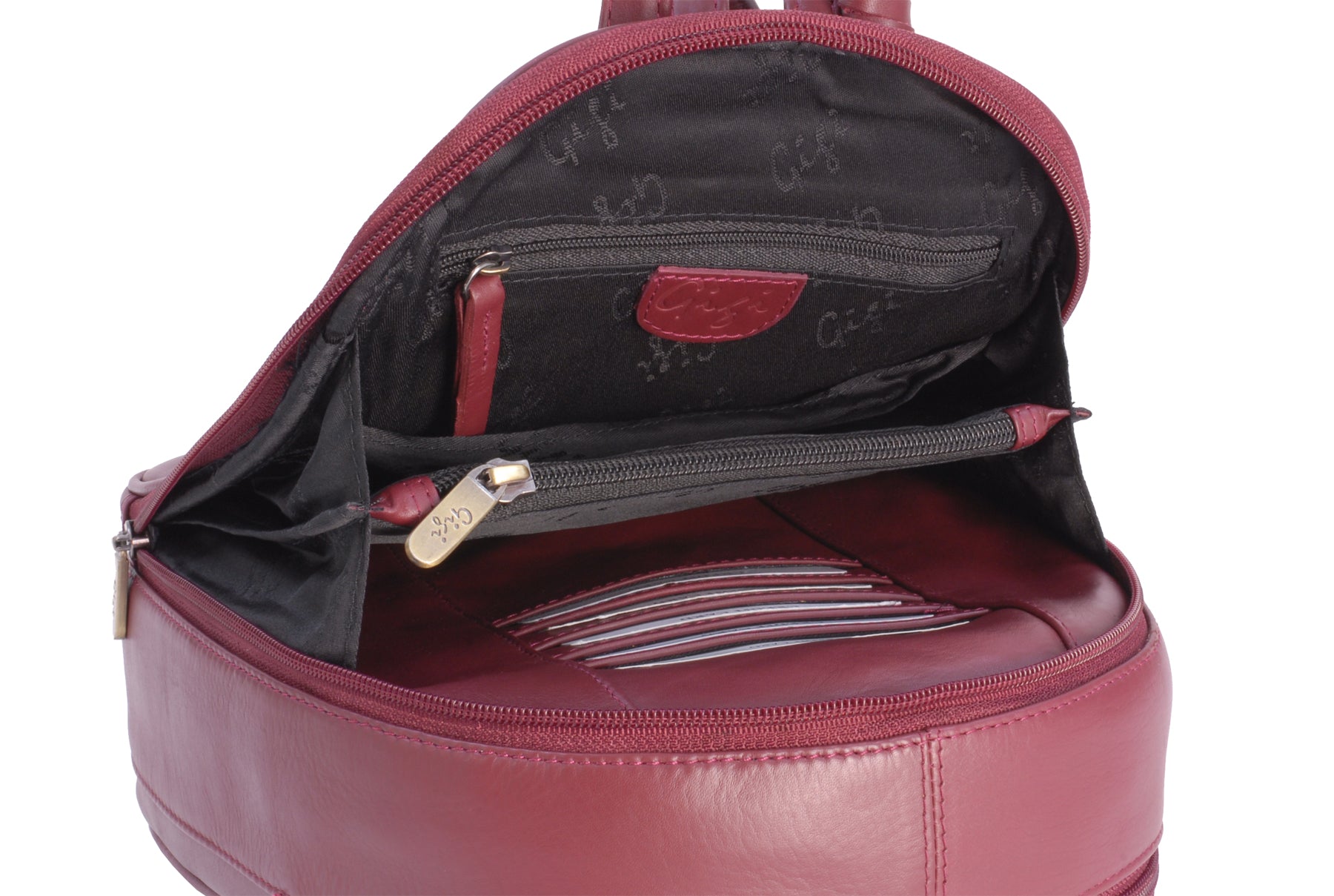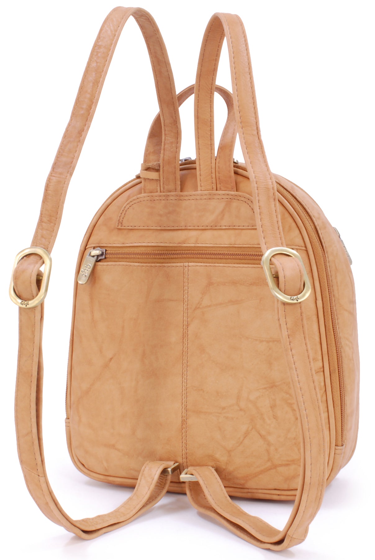 Long leather shoulder straps can be adjusted to fit any size; extend over thick coats or wear fashionably low on your back. This bag also has a handy leather grab handle.