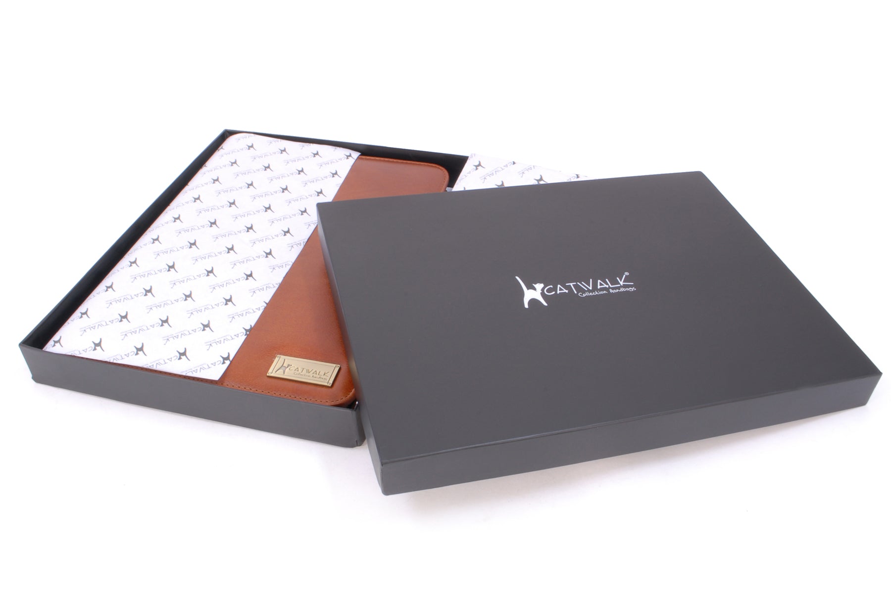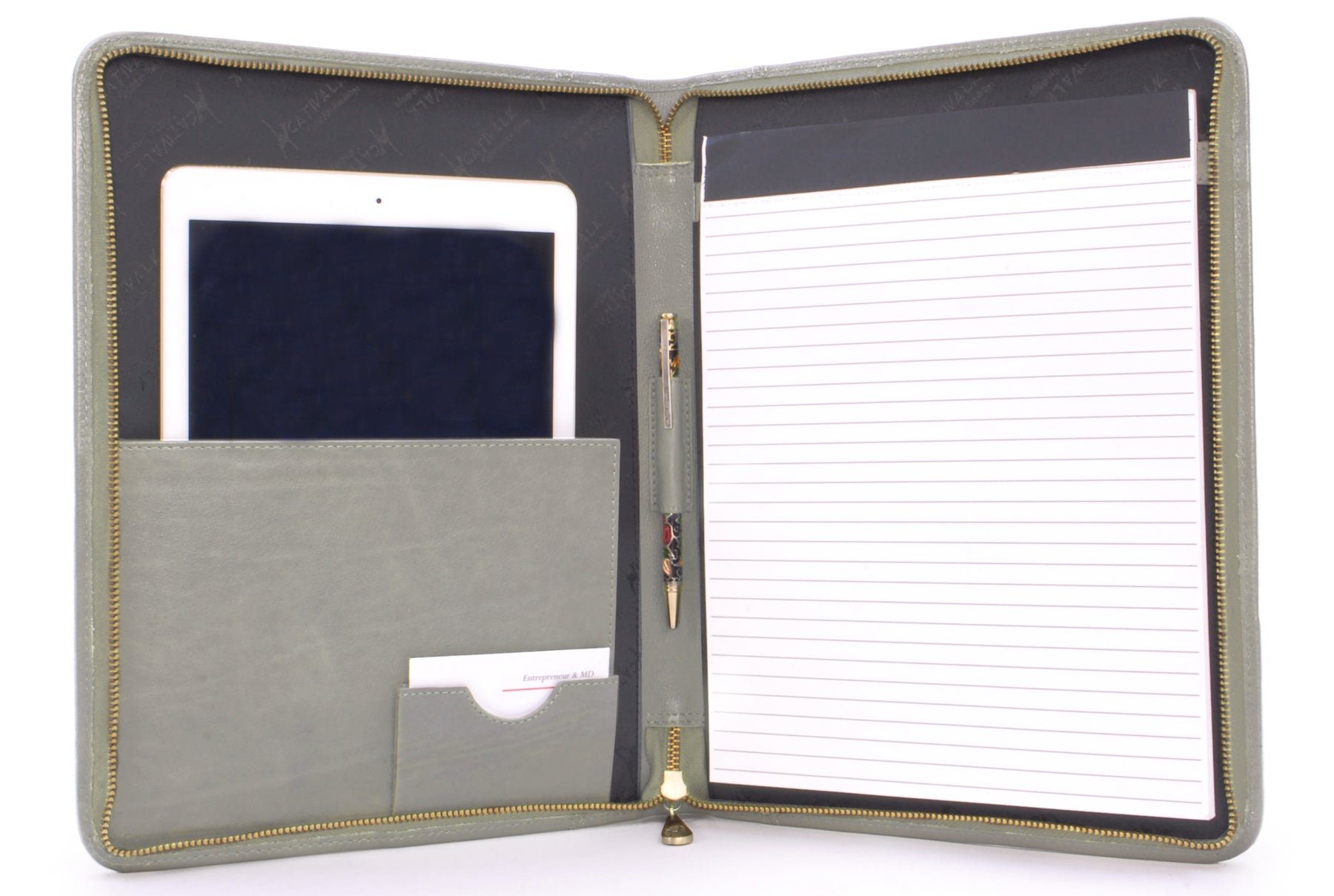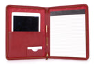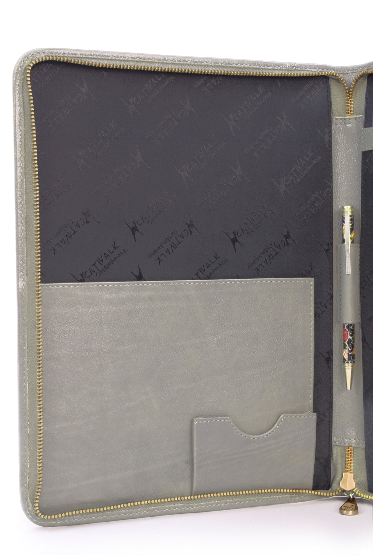 This is a practical yet stylish A4 document holder designed for use at work, college, or university.This leather zip folder includes a notepad and can be carried under the arm. It functions as a conference folder, portfolio, or travel document holder. A solid brass zip pull features the Catwalk Collection Cat Logo. The interior is lined with a combination of leather and branded fabric.Interior dimensions are 31 x 23 x 2 cm. Organisational features include pockets for a pen, business cards, and an A4 notepad. Notepads can be inserted from the top or the side.Designed to hold tablets or eReaders up to 11 inches. Devices can also be placed behind the leather interior panel.Each item is supplied in a gift box, making it suitable as a gift.The leather matches a selection of Catwalk Collection Handbags: Fern, Gallery, Sienna, Victoria, Vicky, Isla, and Emma.For a smaller A5 version of this folder, see the 'Angela' range.