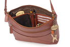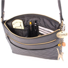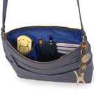 The long, adjustable leather strap allows the bag to be worn over the shoulder or hands-free across the body. Internally, the bag is lined with signature fabric and pockets are reinforced with leather trim to support regular use.