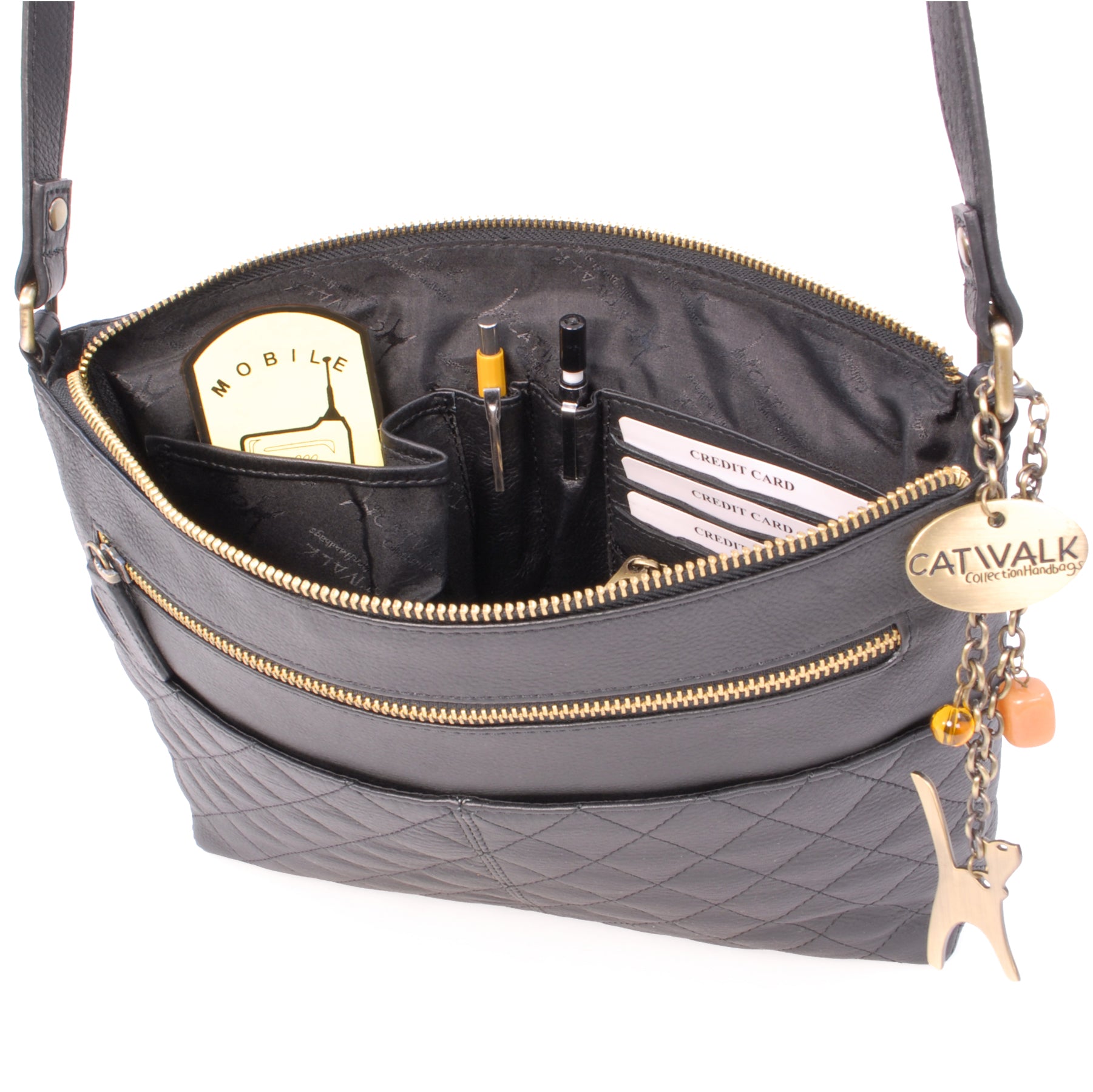 This medium quilted leather crossbody bag blends everyday practicality with a classic, slim, and lightweight design.