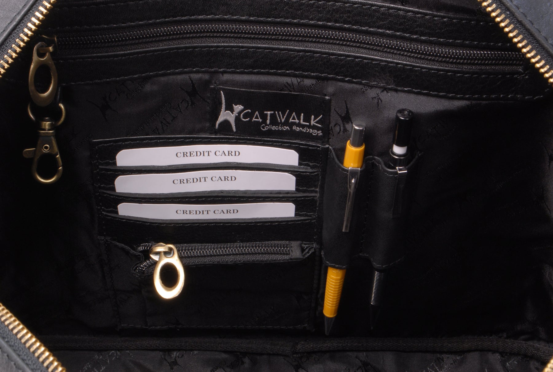Pockets: 1 Main Compartment + 1 Outer Front Zipped Pocket + 1 Interior Side Zipped Pocket + 1 Mobile Phone Holder + 1 Calculator Holder + 3 Credit Card Holders + 2 Pen Holders + 1 Zipped Coin Pocket + 2 Outer Front Diagonal Decorative Zips