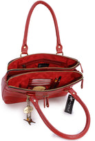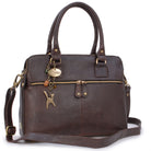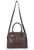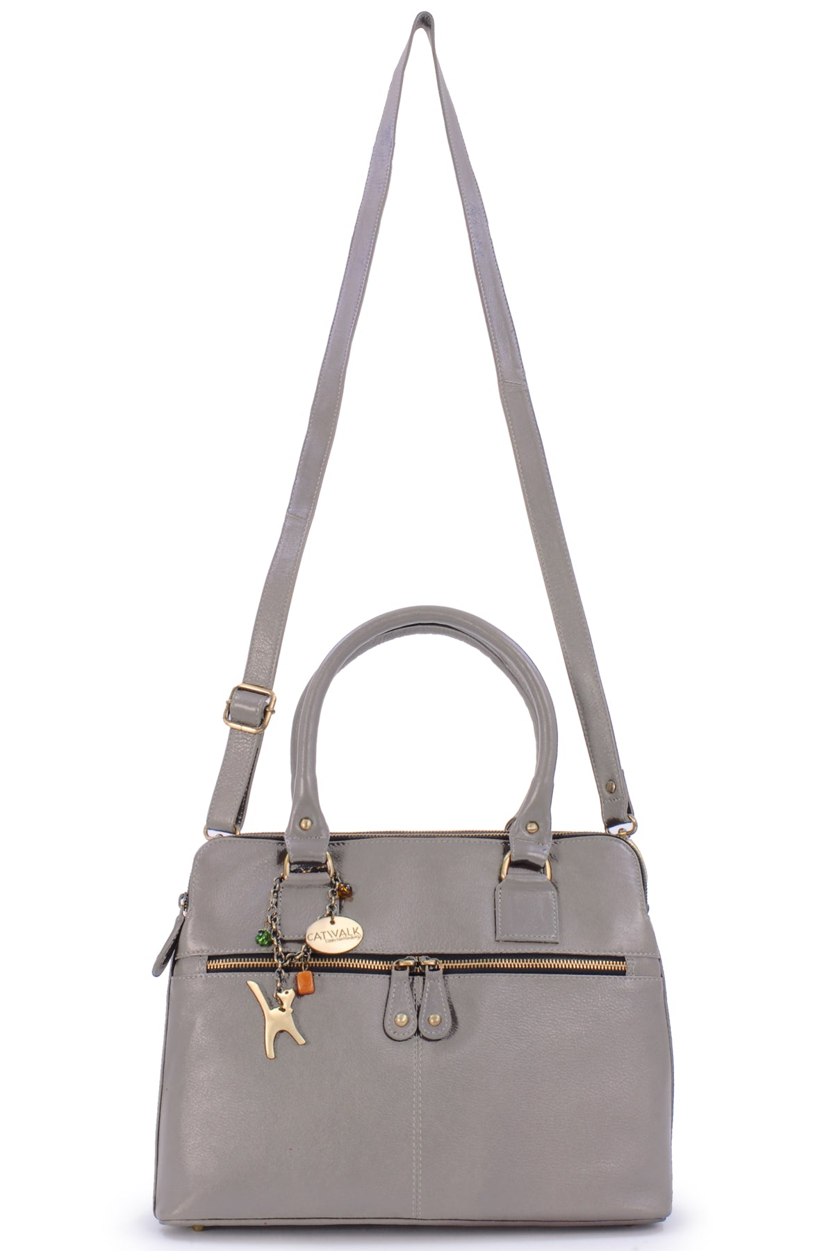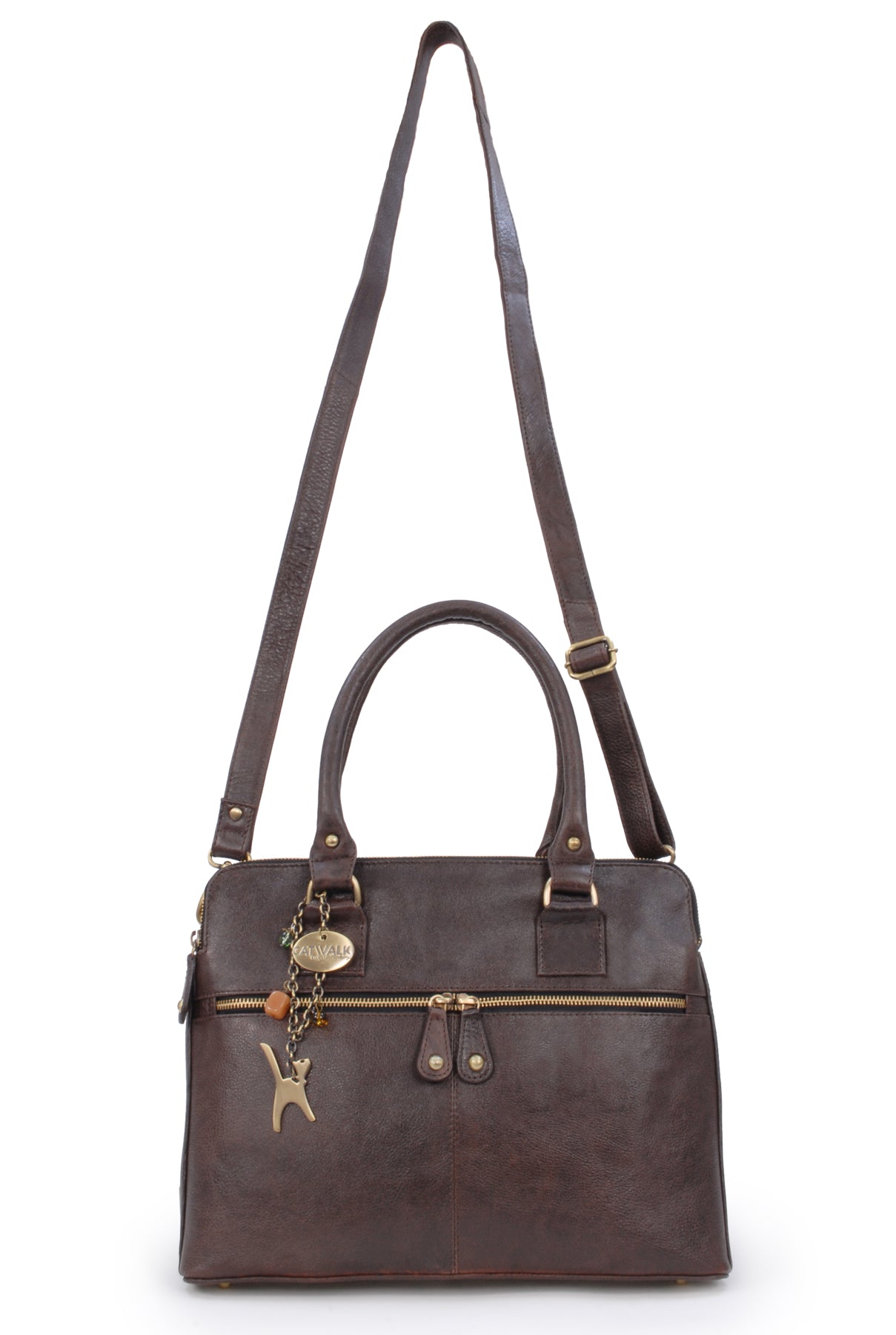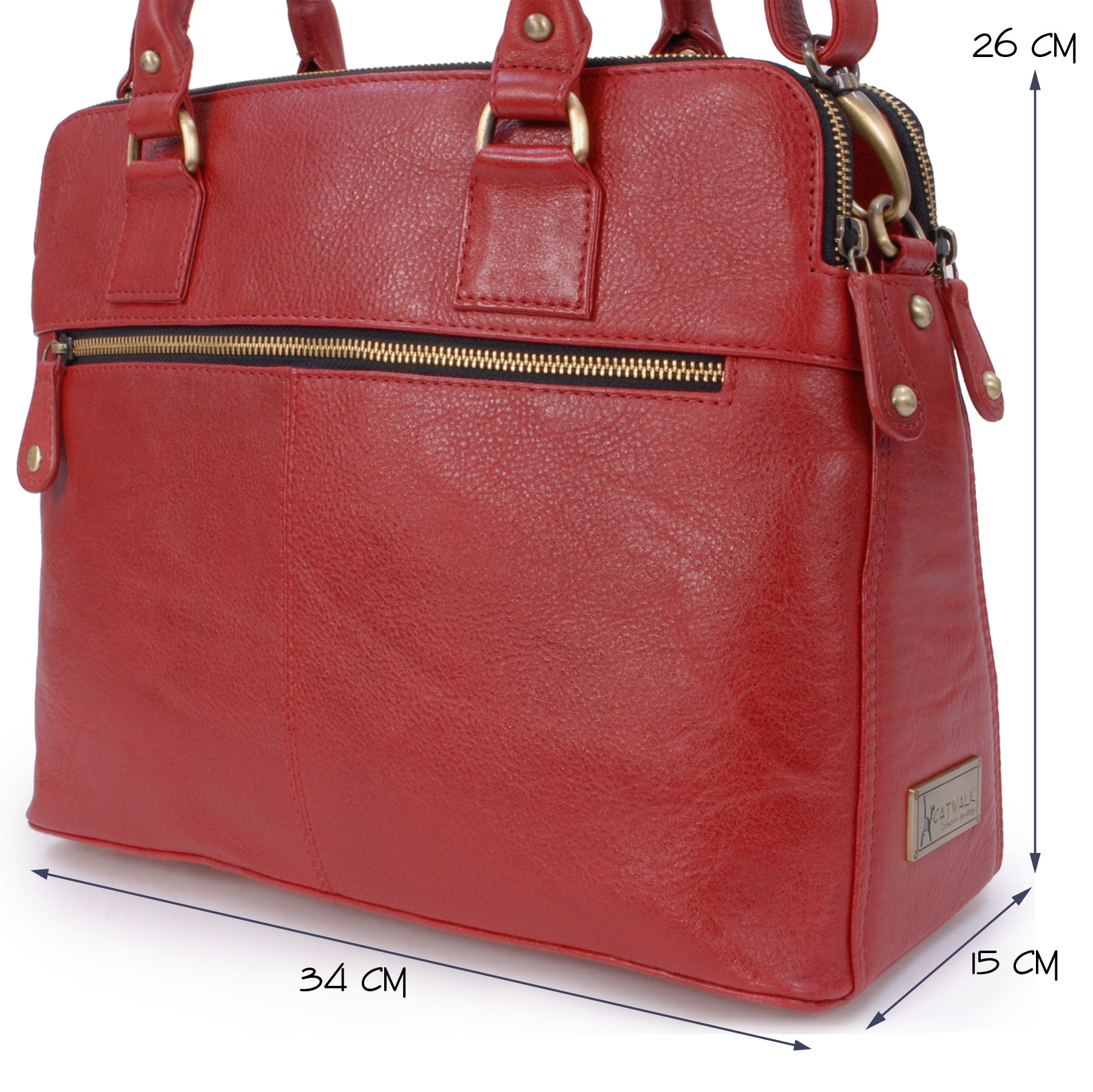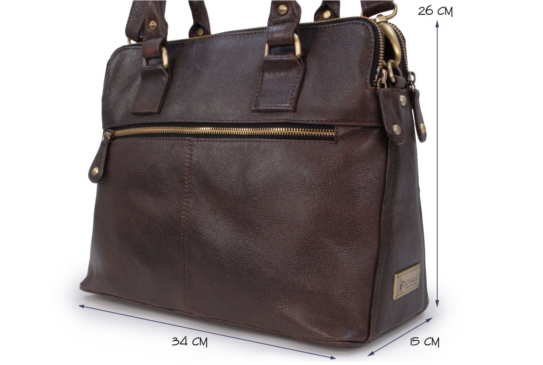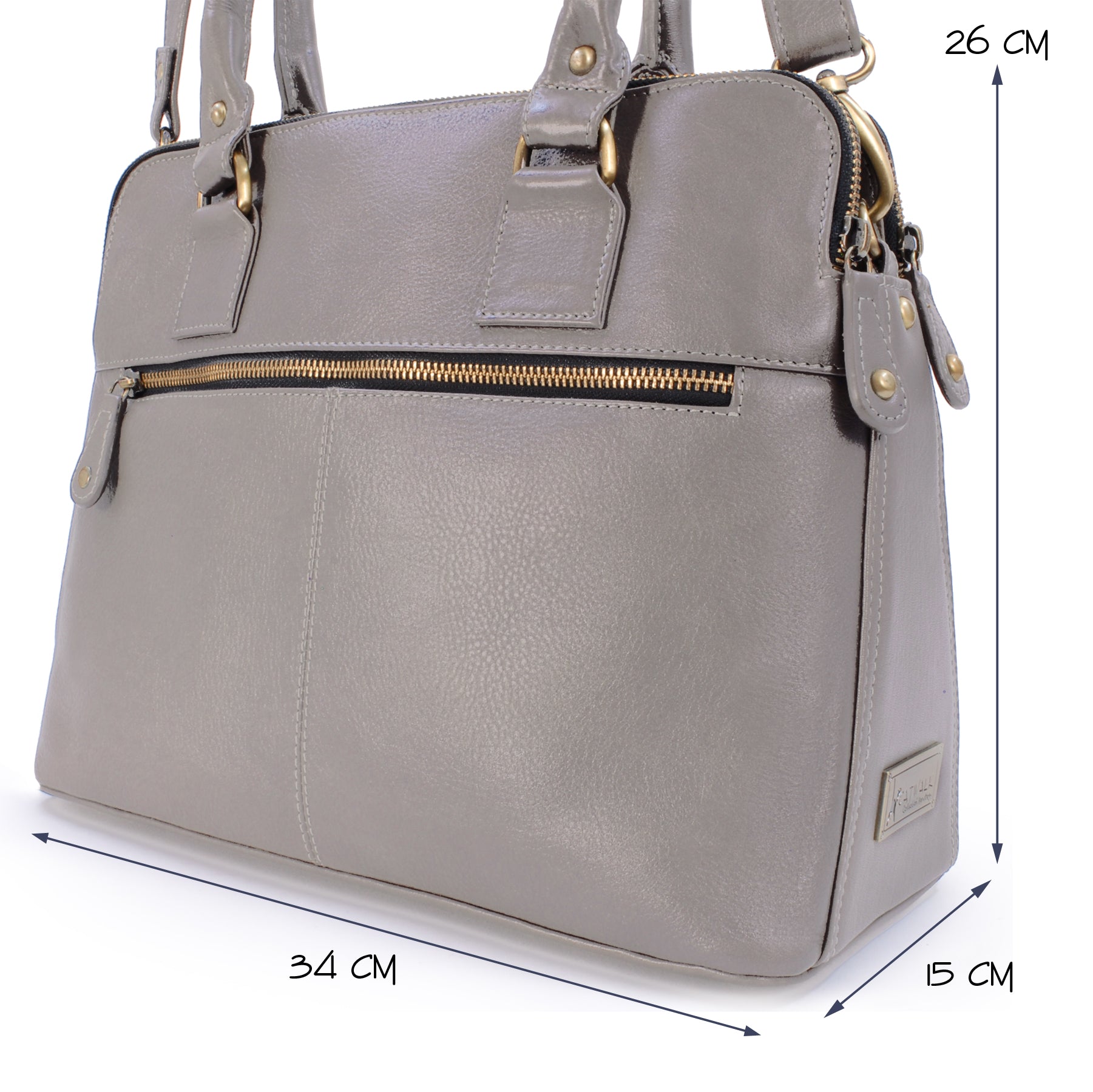 This large leather handbag offers a practical solution for those needing extra space to organise everyday items. Ideal for work, travel or everyday use.Designed with multiple interior sections, it functions as a tote, organiser, and crossbody bag in one, accommodating essentials like an A4 notebook, eReaders or tablets, and other daily belongings. The three main compartments close with a secure zip, while antique brass fittings and structured handles add a functional finish.The bag can be carried by hand, worn over the shoulder with rolled leather handles, or worn crossbody using the long, adjustable leather strap. The interior is fully lined with signature branded fabric and includes organisational features such as pen holders, card slots, and a mobile phone pocket, all reinforced with leather trim.The flat base has studded feet which help the bag stay upright when placed on a surface, while protecting the leather base of the bag.This handbag pairs with matching leather purses from the Victoria and Gallery ranges.