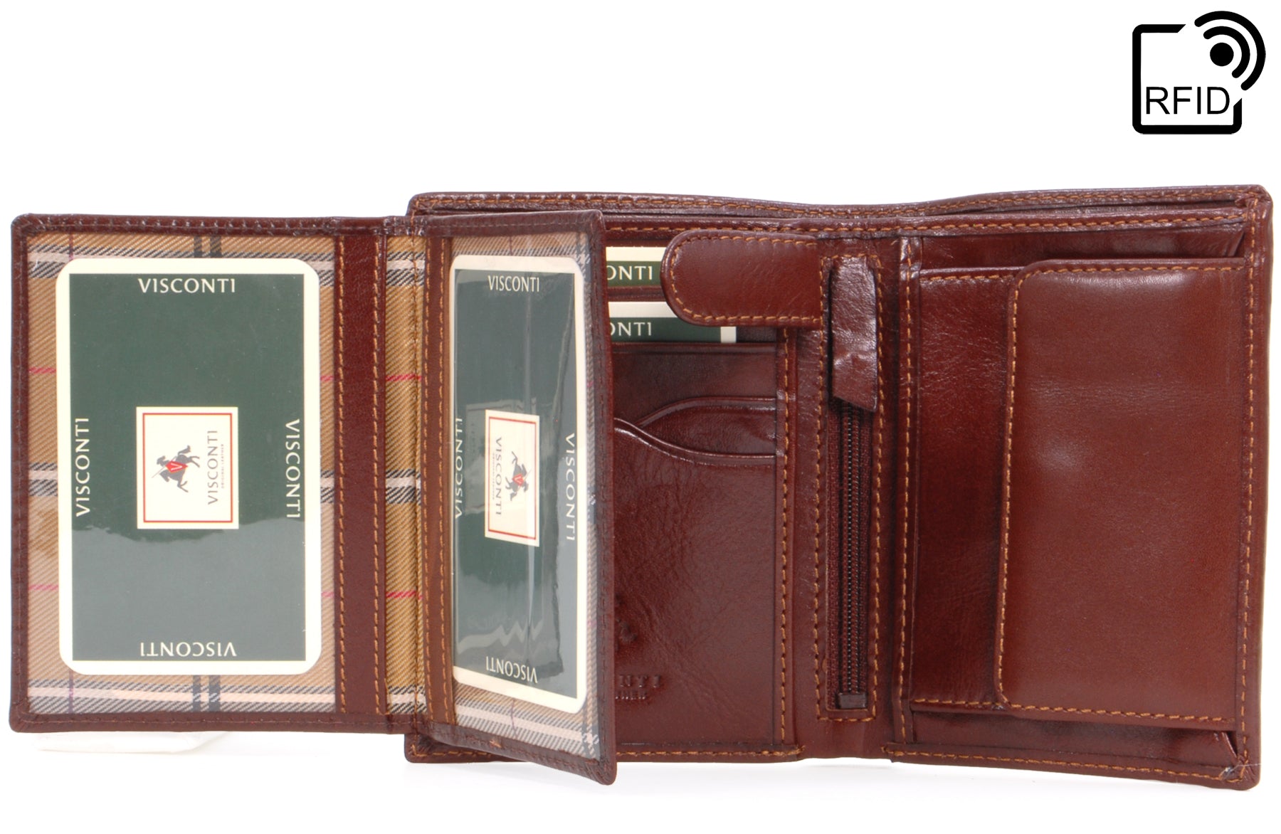 The Visconti brand name and logo is stylishly imprinted into the leather inside the wallet.