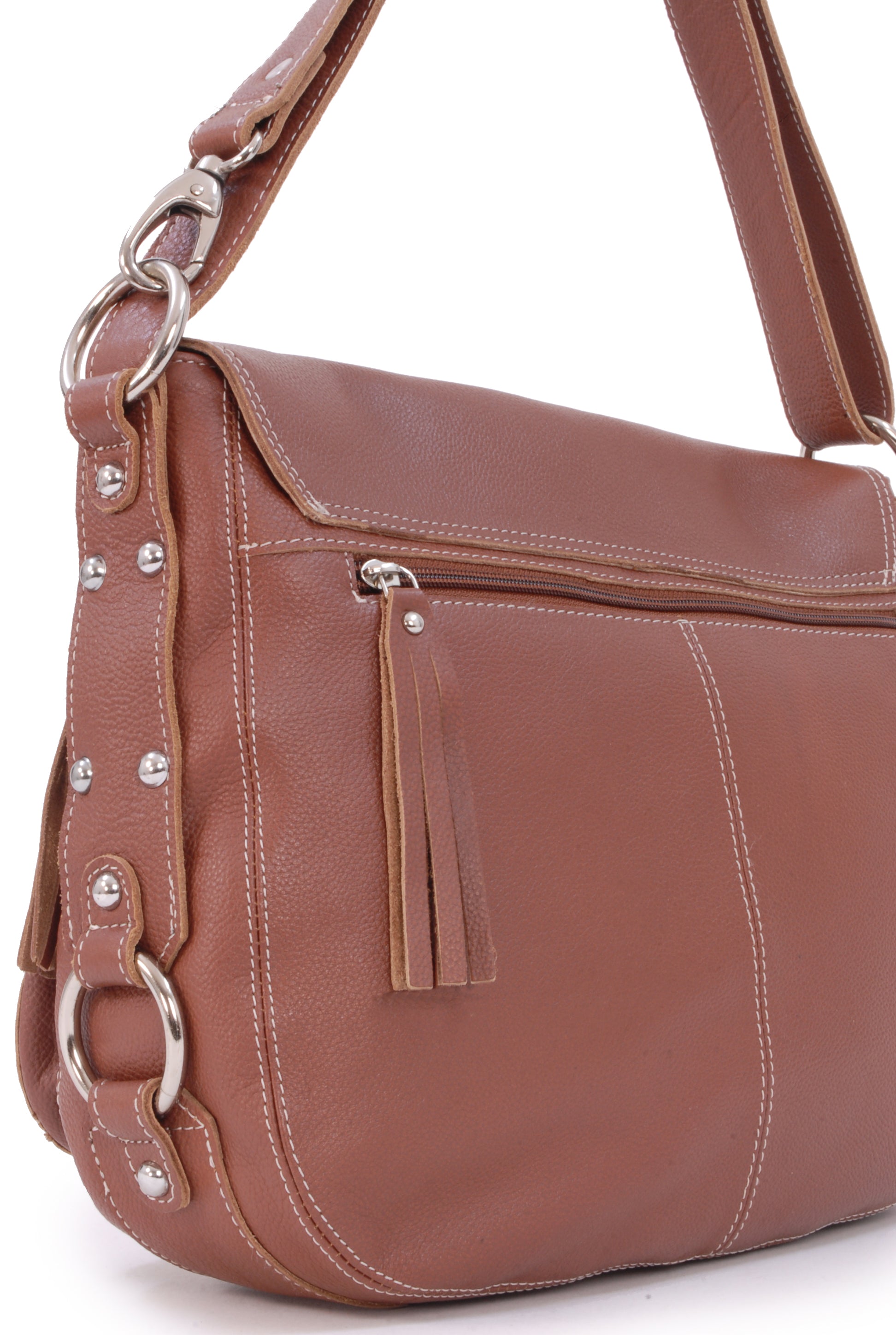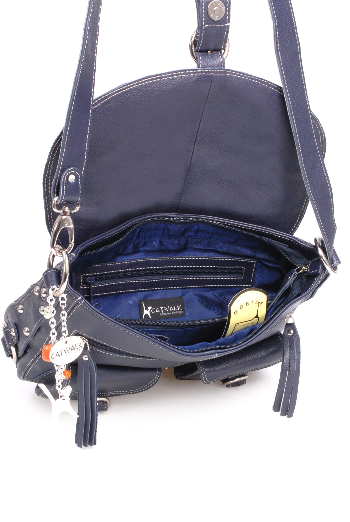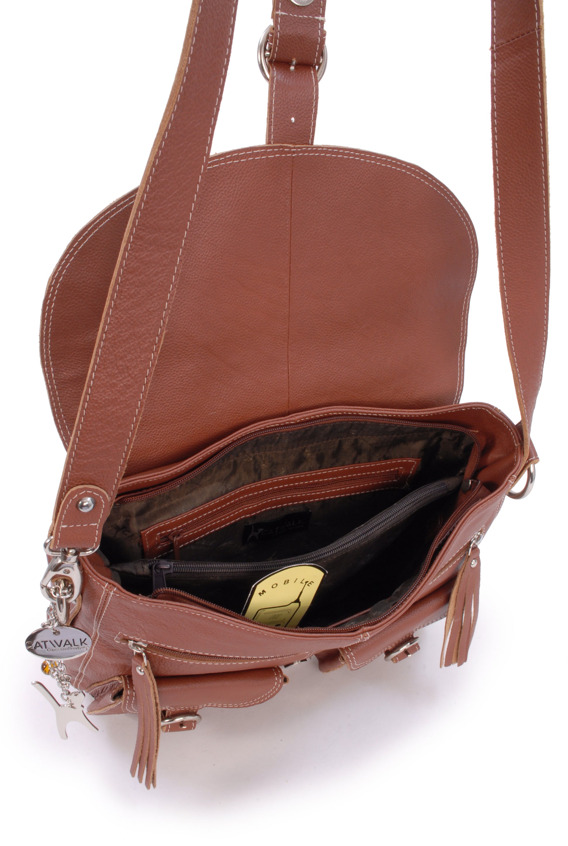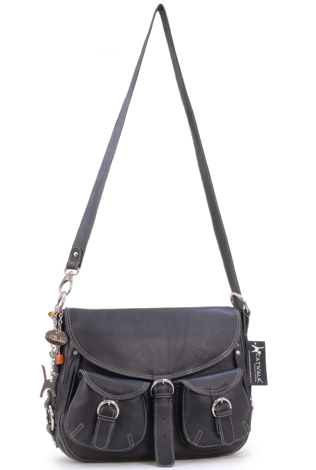 This large leather messenger bag is designed to be worn crossbody, offering a casual look suitable for relaxed, everyday wear.It provides ample capacity with multiple compartments and pockets for organised storage. The main section can accommodate an A5-sized diary, purse, make-up case, and other daily essentials.The bag opens wide for easy access and fastens securely with a zip closure. Decorative buckles on the front panel conceal magnetic poppers, combining secure fastening with visual detail.A zipped pocket on the rear offers additional accessible storage.The strap is long, adjustable, and detachable, made entirely from leather, and allows the bag to be worn over the shoulder or across the body.Contrast stitching defines the edges and structure of the design, while the flat base ensures the bag sits upright when placed down.This leather crossbody messenger bag is suited for everyday use, combining capacity, organisation, and convenience in one design.