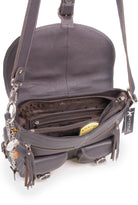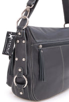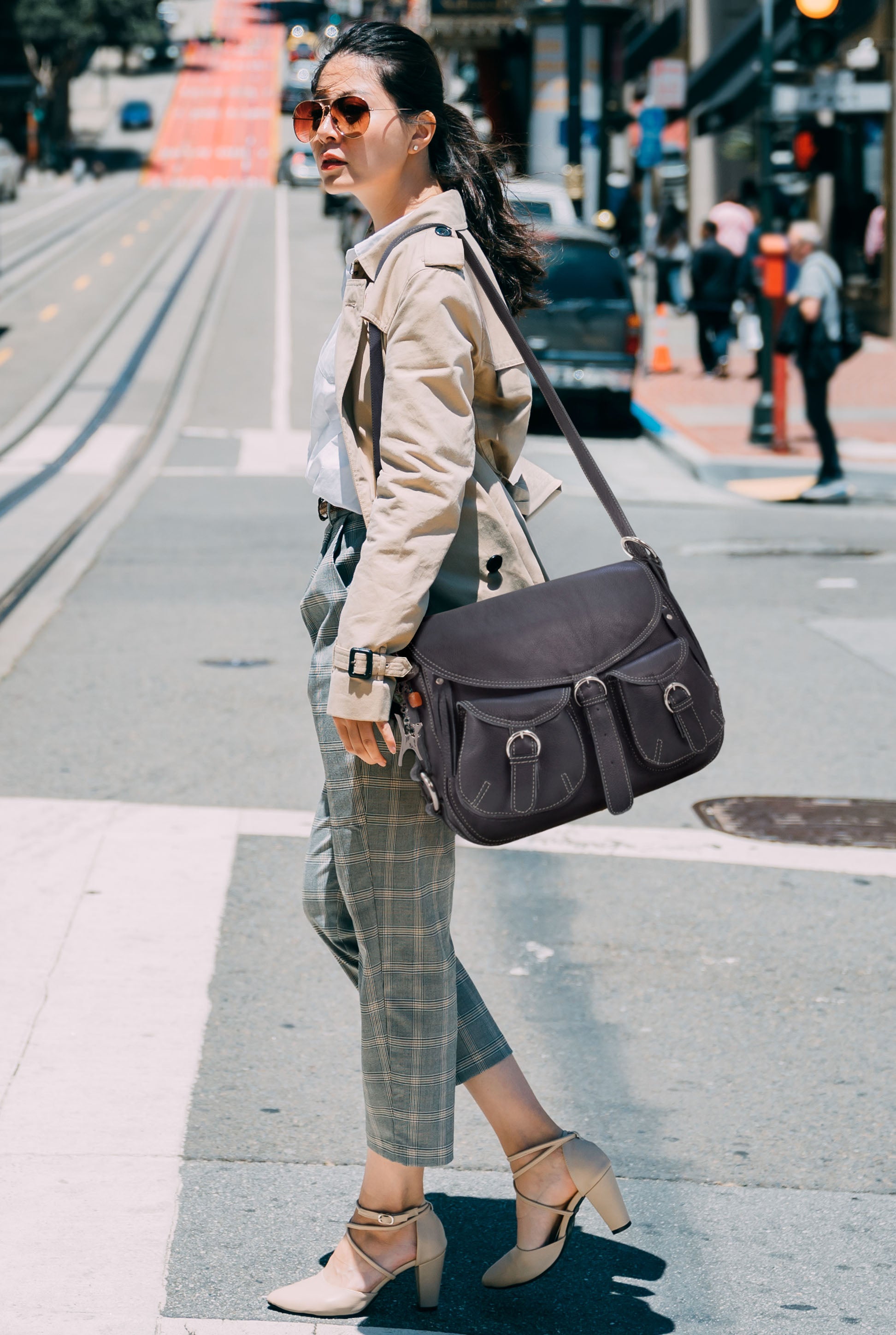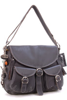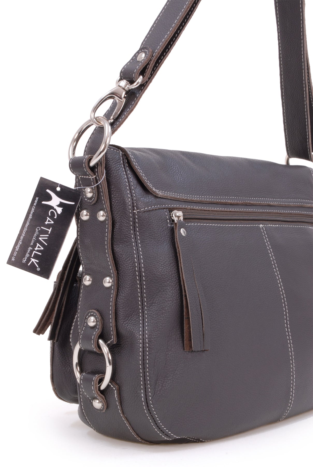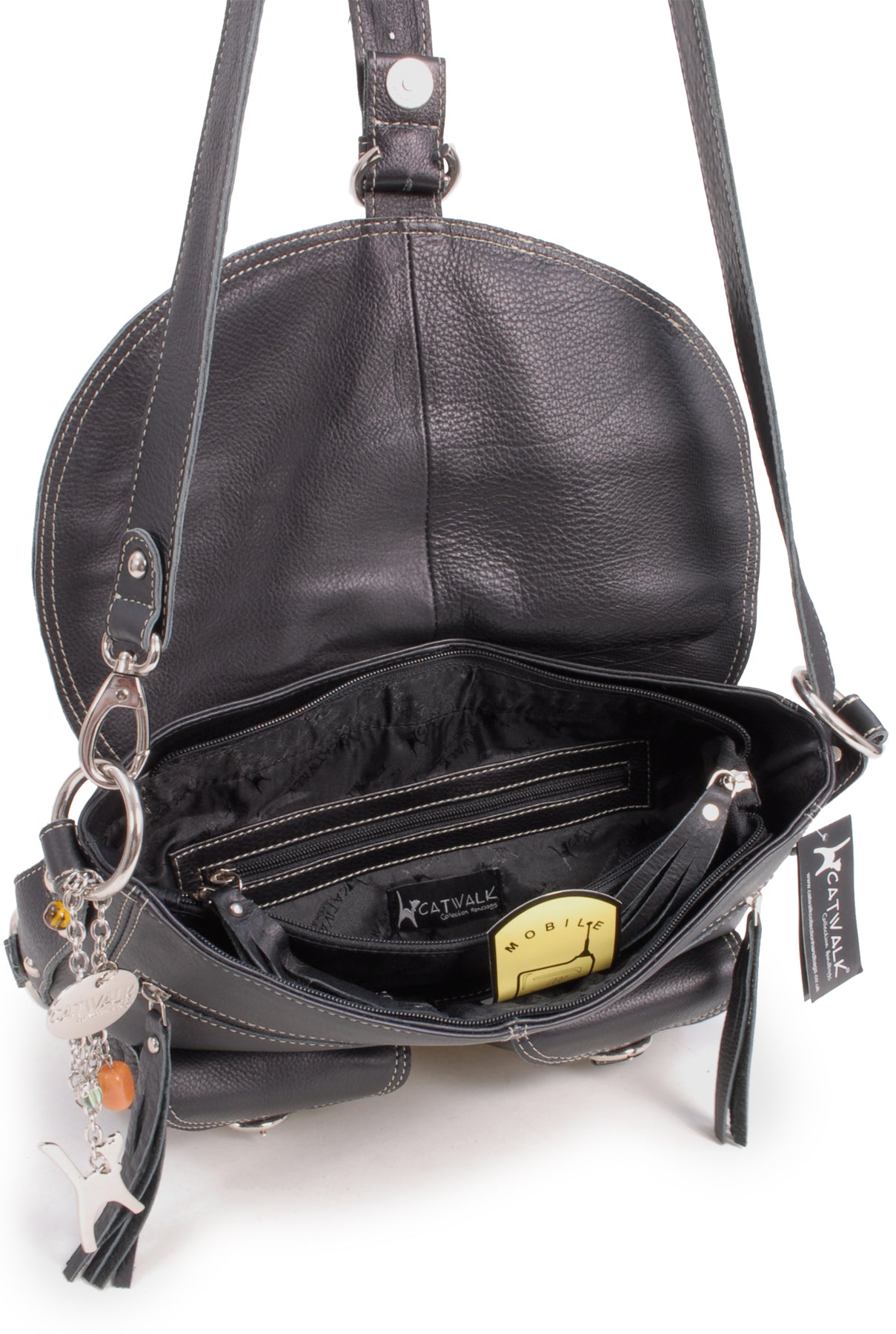 This large leather messenger bag is designed to be worn crossbody, offering a casual look suitable for relaxed, everyday wear.It provides ample capacity with multiple compartments and pockets for organised storage. The main section can accommodate an A5-sized diary, purse, make-up case, and other daily essentials.The bag opens wide for easy access and fastens securely with a zip closure. Decorative buckles on the front panel conceal magnetic poppers, combining secure fastening with visual detail.A zipped pocket on the rear offers additional accessible storage.The strap is long, adjustable, and detachable, made entirely from leather, and allows the bag to be worn over the shoulder or across the body.Contrast stitching defines the edges and structure of the design, while the flat base ensures the bag sits upright when placed down.This leather crossbody messenger bag is suited for everyday use, combining capacity, organisation, and convenience in one design.