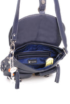 Pockets: 2 Main Compartments + 1 Central Zipped Pocket + 1 Interior Side Zipped Pocket + 1 Leather topped Mobile Phone Holder + 1 Leather topped Interior Open Pocket + 2 Small Front Zipped Pockets + 2 Outer Front Pockets + 1 Outer Rear Zipped Pocket
