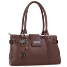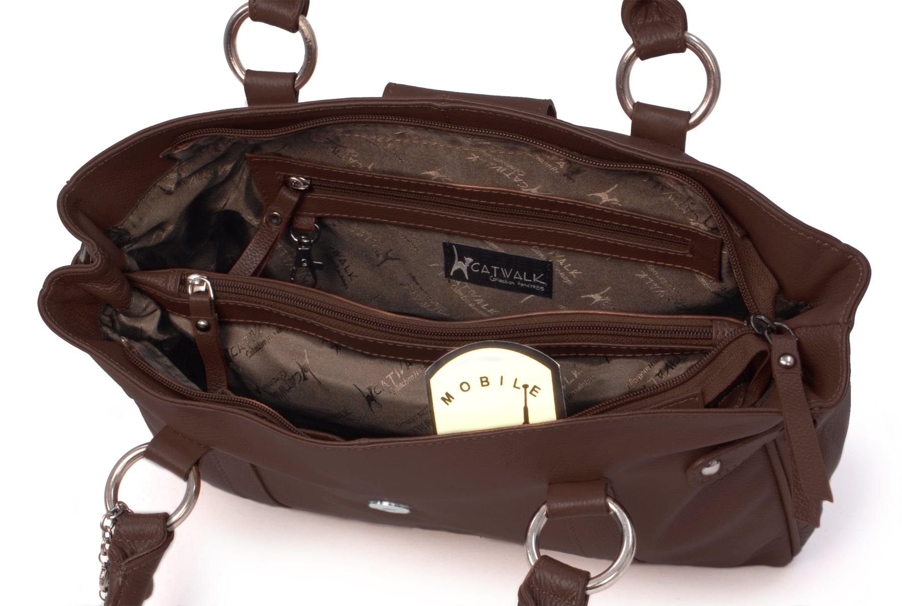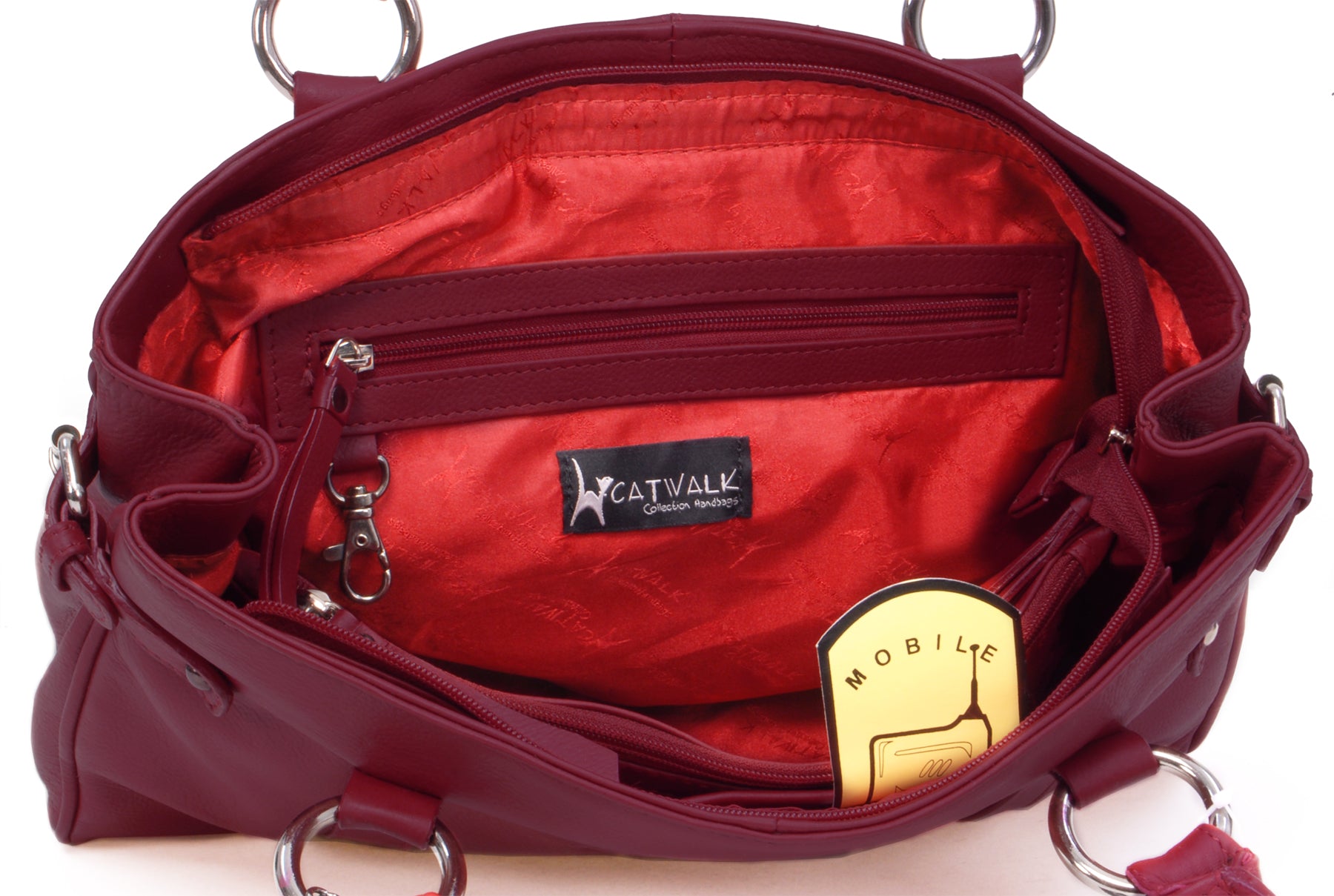 Pockets: 2 Main Compartments + 1 Central Zipped Compartment + 1 Interior Side Zipped Pocket + 1 Leather topped Mobile Phone Holder + 1 Leather topped Interior Open Pocket + 1 Key Fob