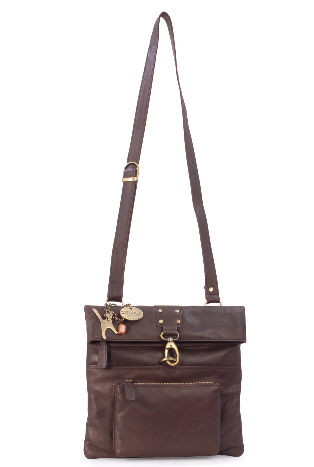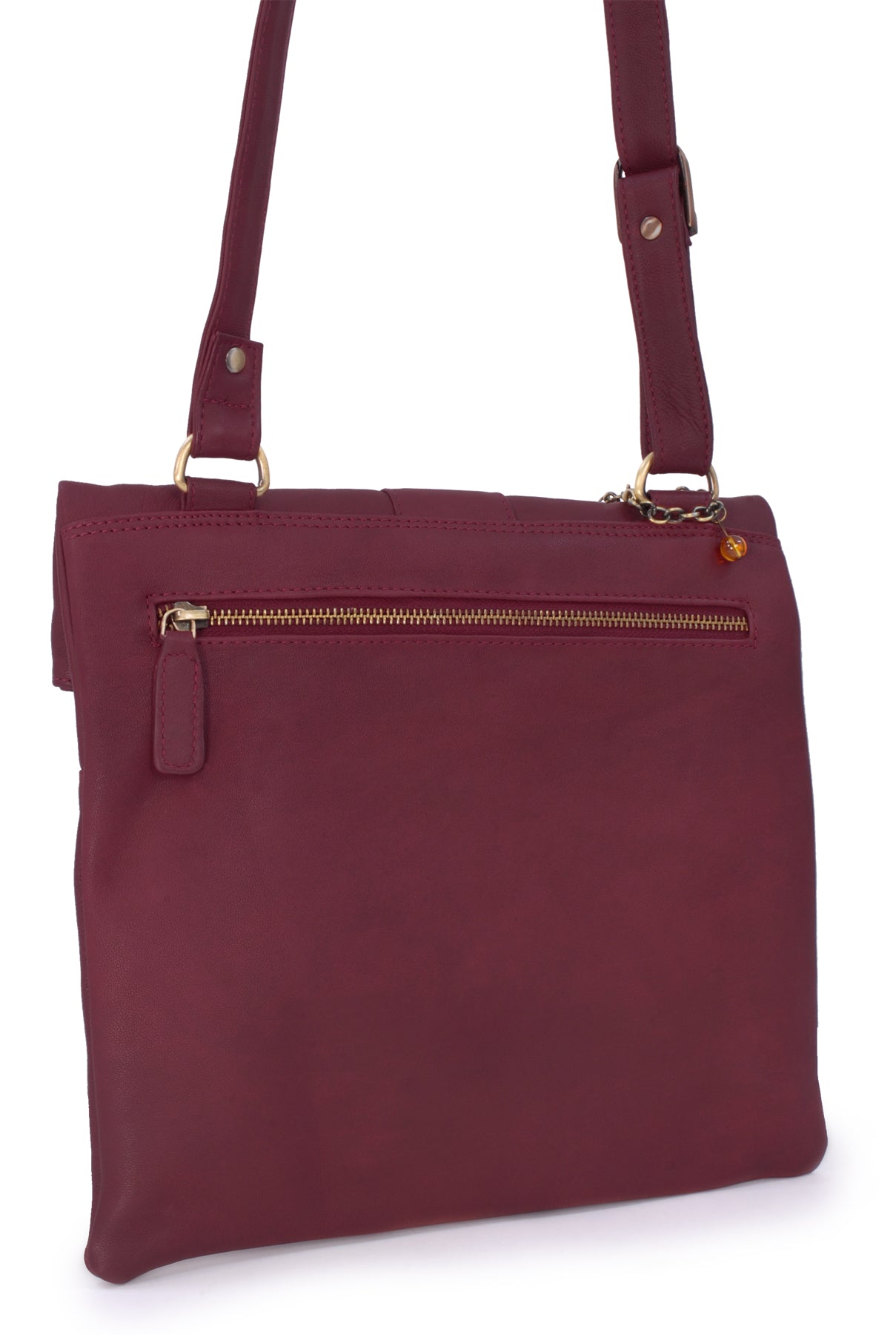 This medium-sized leather messenger-style bag features a slim profile with practical storage for everyday use.The main compartment offers space for an A5-sized diary, purse, make-up case, and other daily essentials. The interior is fully lined and slightly padded.The bag fastens securely with a metal zip. The top section folds over and is held in place with a brass spring clip, adding an extra layer of security.A zipped pocket on the rear provides convenient external storage for quick-access items.The long strap is fully adjustable with a sliding brass grip, allowing the bag to be worn comfortably over the shoulder or hands-free across the body. The strap design avoids buckles to prevent snagging on clothing.This leather crossbody bag is suited to those looking for a slim, secure, and functional option for everyday use.
