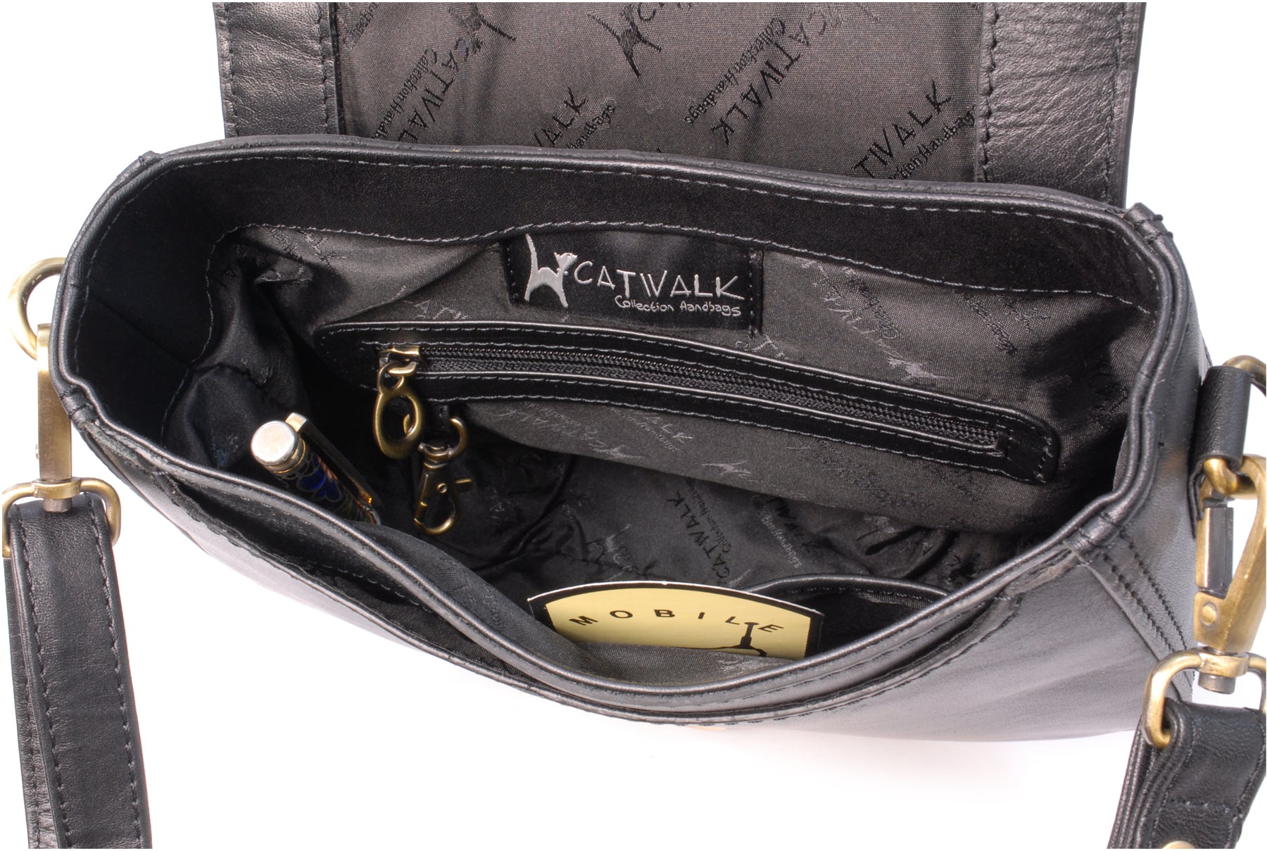 Pockets: 1 Main Compartment + 1 Interior Rear Zipped Pocket + 1 Leather topped Mobile Phone Holder + 1 Leather topped Pen Holder + 1 Key Fob + 1 Open Front Pocket + 1 Outer Rear Open Pocket