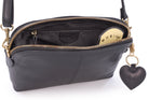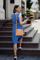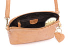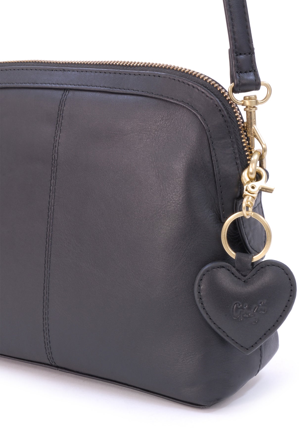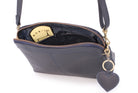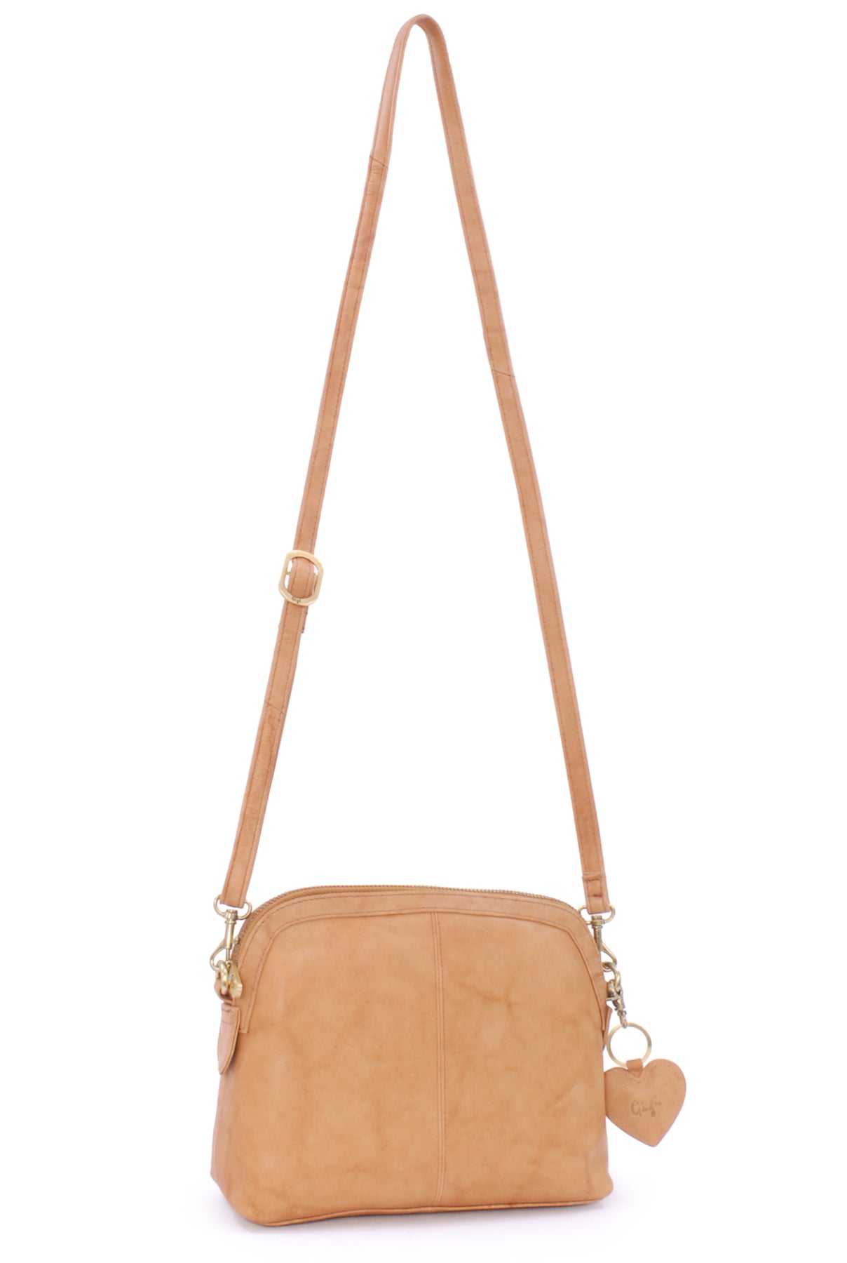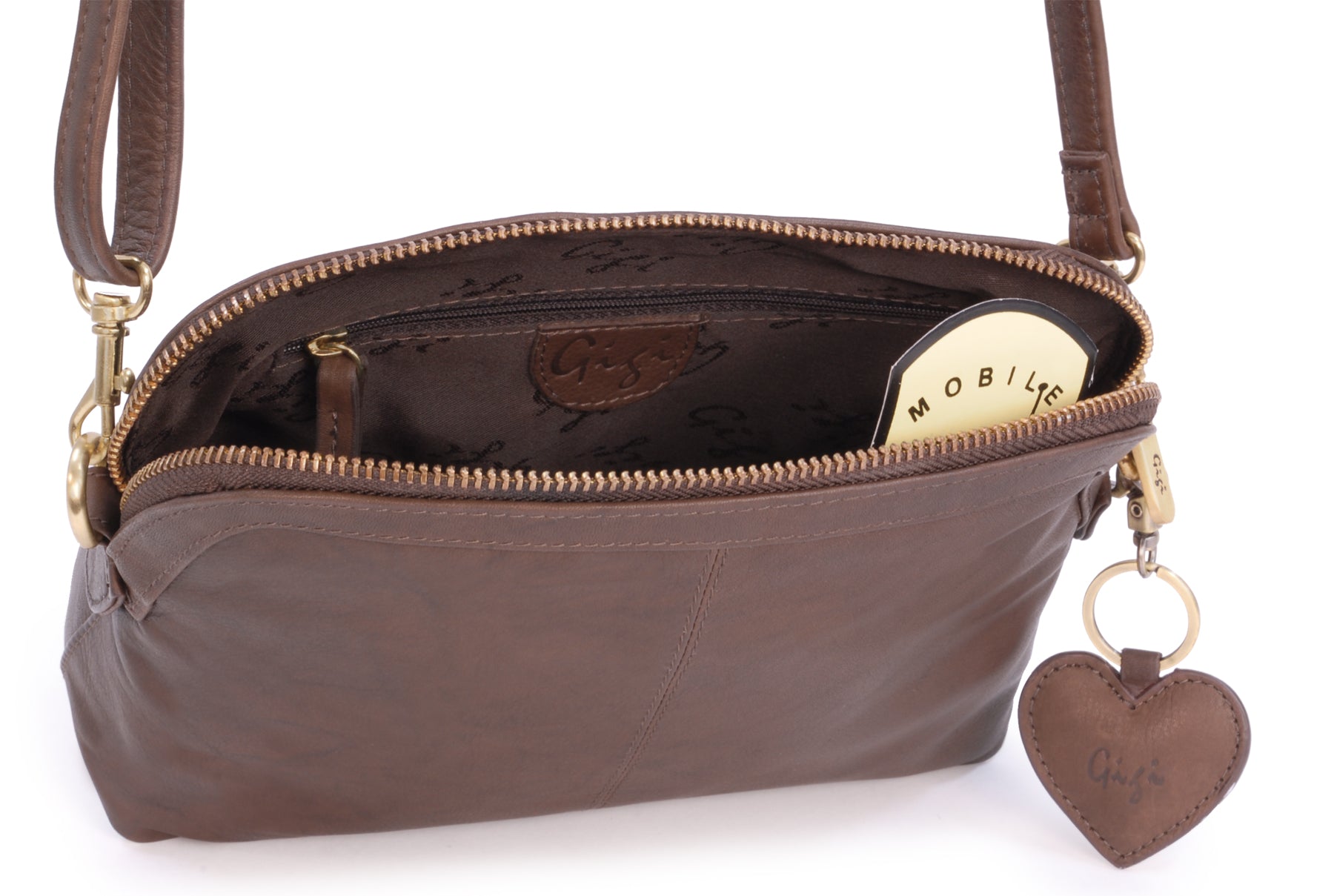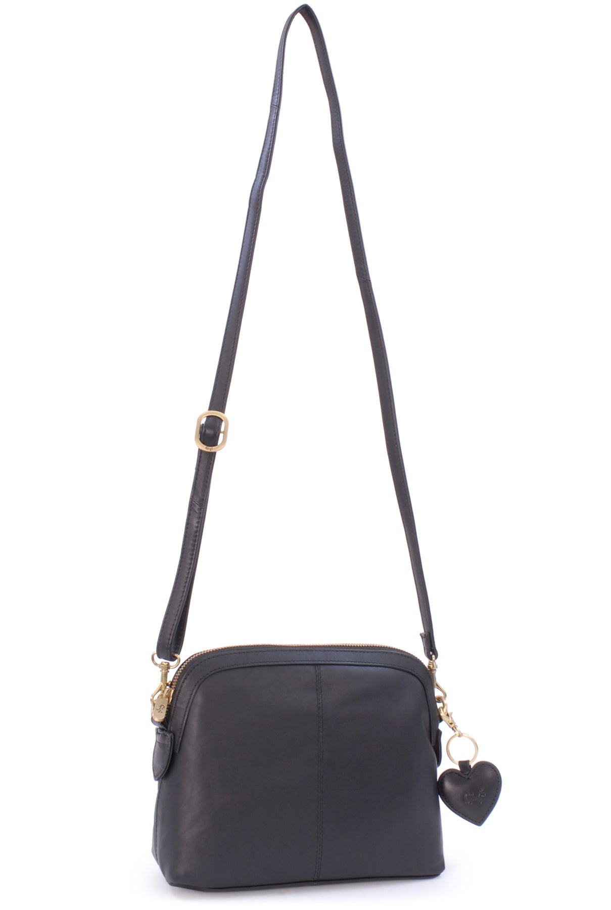 The long strap is fully adjustable with a sliding brass grip for the perfect fit and there are no buckles to snag clothes.