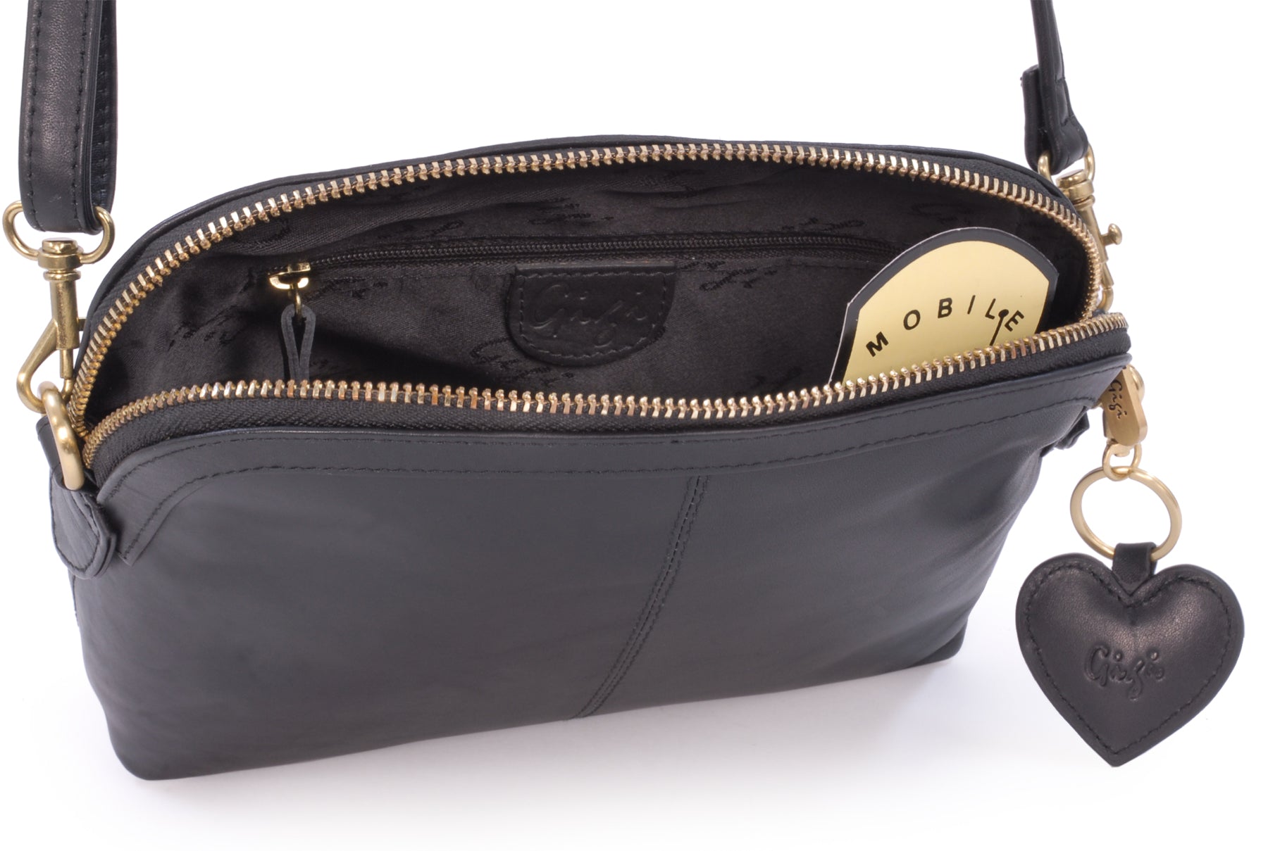 Pockets: 1 Main Compartment + 1 Interior Rear Zipped Pocket + 1 Leather Topped Interior Open Pocket + 1 Leather Topped Mobile Phone Holder