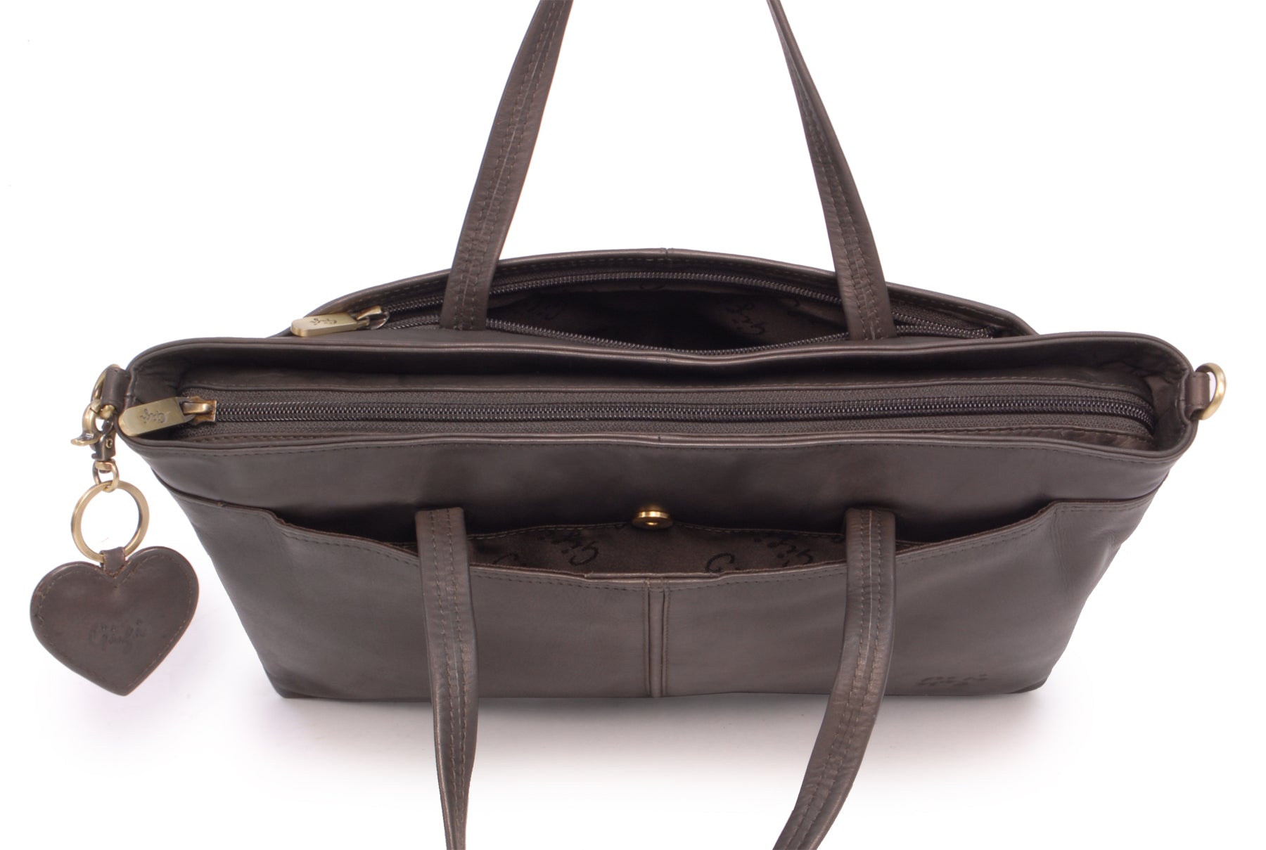 DARK BROWN: the same leather has a special effect created by marbling darker shades over lighter hues for a subtle vintage effect.