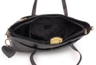 Double handles are broad and flat to hook comfortably over the lower arm.