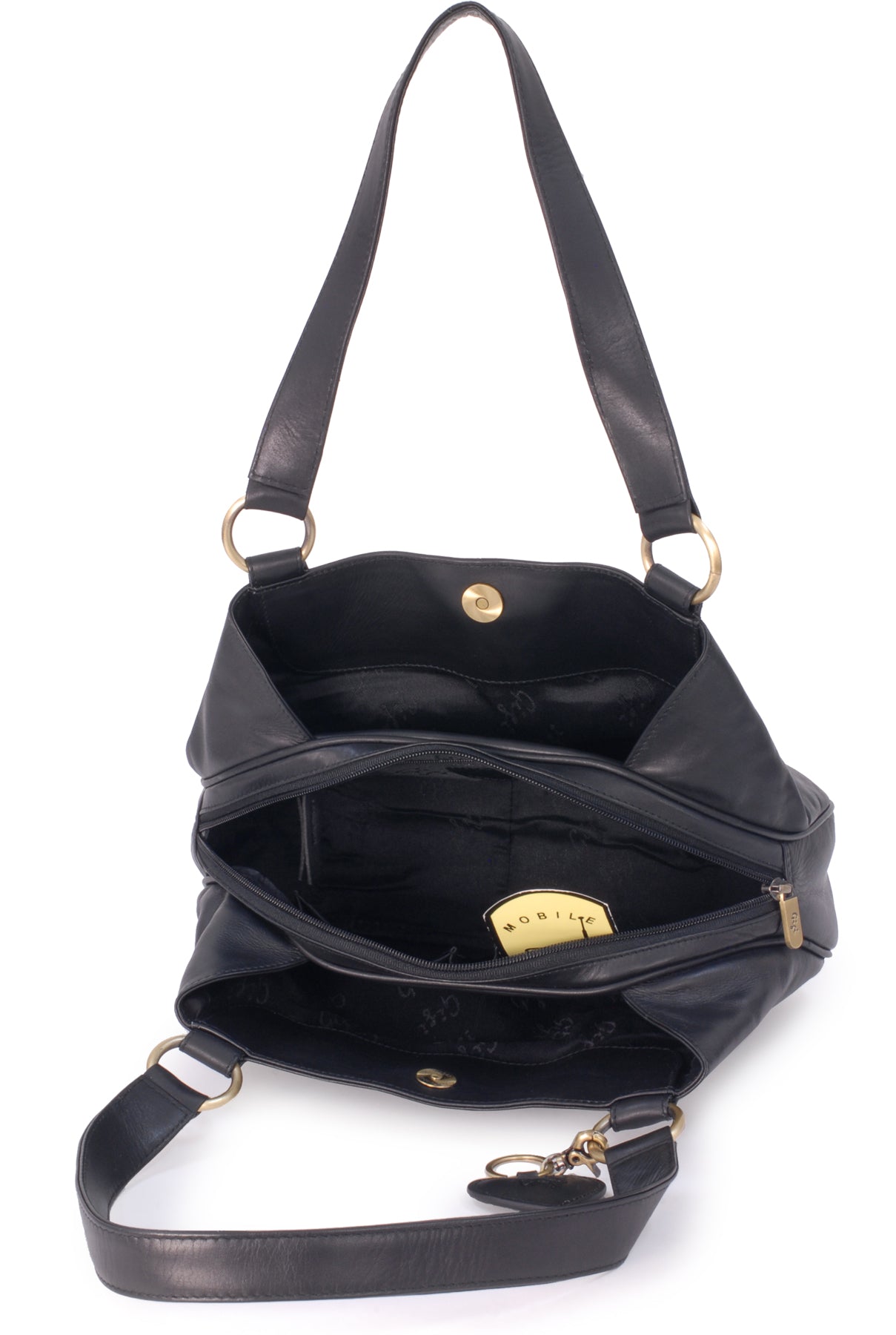Every detail on this shoulder bag has been well thought out to create a design which is practical to use, allowing easy access, yet closes up securely into a smartly tailored shape.