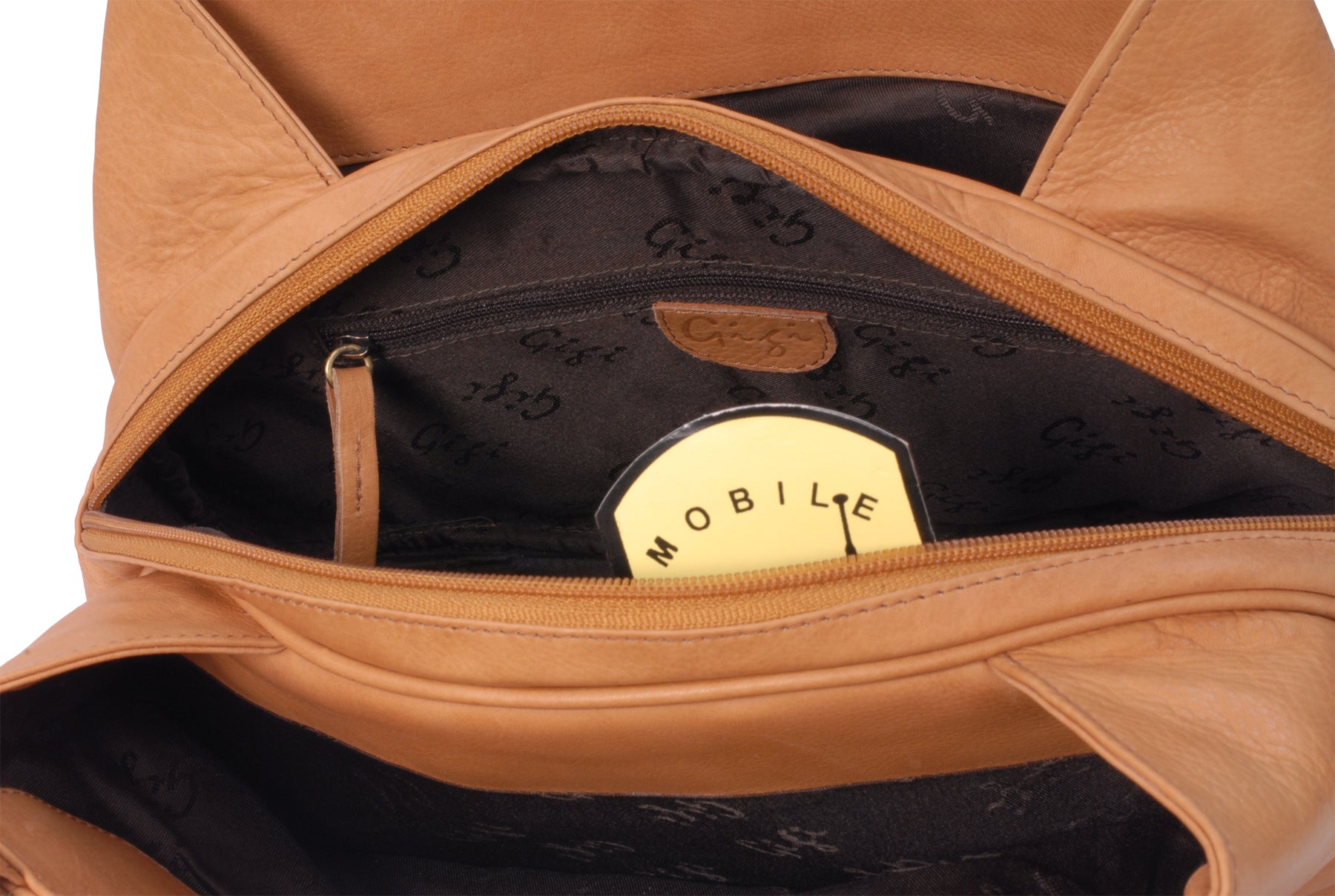 A REALLY SMART LEATHER SHOULDER BAG MADE FROM HIGH QUALITY LEATHER WITH THE GIGI BRAND NAME EMBOSSED STYLISHLY ON THE FRONT