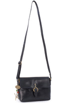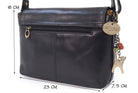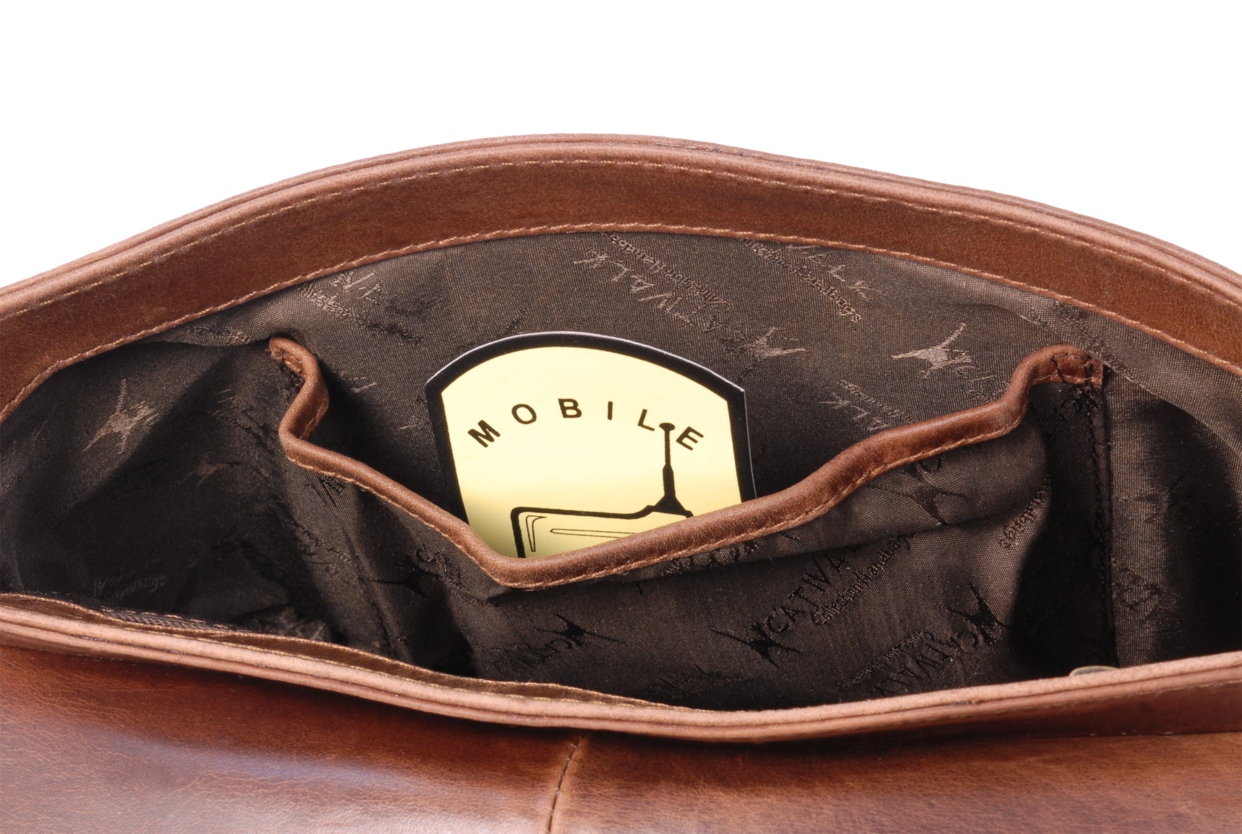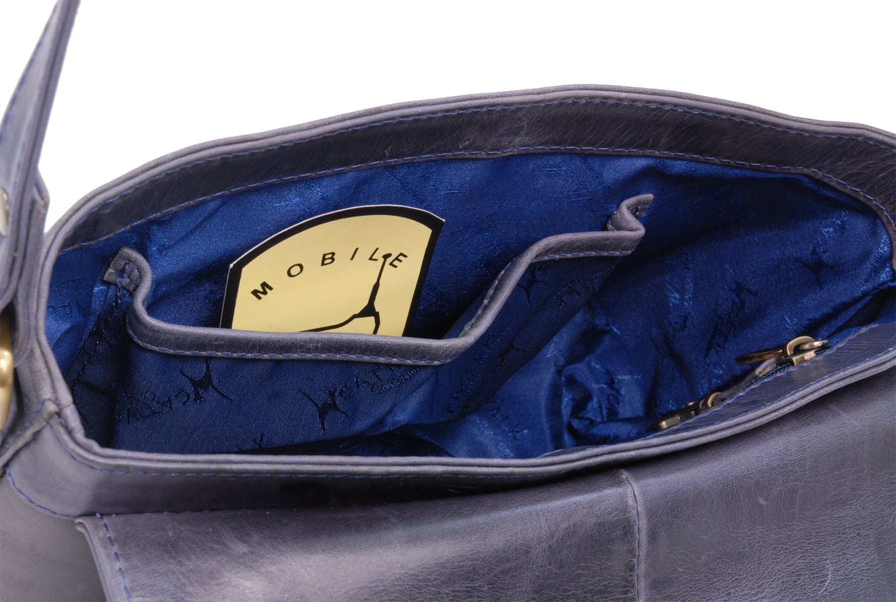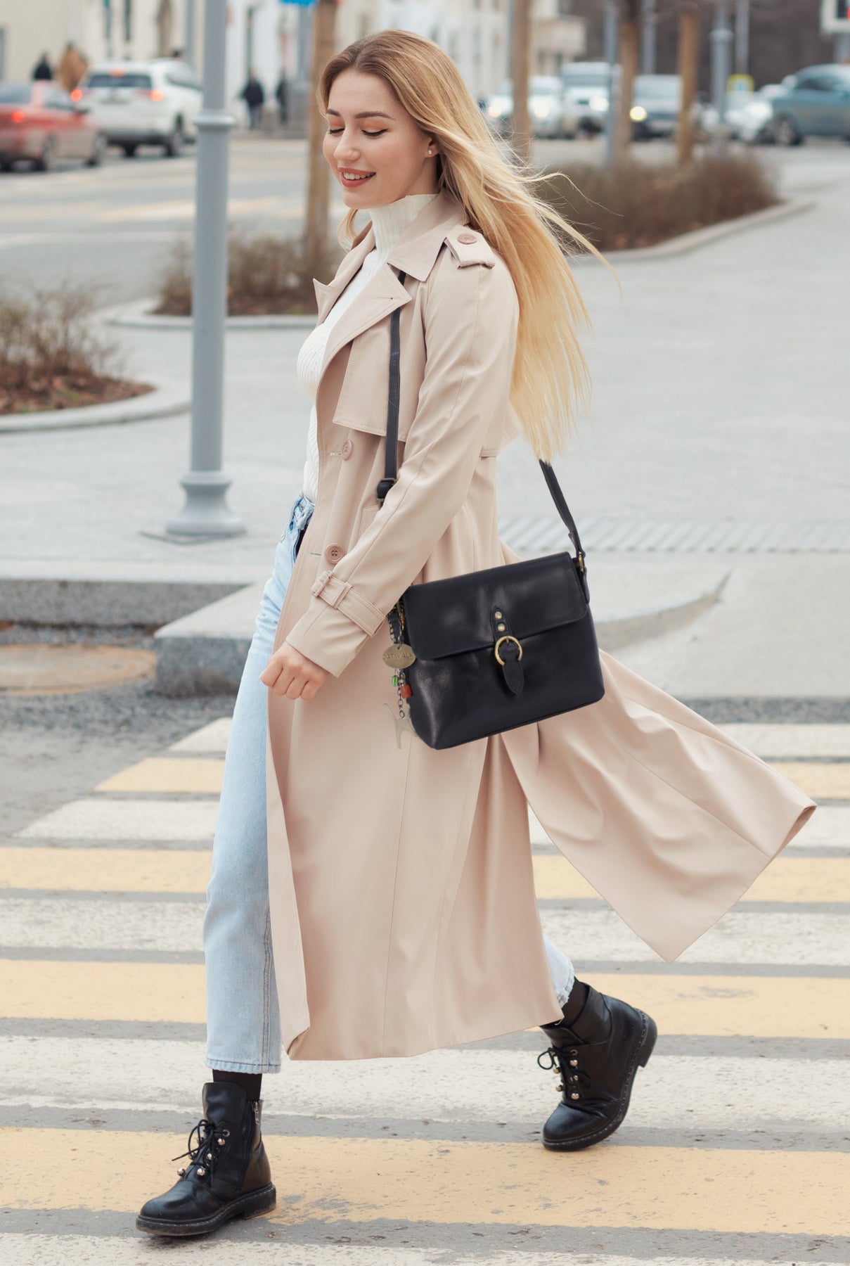 This is a medium-sized, slim-fitting messenger-style bag made from leather with a flap-over design.The bag is designed for everyday use and can be worn over the shoulder or across the body.There are several pockets to organise contents. The main compartment can hold eReaders and notepads up to A5 size.A zipped outer pocket is located on the back of the bag for additional storage.The bag fastens with a flap-over and magnetic closure hidden beneath a decorative buckle.The adjustable leather strap allows the bag to be worn over the shoulder or across the body for hands-free use.The main flap is lined with leather. The interior is lined with signature fabric.The base of the bag is flat for stable placement on surfaces.The design is suitable for use from day to night and matches a variety of outfits and styles.Suitable for use as a mid-sized crossbody, messenger bag, everyday handbag, or travel accessory.