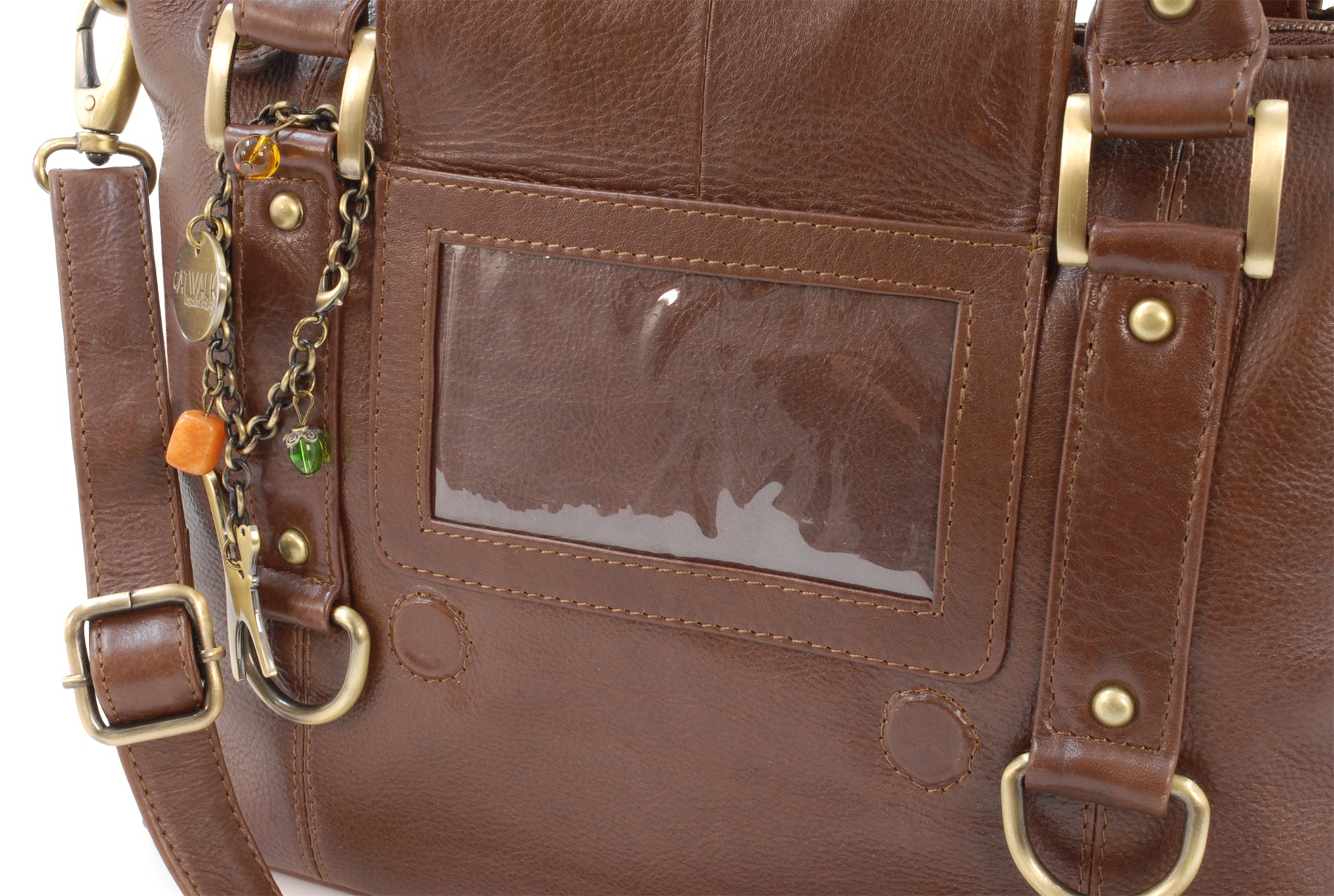 A VERSATILE LEATHER COMMUTER HANDBAG, SHOULDER BAG, TOTE WITH HANDY PHOTO ID WINDOW / TRAVEL PASS HOLDER AND ROOM FOR AN IPAD