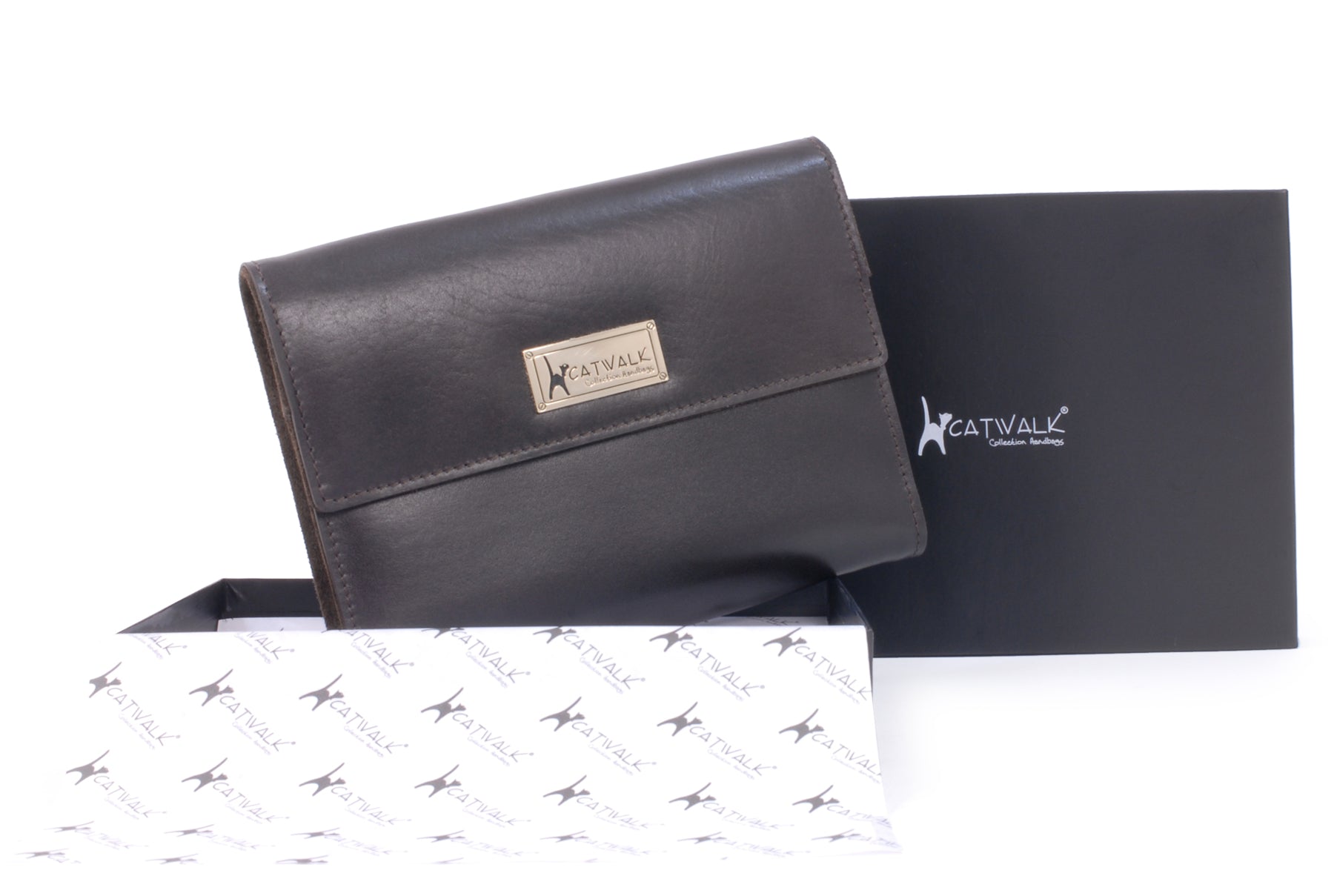 Keep jewellery secure at home or while travelling with this foldable jewellery organiser.Crafted from a combination of soft suede and smooth leather. The suede has been buffed into a fine nap, while the leather has a satin finish. Designed to neatly and securely store necklaces, pendants, bracelets, rings, earrings, watches, and brooches.The organiser folds compactly for travel or storage. The Catwalk Collection Cat Logo is imprinted on a gold-coloured plate attached to the front panel.Each item is presented in a gift box. Suitable as a gift for occasions such as Valentine’s Day, Mother’s Day, birthdays, or Christmas. Ideal for cat lovers.Unfolded dimensions: 39 x 40 cm.