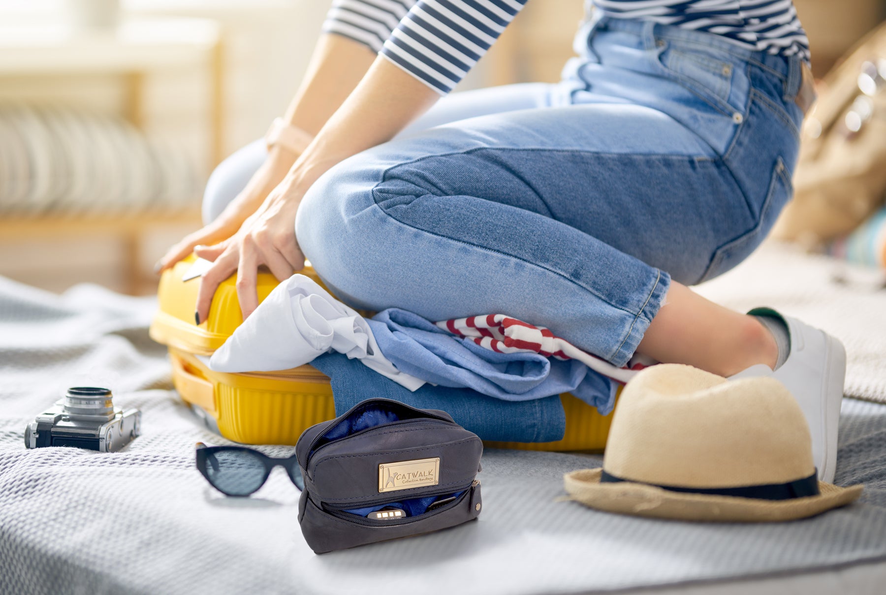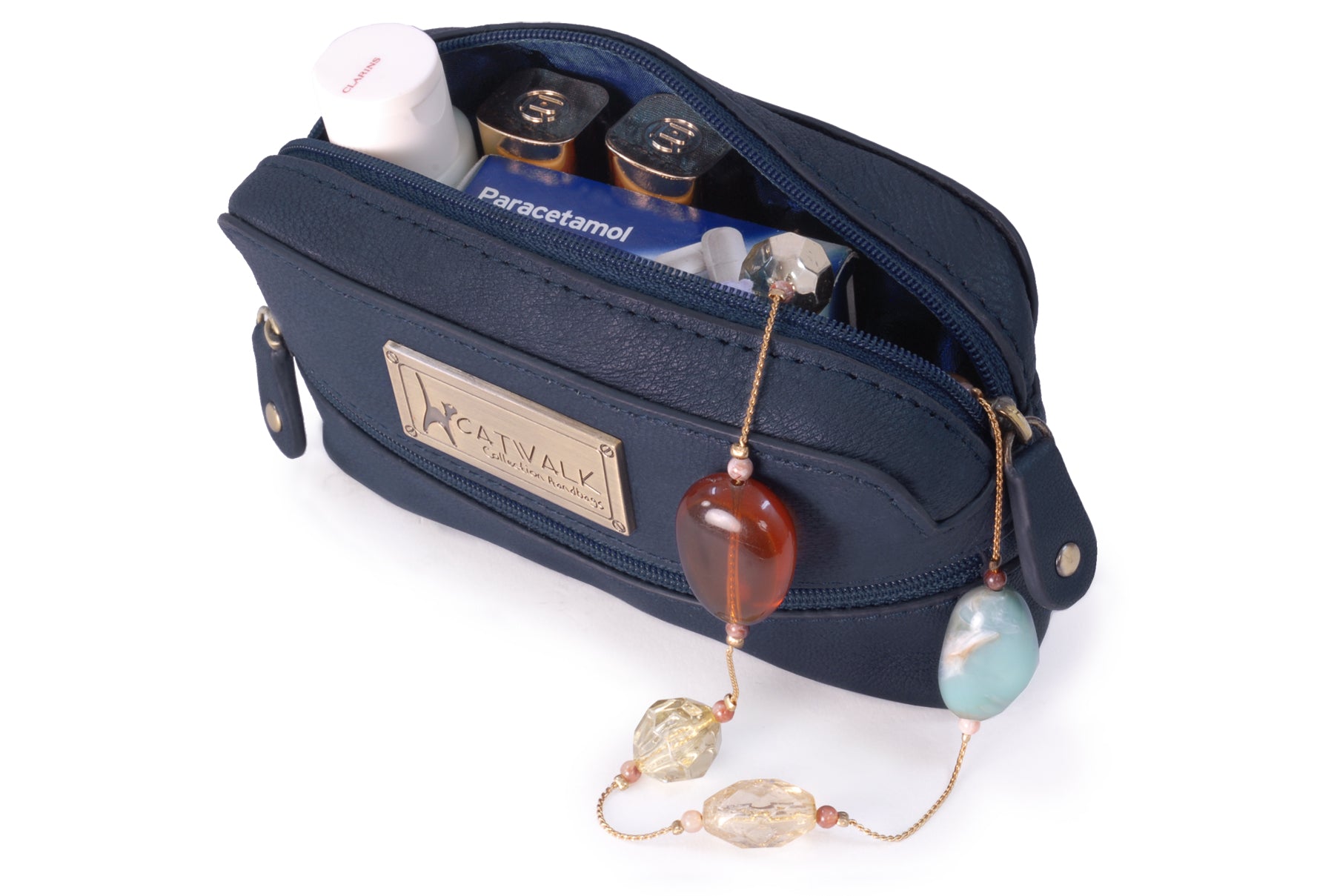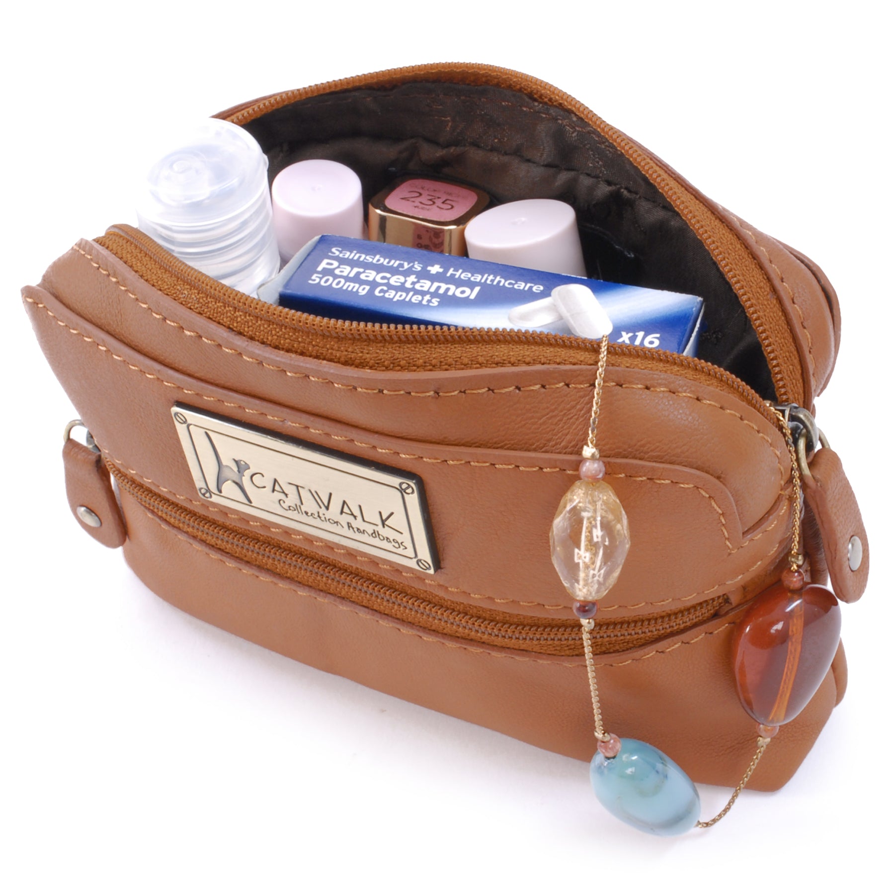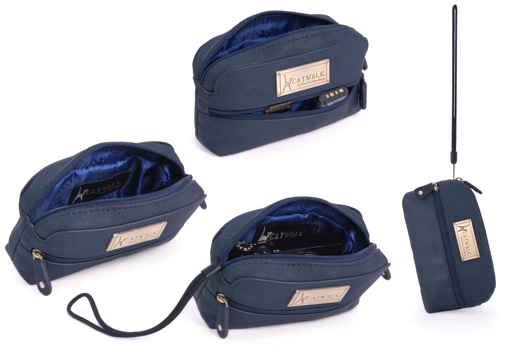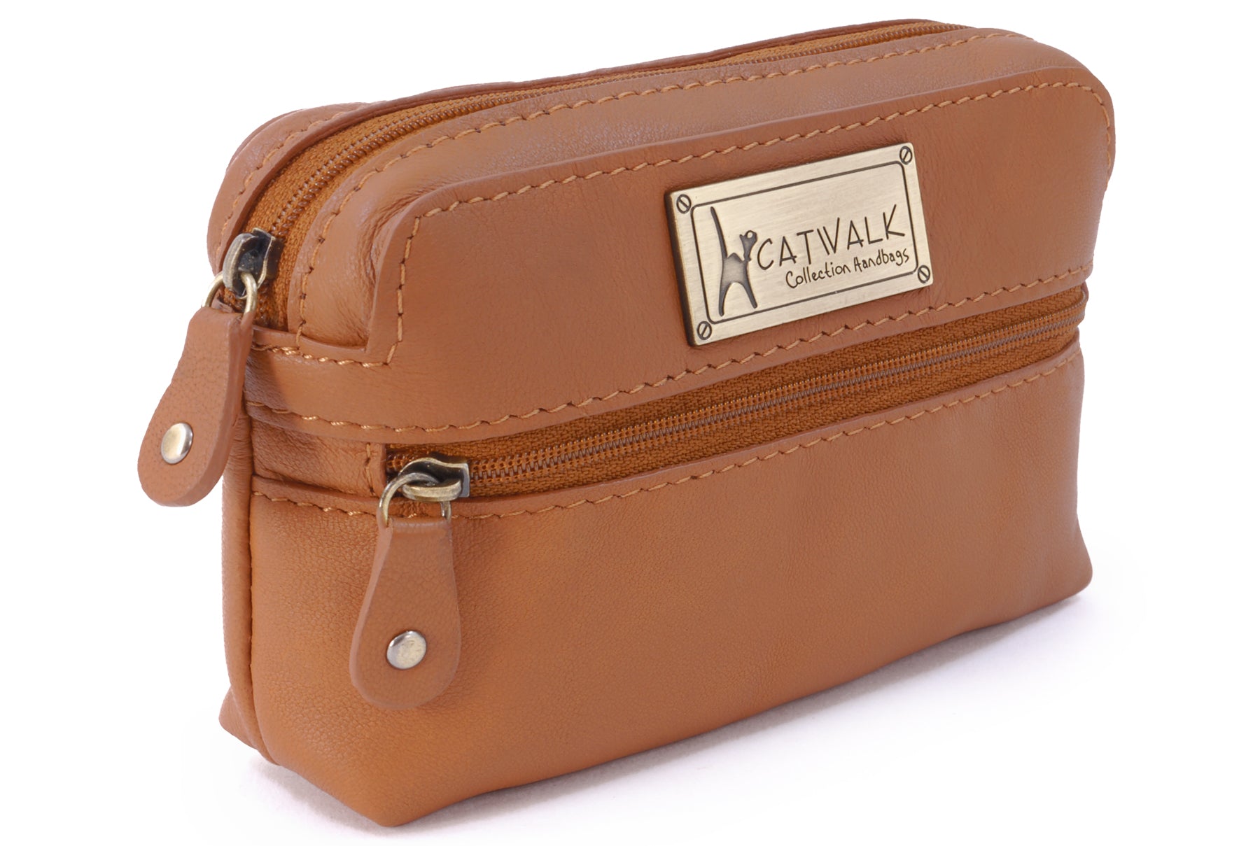 A small leather zipped pouch offering stylish practicality in a compact form. Presented in a branded gift box, it makes a thoughtful gift for women.A versatile accessory sized to fit most compact digital cameras, this leather case offers protection against knocks and scratches while travelling. Interior Capacity: 13 x 7 x 3 cm. Using your camera’s own wrist strap, you can zip this case around your camera to create a protective cover when out and about.Lightweight and easy to slip inside your handbag, tote or luggage, this pouch is also ideal for storing everyday small essentials. Whether it’s lipstick, hand sanitiser, tissues, sanitary items, medicine, keys or hair accessories—this pouch keeps everything neatly in place and close at hand.The interior is lined with signature fabric.A practical travelling companion. The Catwalk Collection Cat Logo is imprinted into a brass plate attached to the front panel. Suitable as gifts for women on Valentine’s Day, Mother’s Day, Birthdays, and Christmas.