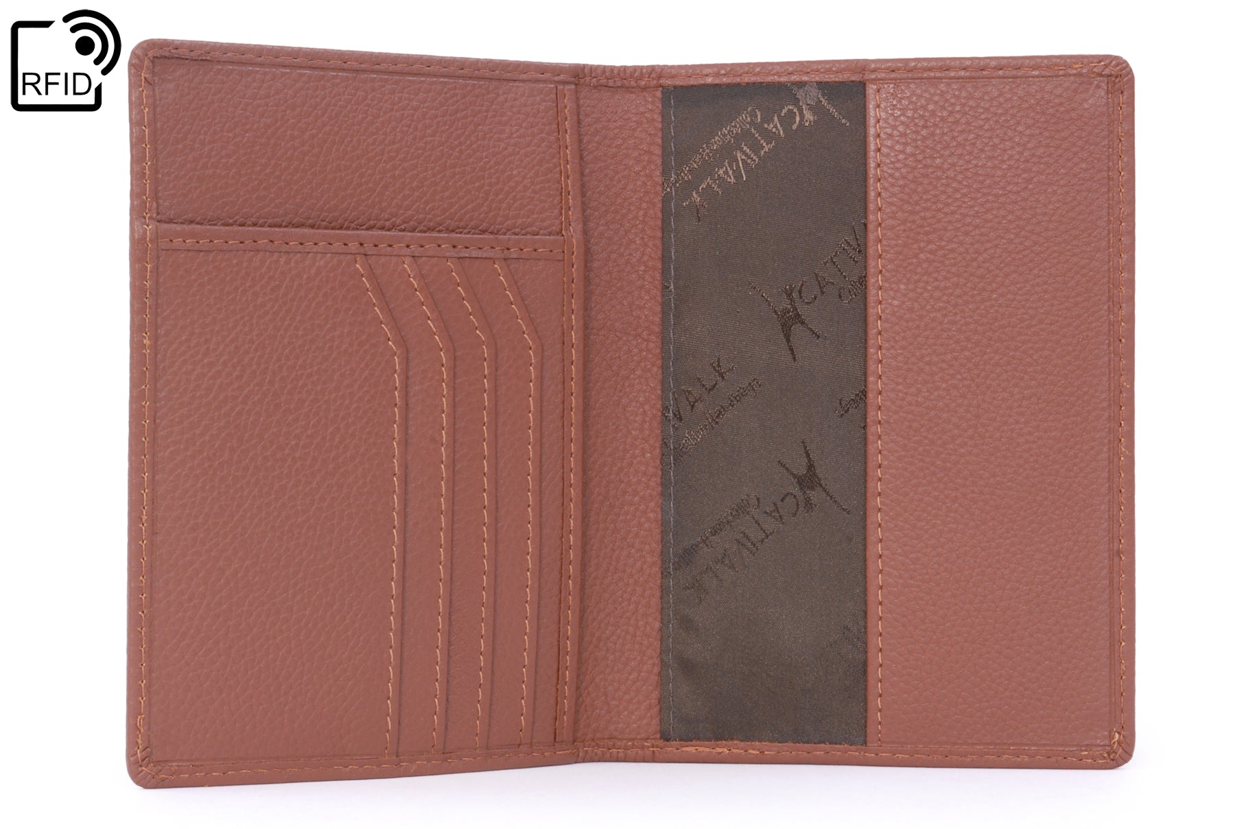 This slim leather passport holder is designed for keeping essential travel documents organised in one place. With dedicated slots for a passport, boarding pass, credit cards, and folded banknotes, it provides a compact, easy-access solution when moving through airports or stations. The lightweight profile makes it easy to slip into a handbag or carry-on bag without adding bulk.
