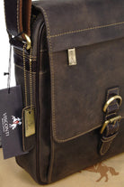 The main body of the bag is made from distressed oil Hunter leather which has that dark and sultry look about it, whilst trim is made from highly polished Mocha leather for a cool contrast.