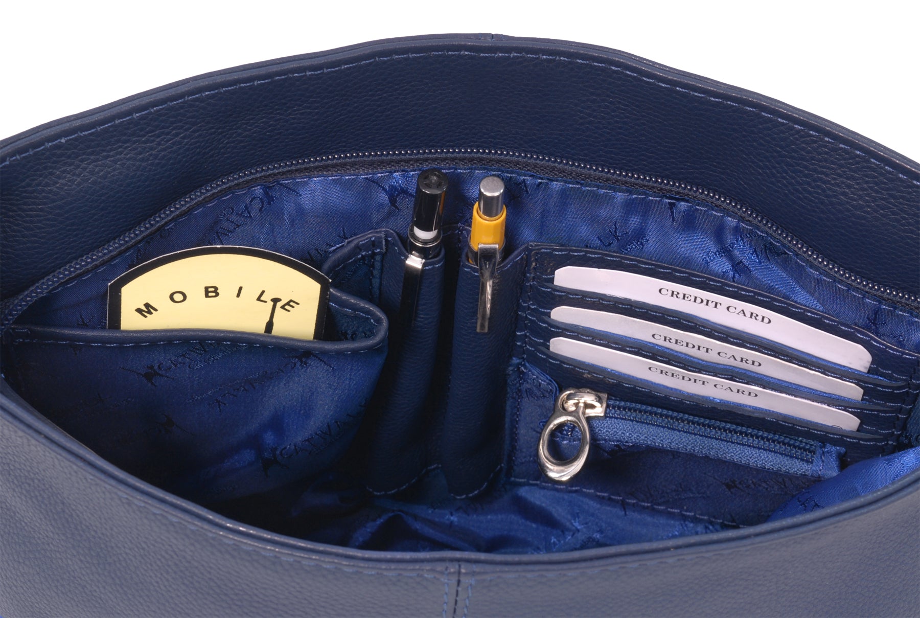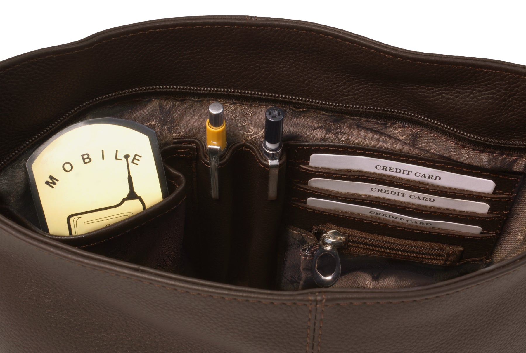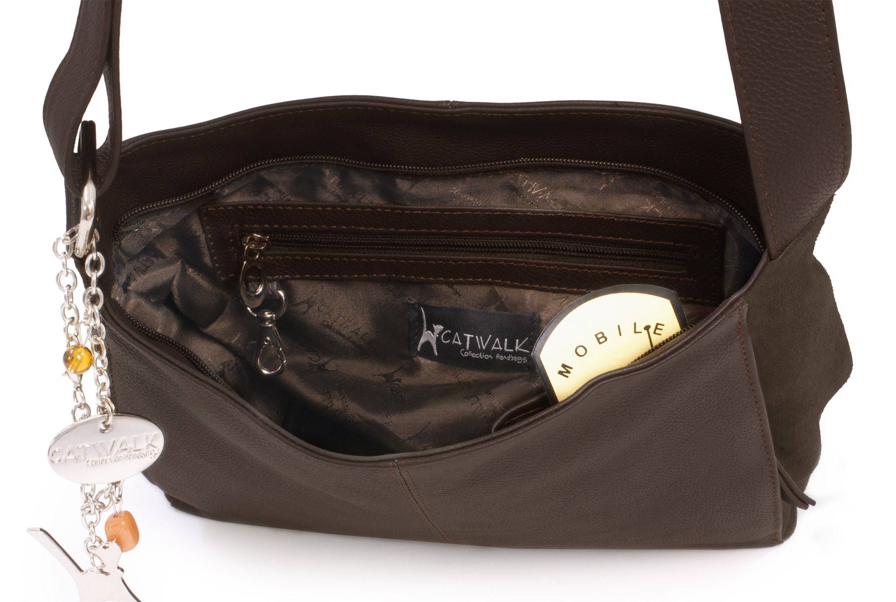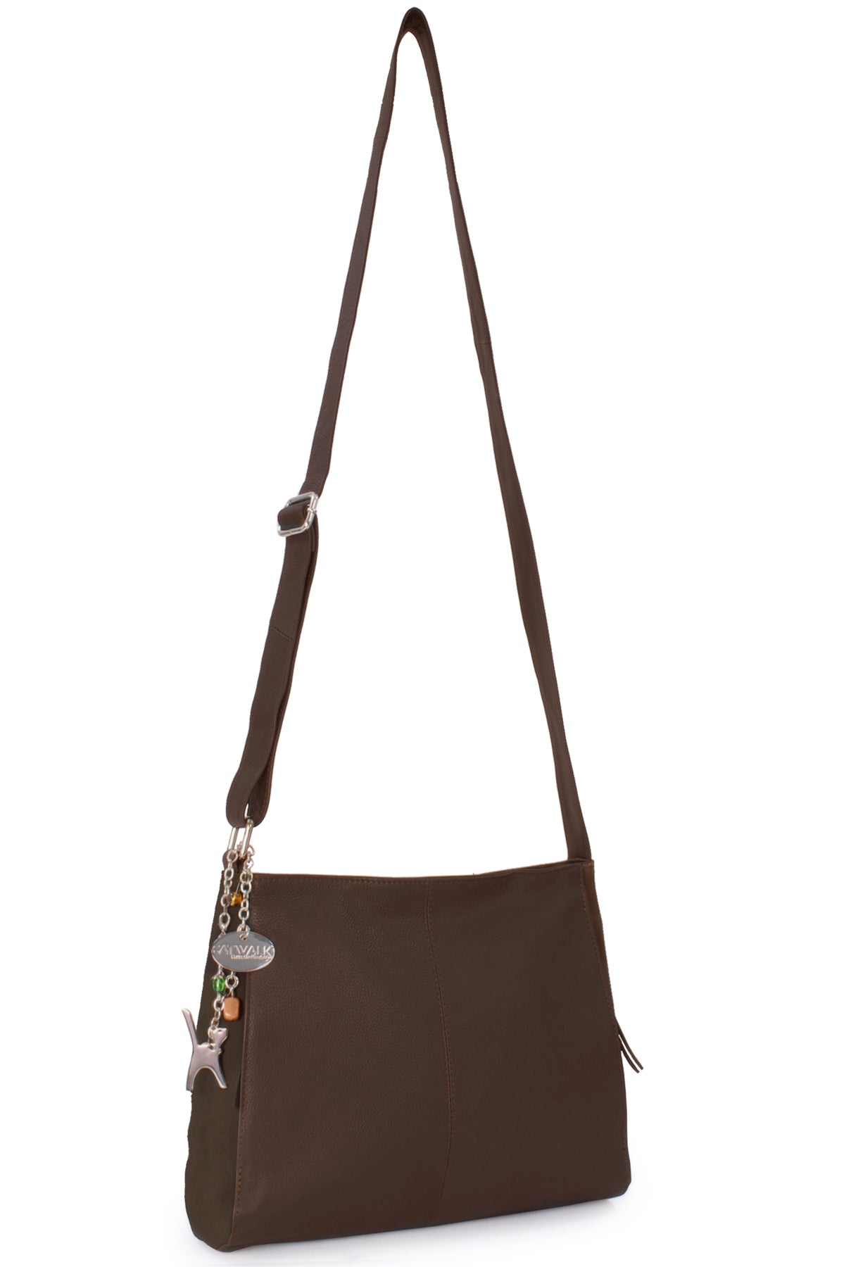 This medium crossbody bag is designed for versatility, with a slouchy silhouette and suede panel detailing along the edges. Suitable for both everyday use and more formal settings, the style allows the bag to be dressed up or down depending on the occasion.It fastens securely with a zip and opens wide for easy access to the contents. The adjustable leather strap enables the bag to be worn comfortably over the shoulder or hands-free across the body.Inside, the bag is fully lined with branded signature fabric and includes dedicated pockets for a mobile phone, credit cards, and pens. The interior pockets are reinforced with leather to support frequent use and help maintain structure.With enough space to hold an A5 diary, make-up case, purse, and standard-sized tablet or eReader, this bag functions well for commuting, social events, or general day-to-day use. It combines practical internal storage with a flexible design that fits a range of personal styles and settings.
