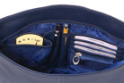 Pockets: 1 Main Compartment + 1 Interior Rear Zipped Pocket + 1 Interior Leather Mobile Phone Holder + 2 Leather topped Pen Holders + 3 Credit Card Holders + 1 Coin Pocket + 1 Key Fob + 2 Outer Front Zipped Pockets