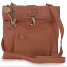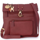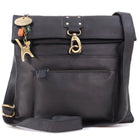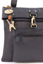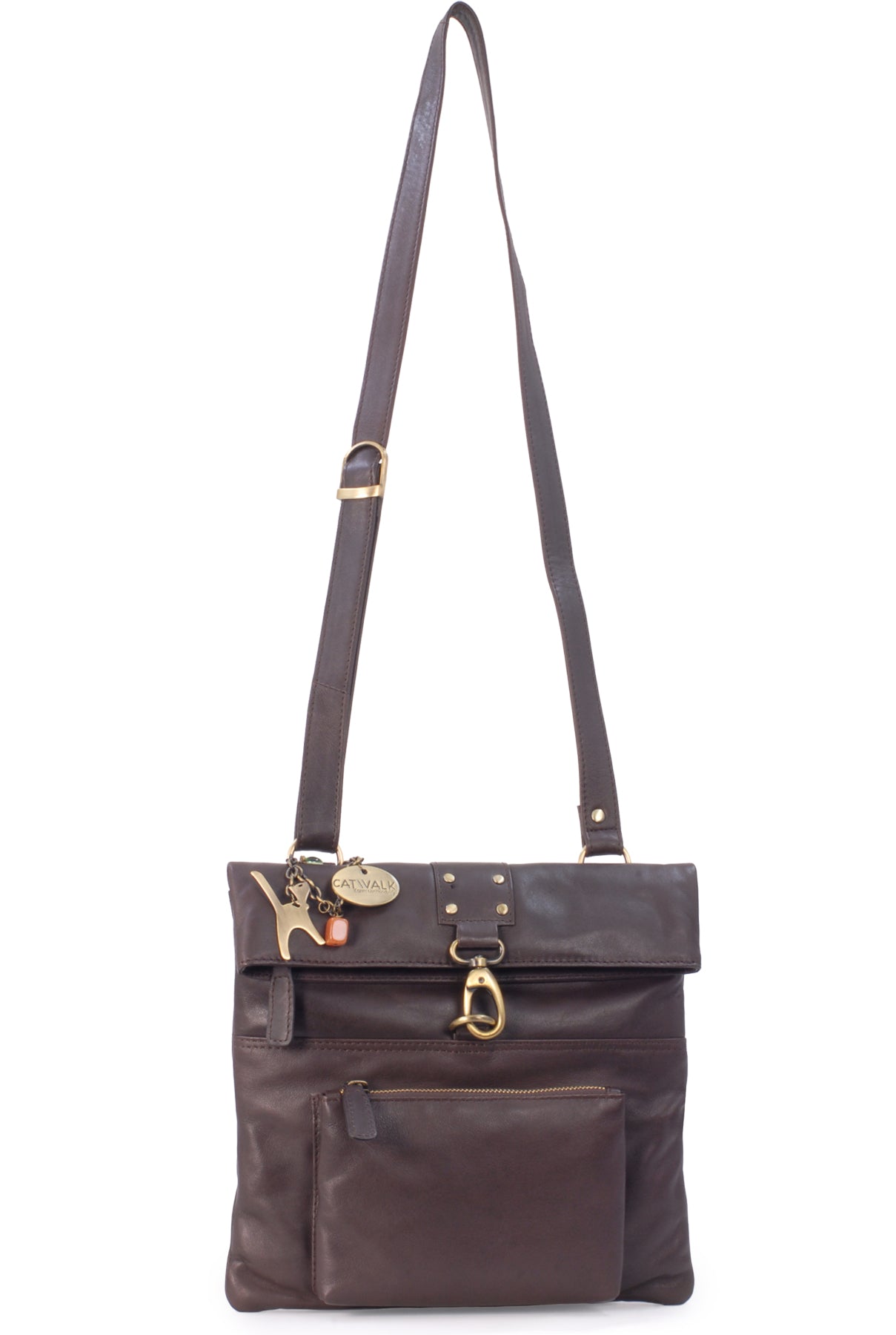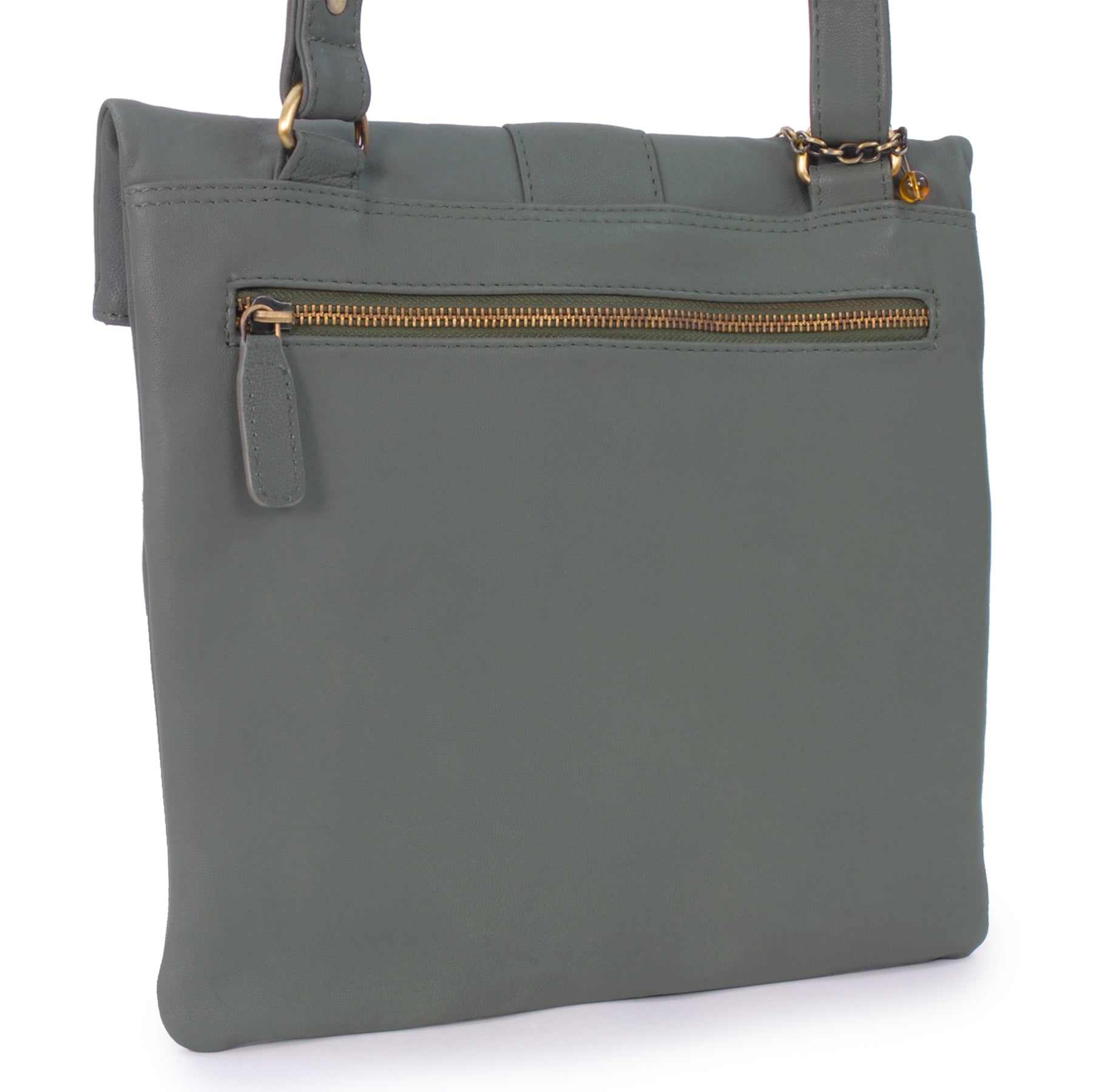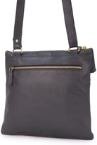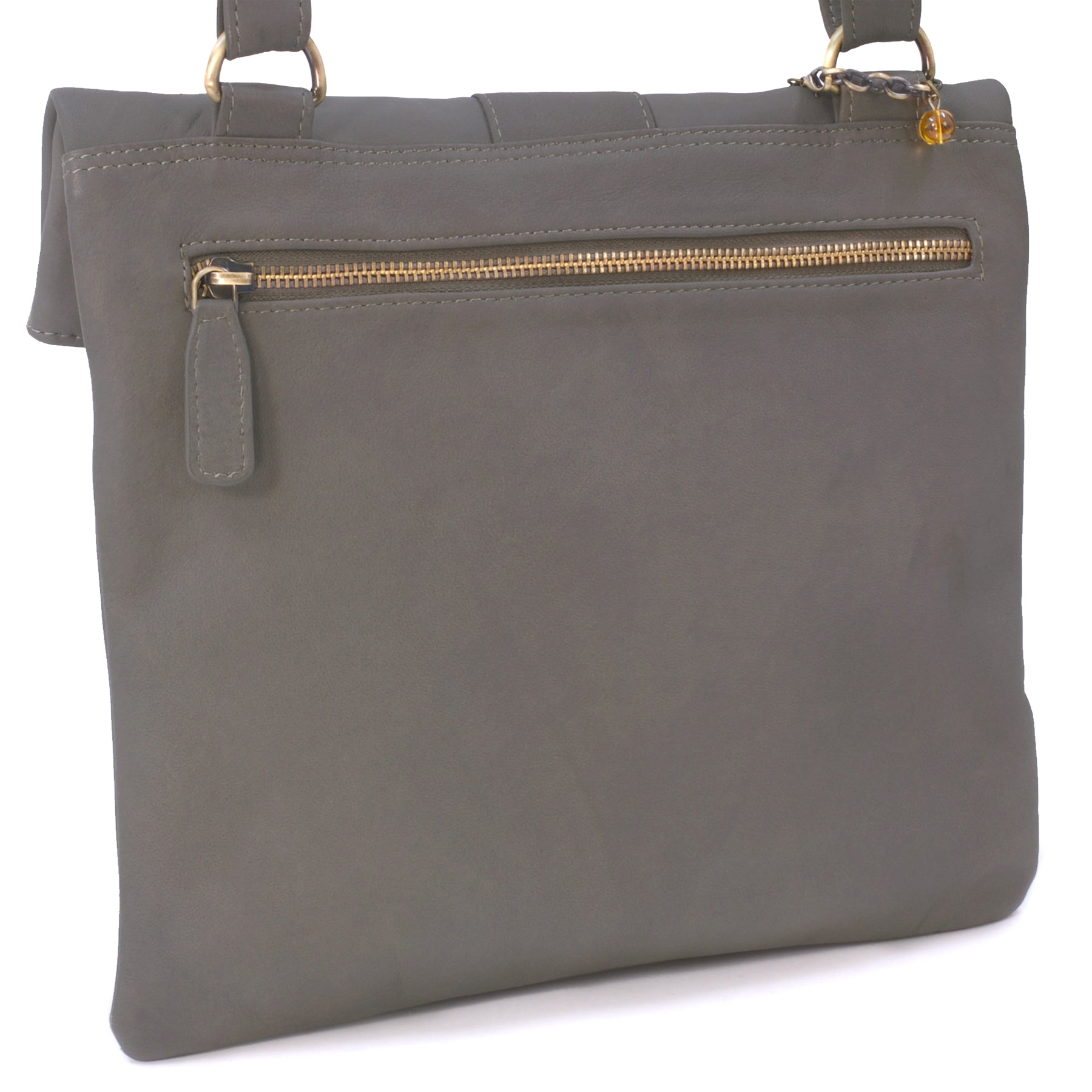 This medium-sized leather messenger-style bag features a slim profile with practical storage for everyday use.The main compartment offers space for an A5-sized diary, purse, make-up case, and other daily essentials. The interior is fully lined and slightly padded.The bag fastens securely with a metal zip. The top section folds over and is held in place with a brass spring clip, adding an extra layer of security.A zipped pocket on the rear provides convenient external storage for quick-access items.The long strap is fully adjustable with a sliding brass grip, allowing the bag to be worn comfortably over the shoulder or hands-free across the body. The strap design avoids buckles to prevent snagging on clothing.This leather crossbody bag is suited to those looking for a slim, secure, and functional option for everyday use.