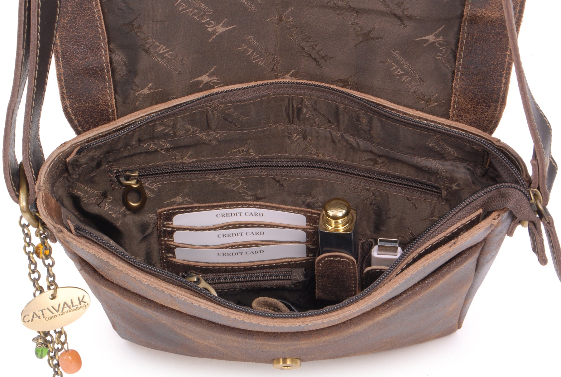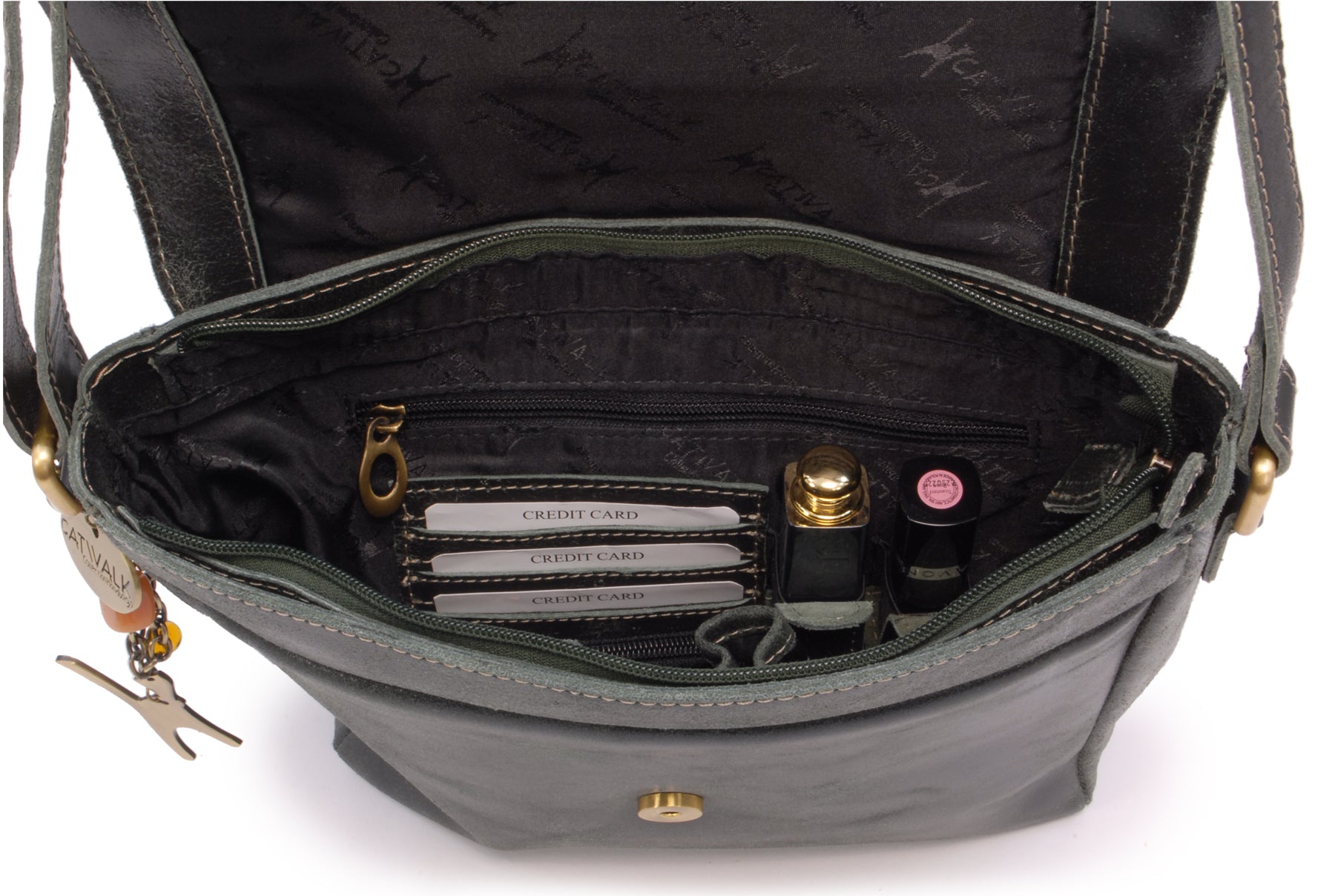 Crafted from distressed leather for a relaxed, vintage look, the bag features a secure flap-over design with a magnetic closure and concealed zip closure. The interior is thoughtfully organised with dedicated compartments for pens, lipsticks, credit-cards , and a mobile phone, while a zipped rear pocket offers quick access on the move.