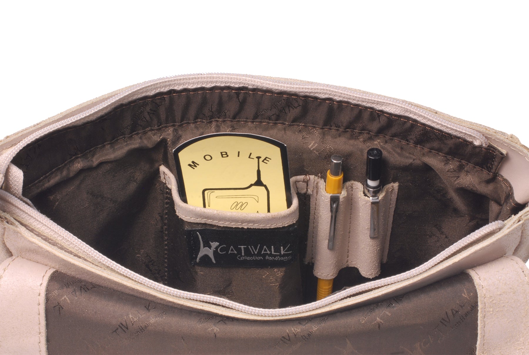Pockets: 1 Main Compartment + 1 Open Front Pocket + 1 Outer Rear Zipped Pocket + 1 Interior Rear Zipped Pocket + 3 Credit Card Holders + 2 Lipstick Holders + 1 Zipped Coin Pocket + 1 Mobile Phone Holder + 2 Pen Holders