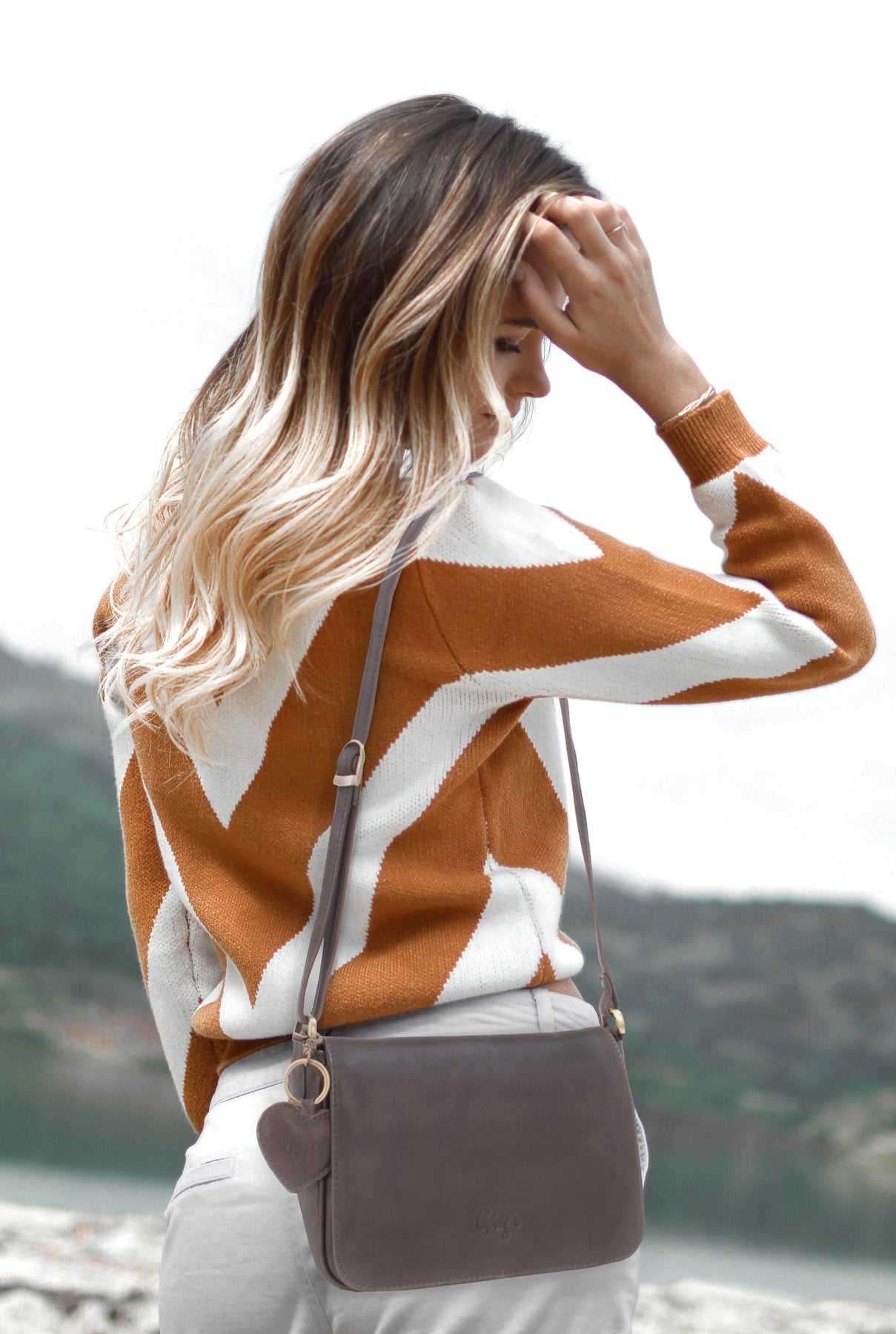 The lovely, long adjustable leather strap enables wear over-the-shoulder or across-the-body.