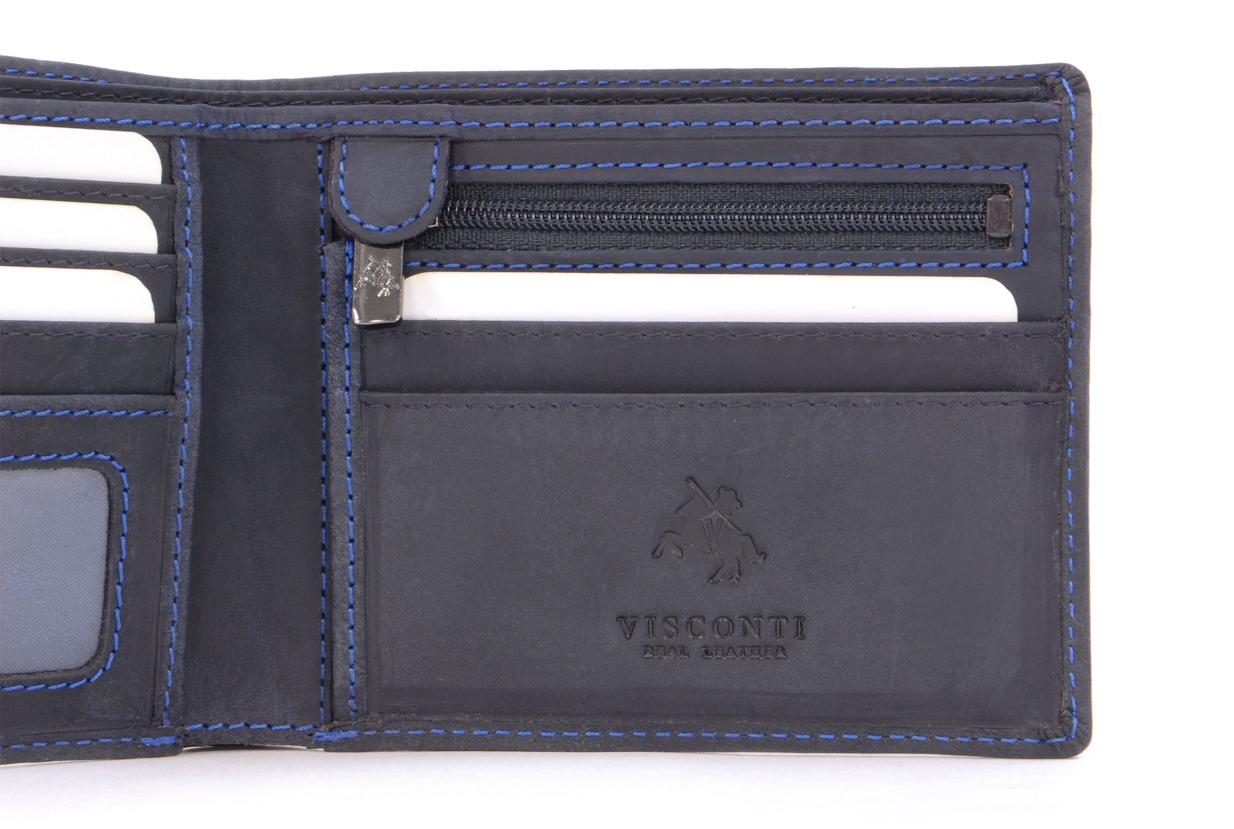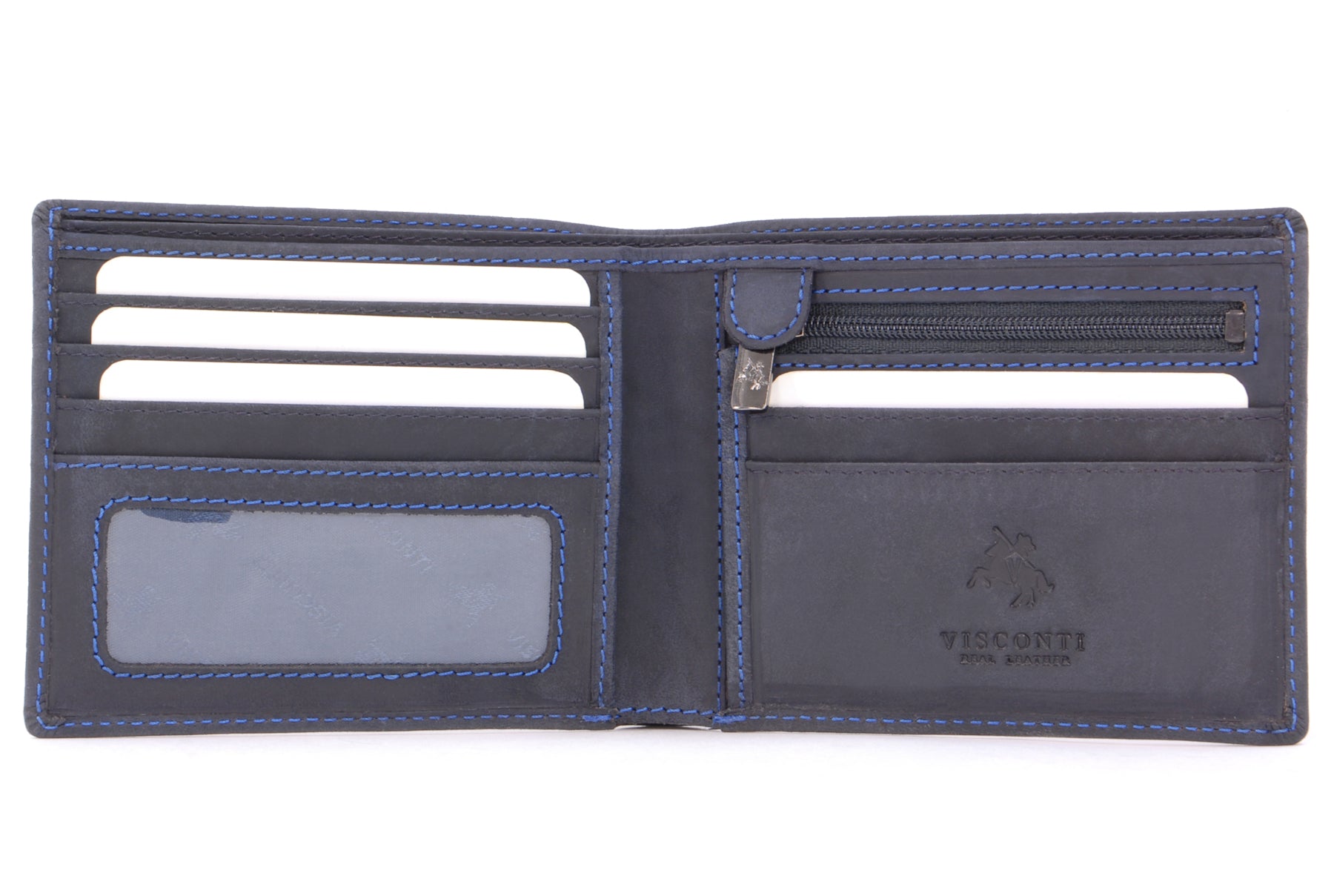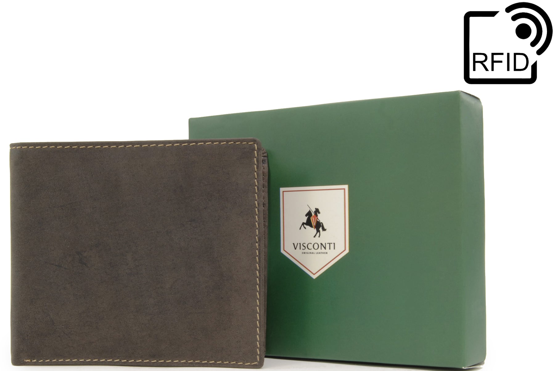 Distressed oiled leather has that dark and sultry look about it. This neatly designed Visconti product is made from the finest leather and has that wonderful new leather aroma. Leather items may have wrinkles, scars, scratches that are inherent characteristics and natural beauty of the hide. This is strong, high quality leather and with its smooth matt surface and superb oiled finish, there's no doubt that this wallet has plenty of attitude. As with all Hunter oiled leathers, it's best to avoid contact with light coloured fabrics as there may be some colour transference. The interior is fully lined. Contrast stitching accentuates the wallet's fine features. The Visconti brand name and logo is stylishly imprinted into the leather inside the wallet. Each comes with its own luxury presentation gift box.