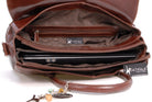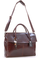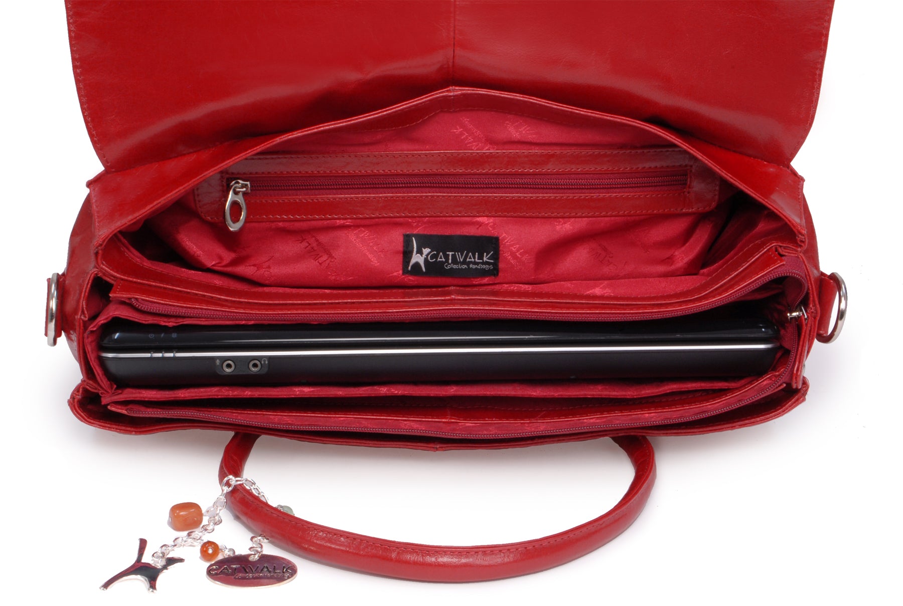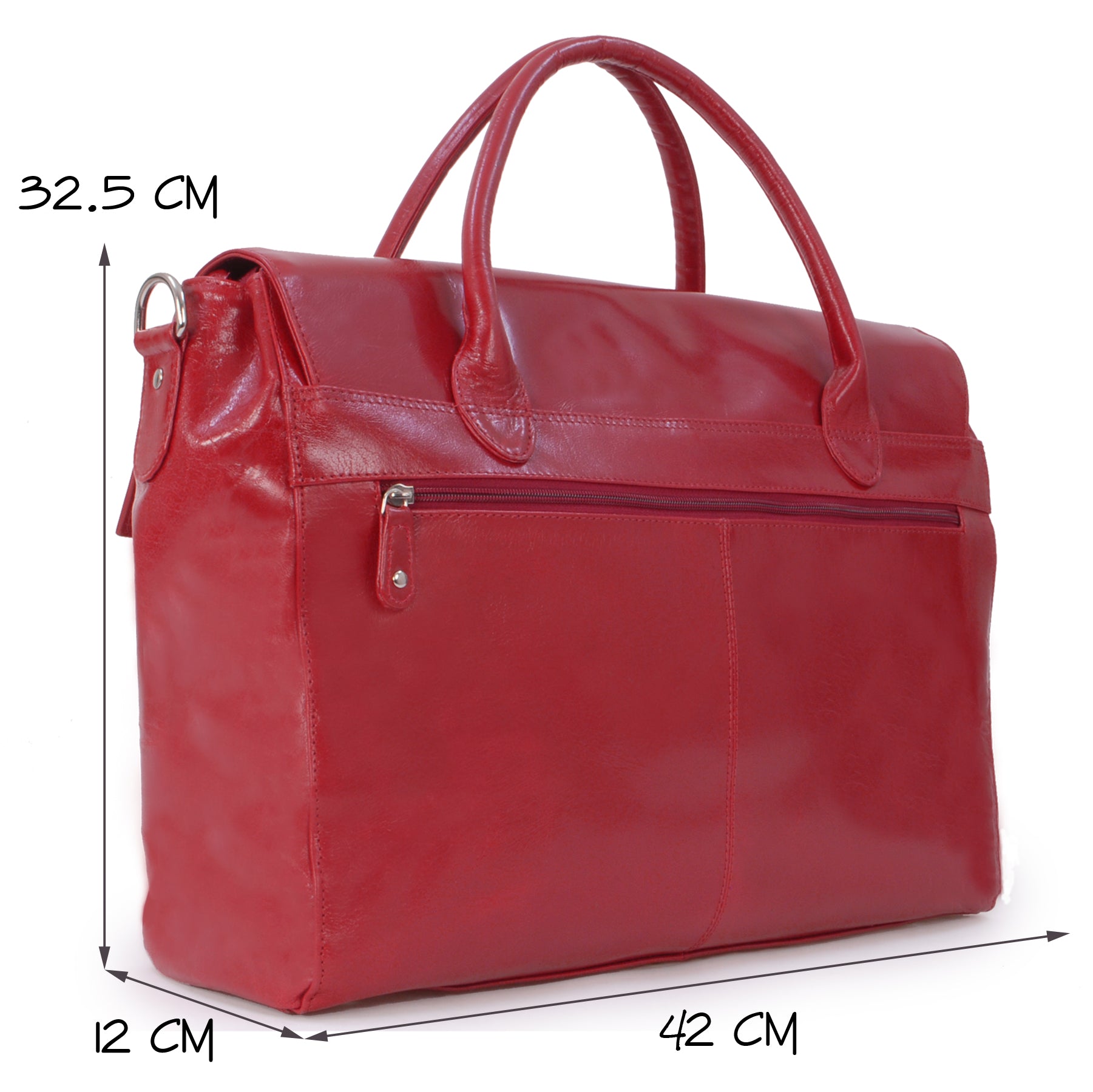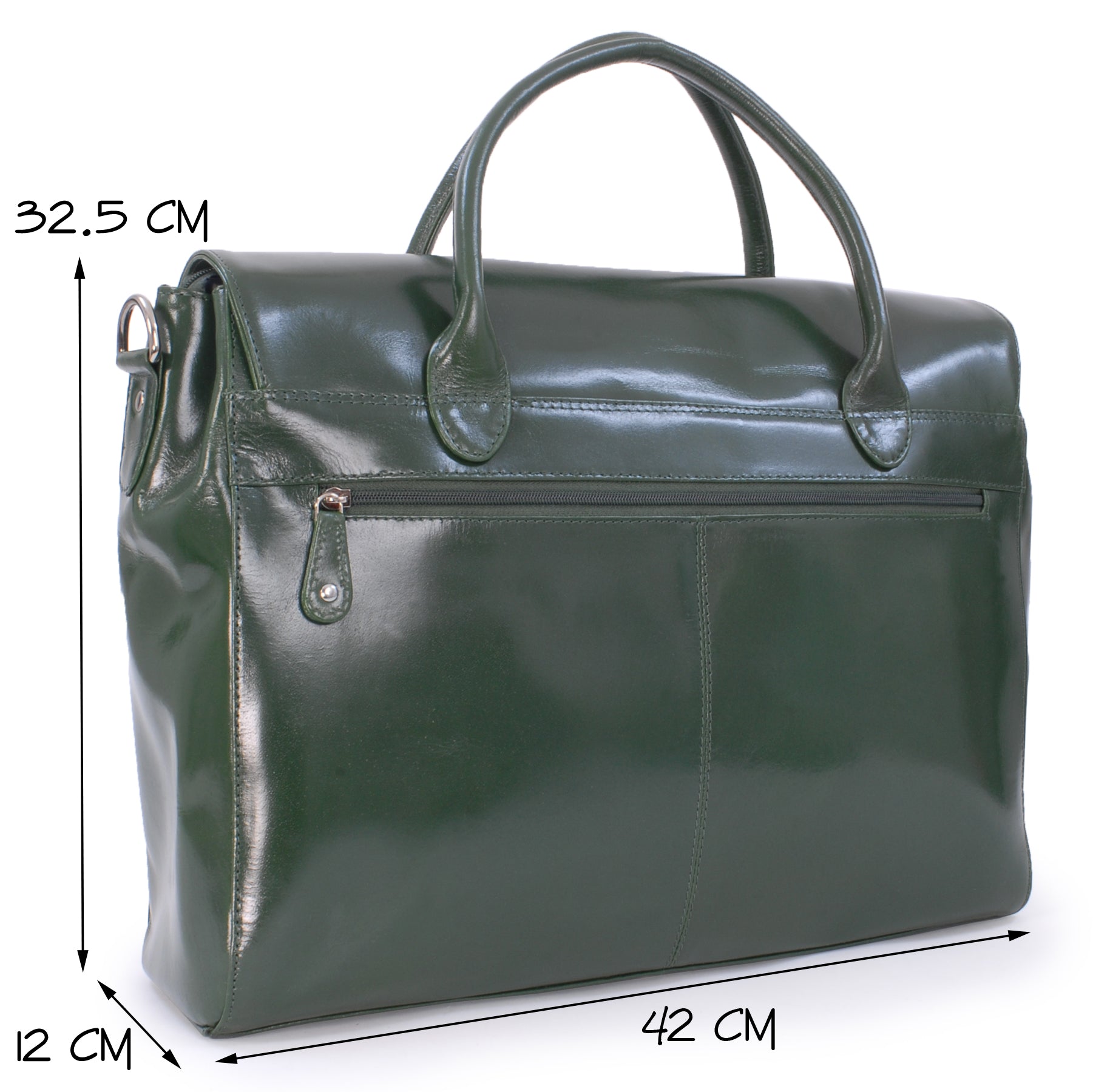 This large leather laptop bag is crafted from high-gloss vintage leather, featuring natural creases and a structured silhouette ideal for commuting and professional use. The tote bag accommodates most laptops up to 17 inches and includes a dedicated laptop compartment with a removable padded cover for extra protection. With internal dimensions of 39.5 x 29 x 5 cm, there is sufficient capacity for document folders, A4 papers, and work essentials.